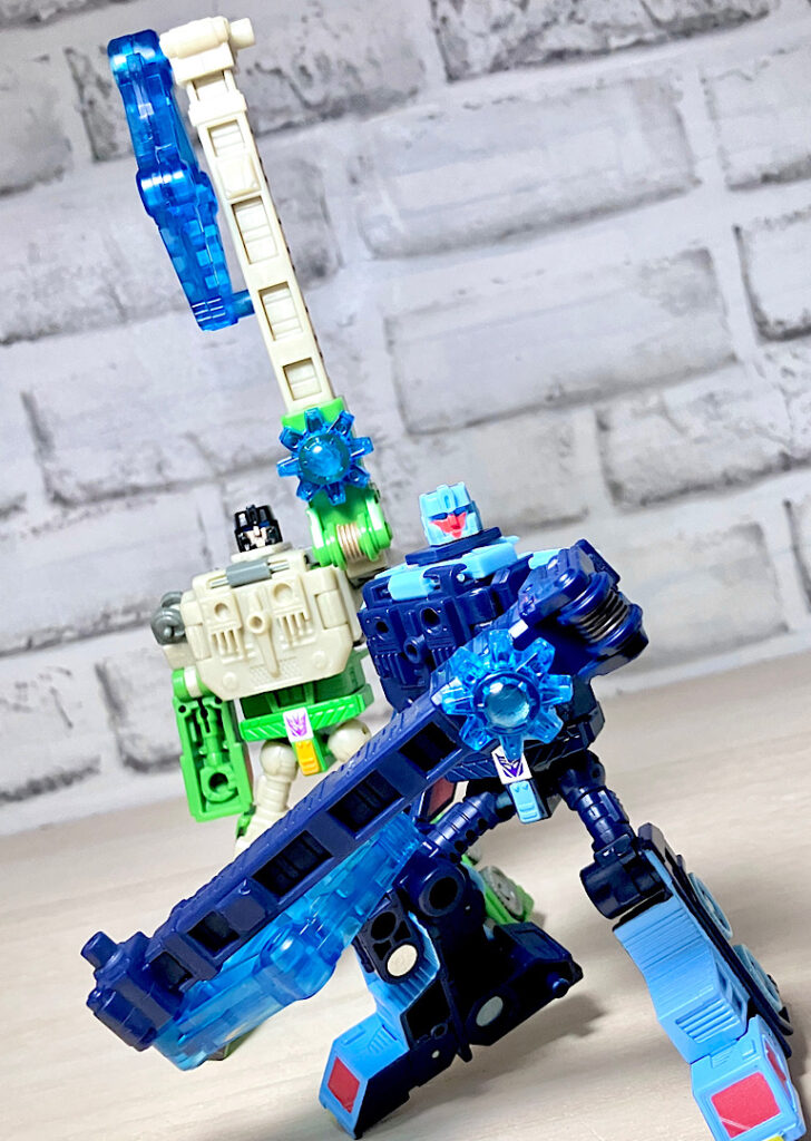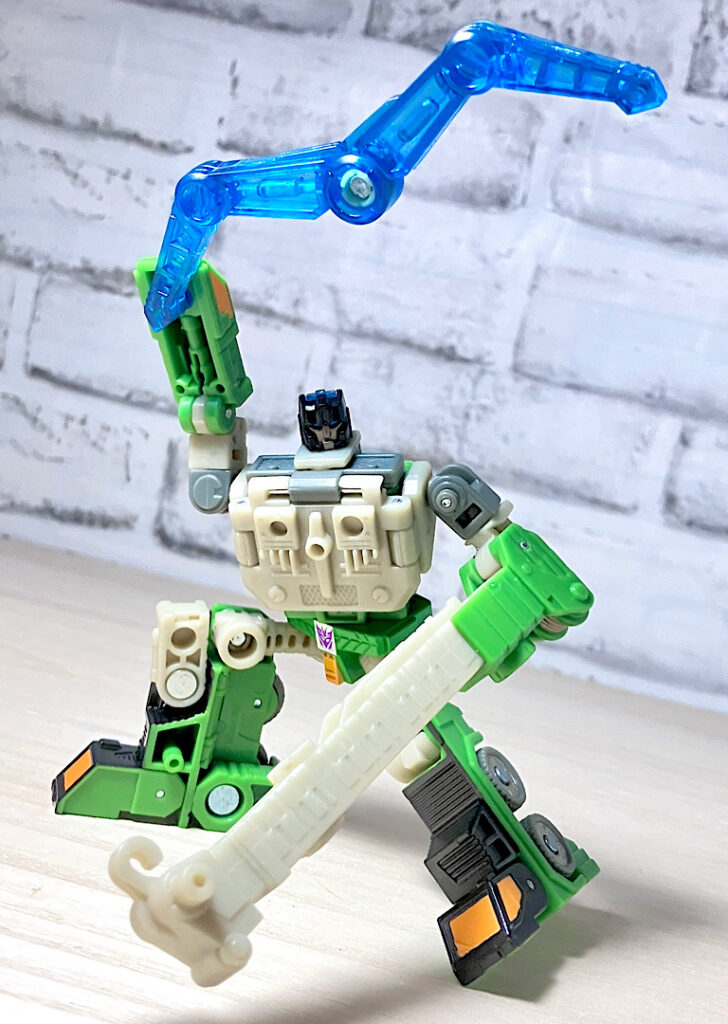 【合体モード】やはり腕または脚に変形。脚モードではクレーンとエネルゴンウェポンが絶妙な角度でつながります。