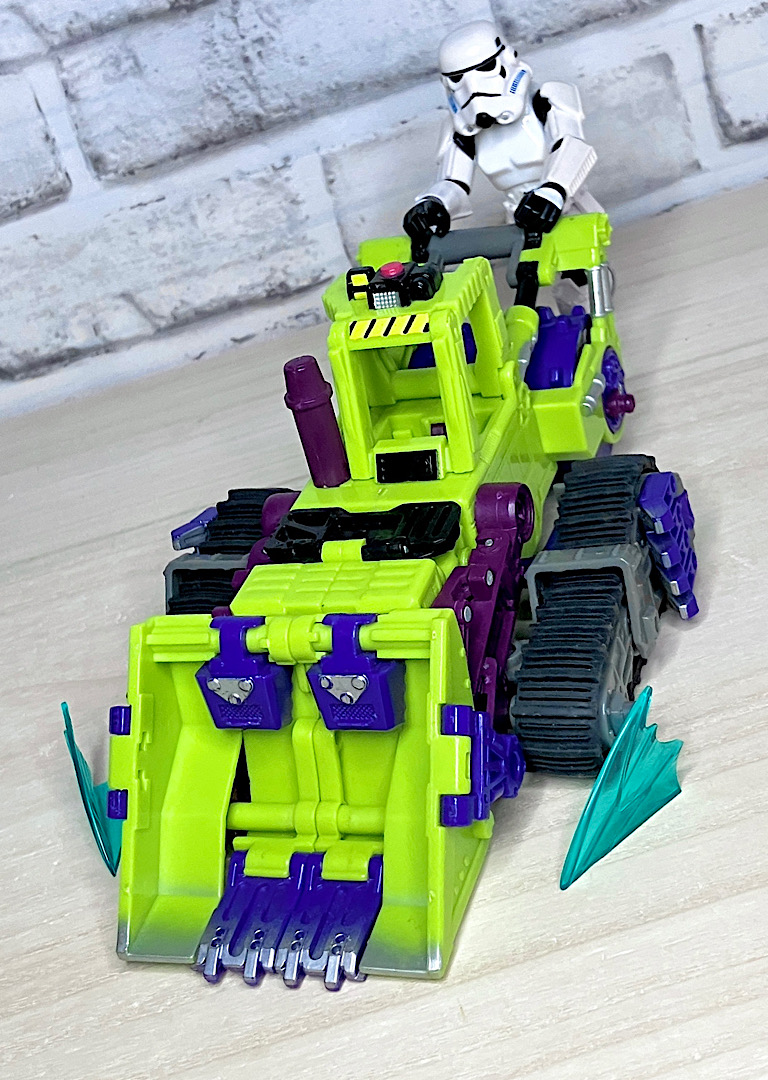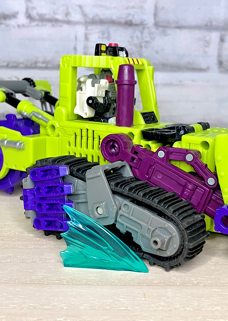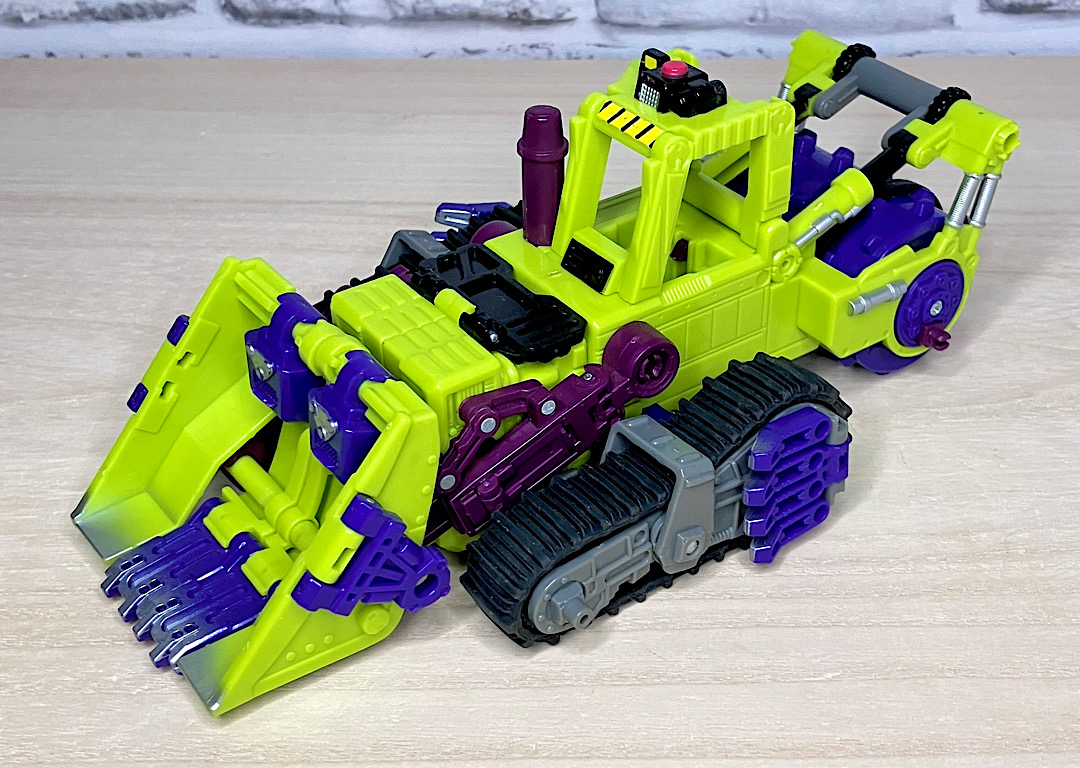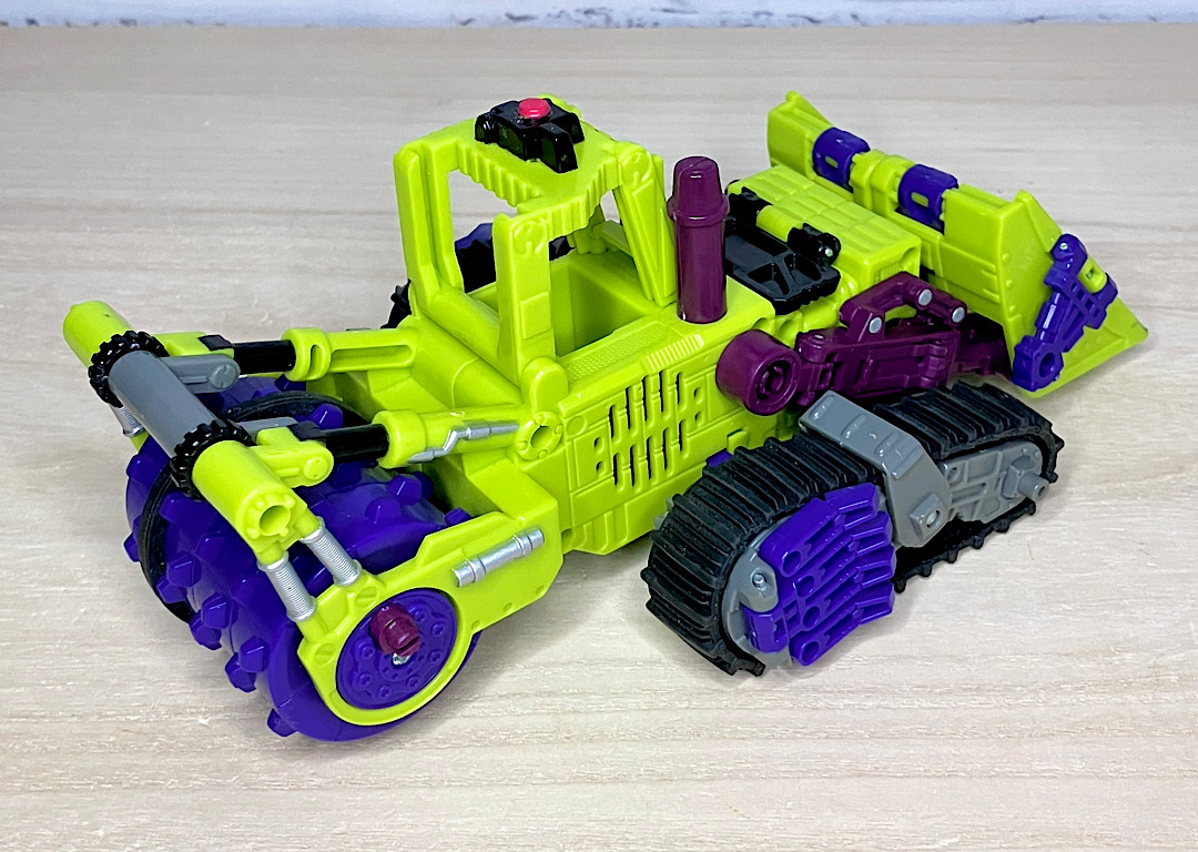 【ビークルモード】ブルドーザーに変形。後方の巨大なローラーがケレン味たっぷり。ボディカラーもあってこの状態だと完全にコンストラクティコンですね。