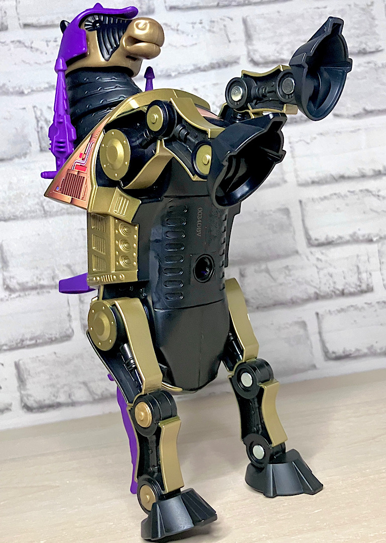 【フロント&リア】馬というか木馬型メカという雰囲気で、トロイの木馬を連想します。なお元になったストライダーはどこか牧歌的な雰囲気を醸し出していましたが、黒リカラーのナイトストーカーはかなり悪い感じ。