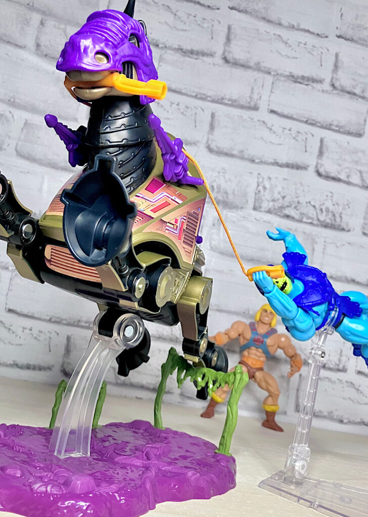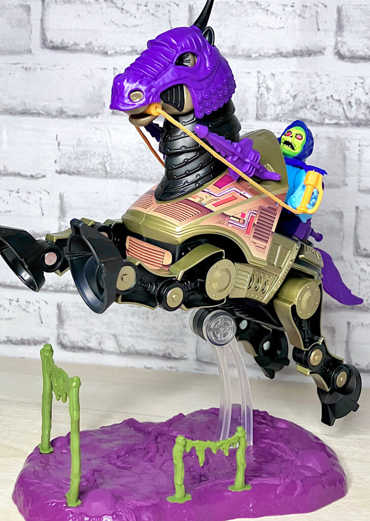 さらにスタンドパーツも付属しています。こちらはストライダーのものとは異なり、沼地のようなおどろおどろしい雰囲気に。実は別売りの基地玩具「スネークマウンテン」と連動できるようになっていたりします。