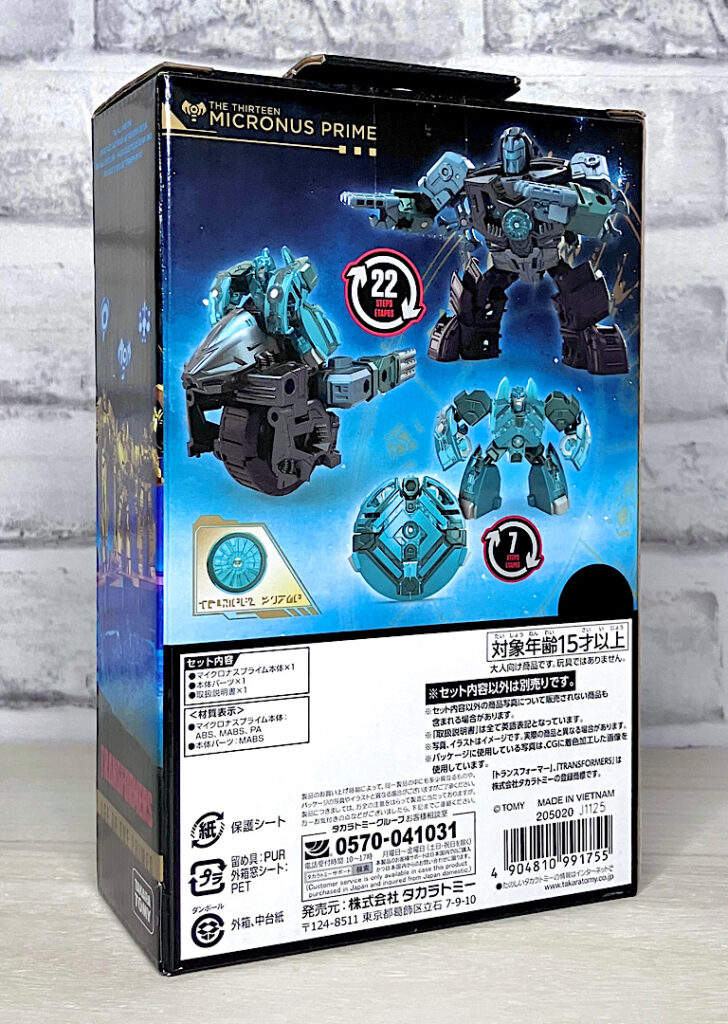 【パッケージ】善神プライマスにより生み出された最初の13人のトランスフォーマー(THE THIRTEEN)の1人。小さなボディに良心と道徳心を兼ね備え、仲間たちにパワーを分け与えることができ、その力を子孫であるミニコン(マイクロン)たちに引き継ぎました。