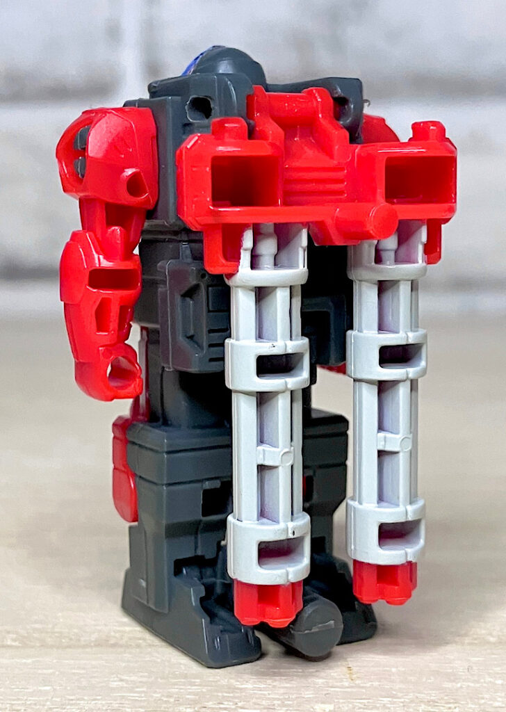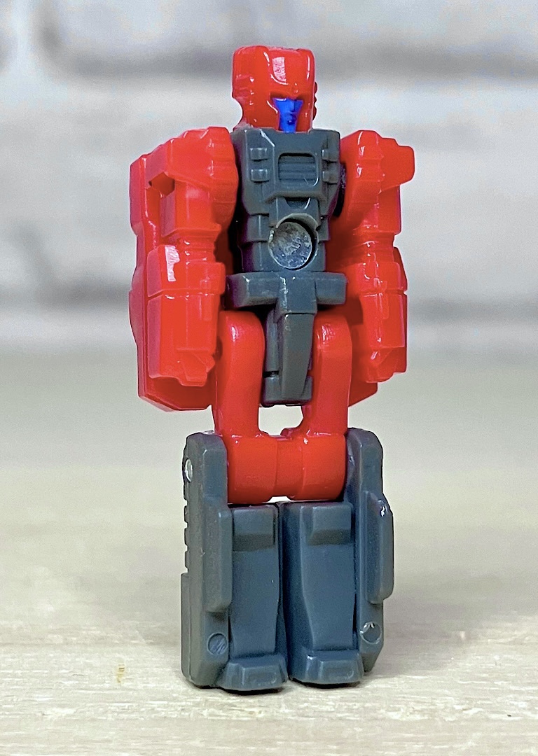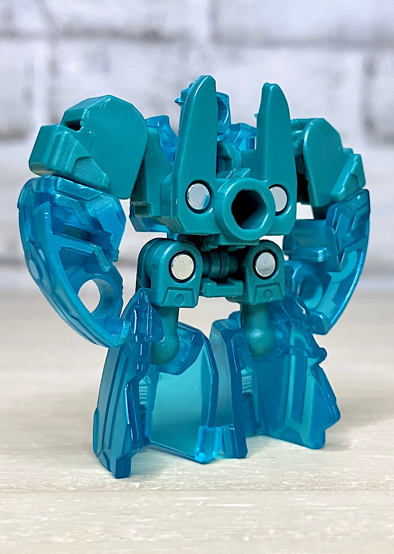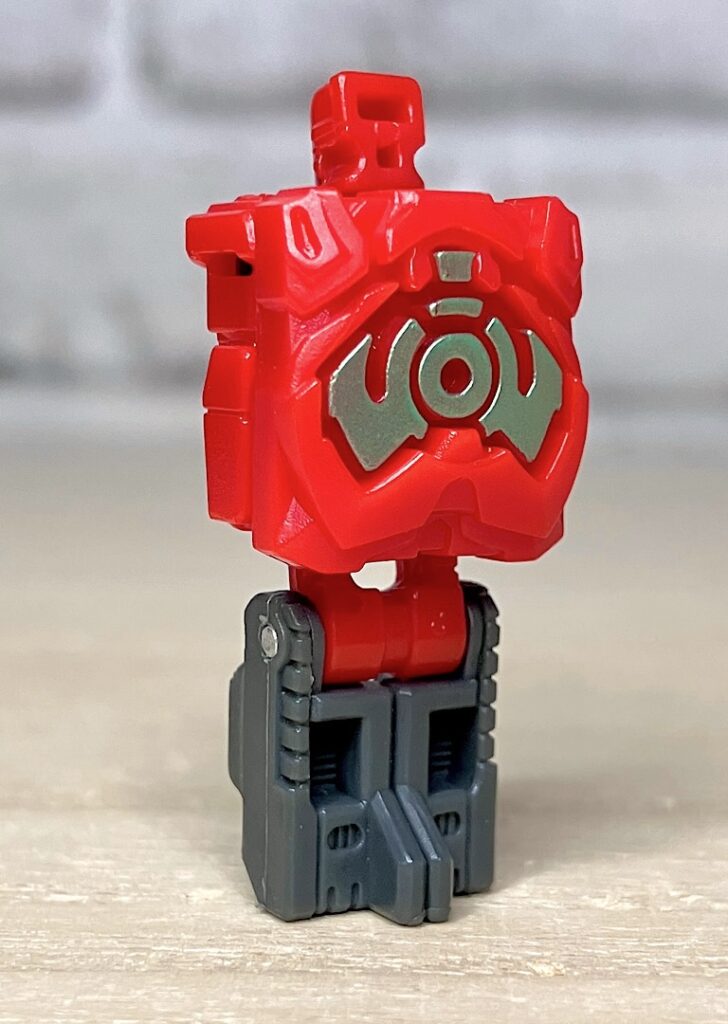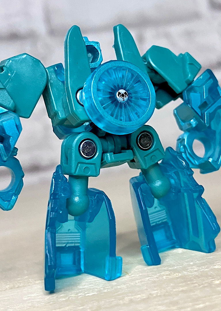 【ロボットモード】ミニコンの祖というだけあって小さなクリアカラーのボディが特徴。小さいながらもどっしりとした神々しい雰囲気です。ちなみに今回のデザインはアニメRID2015(アドベンチャー)に登場したバージョンを強く引き継いでいます。