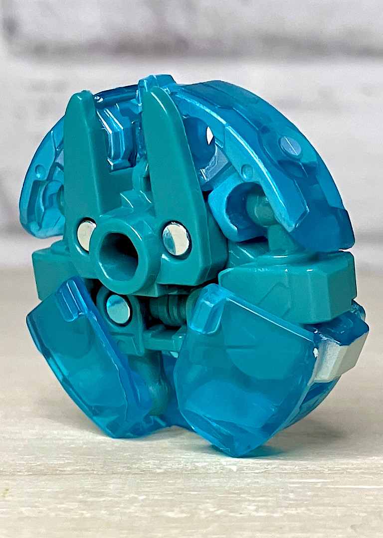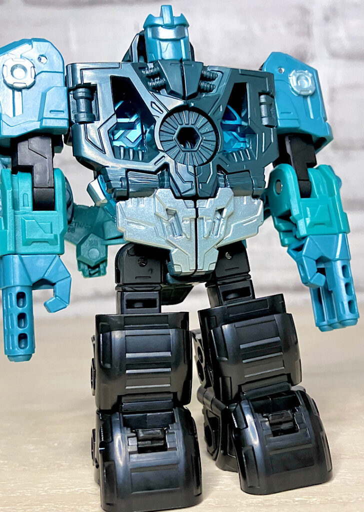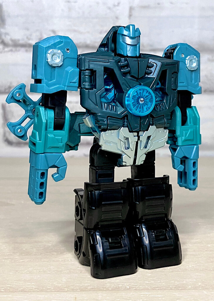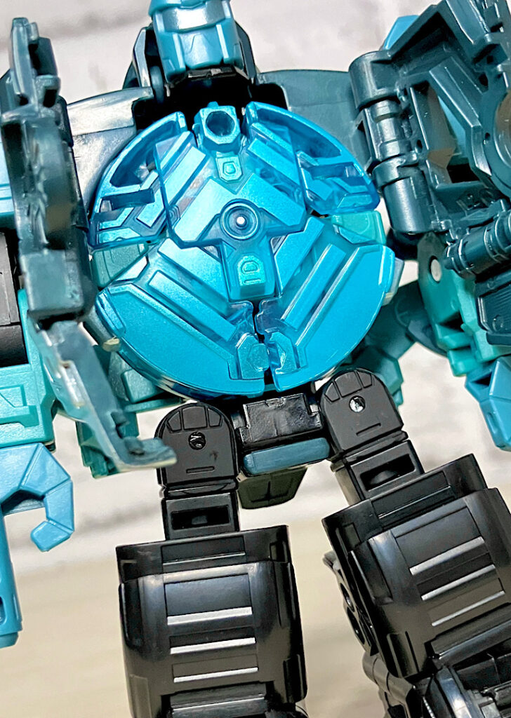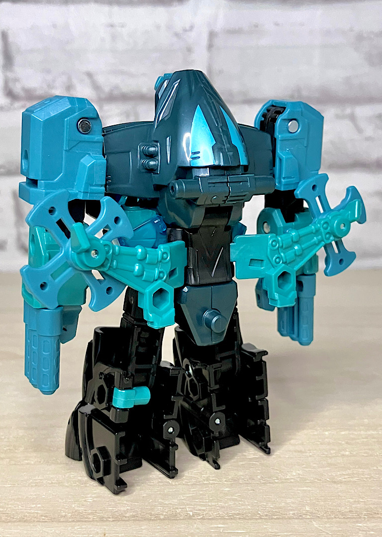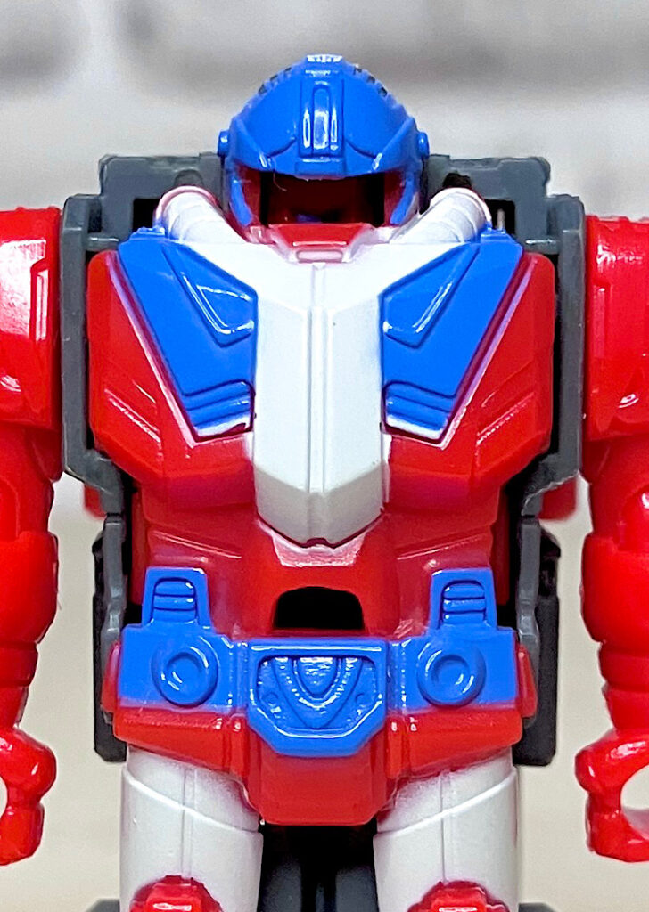 【ロボットモード】ミニコンの祖というだけあって小さなクリアカラーのボディが特徴。小さいながらもどっしりとした神々しい雰囲気です。ちなみに今回のデザインはアニメRID2015(アドベンチャー)に登場したバージョンを強く引き継いでいます。