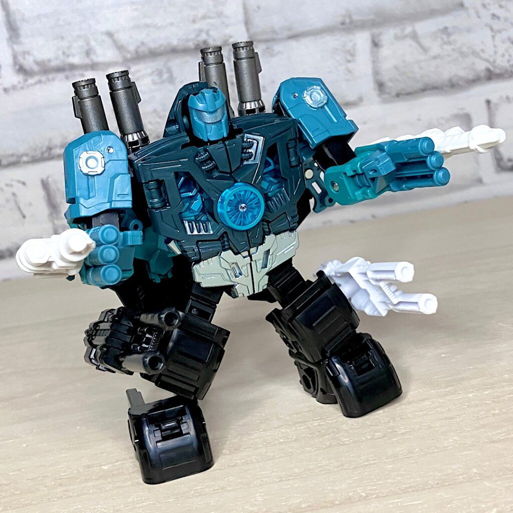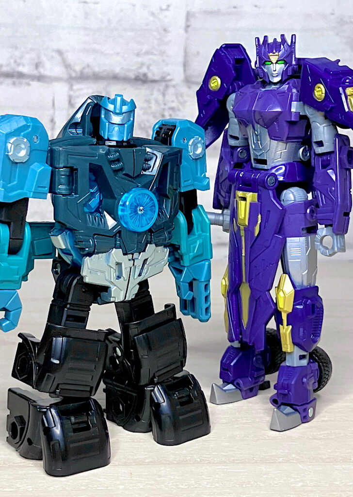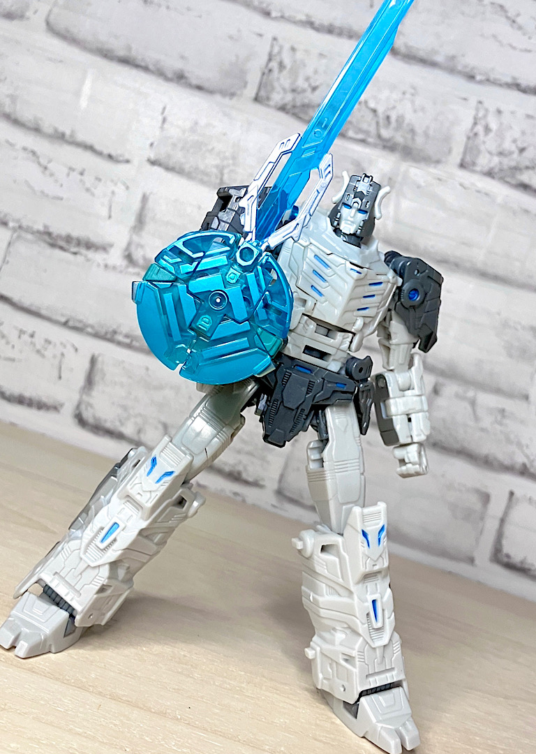 なお同じデラックスクラスのソラスプライムと並べるとこのくらい。頭頂高は低いですが、密度感やプレイバリュー、パーツ数を考えるとこれでデラックスに収まっているのははっきり言って驚異的です!THE13はやっぱり侮れないですね。
