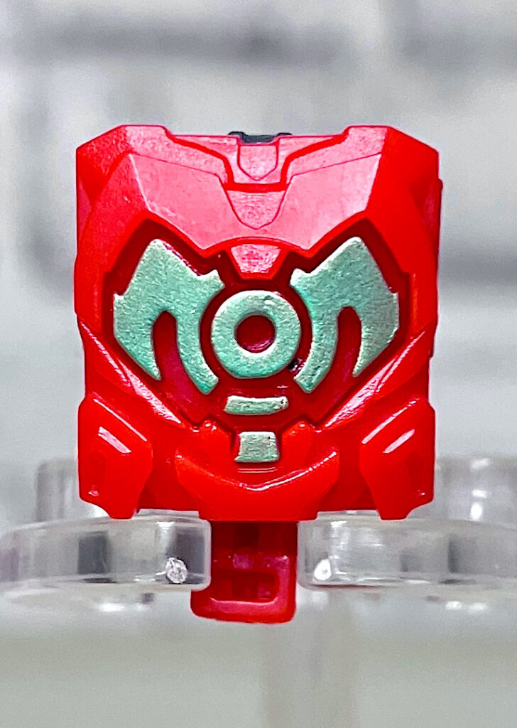 【付属品】というわけでマイクロナスプライムのアーティファクトは「キメラストーン」。マイクロナス自身のパワーを他のTFに分け与える時の「導線」の役割を持つアイテムです。後のミニコンが持つ能力の元というわけですね。すっごく小さなエンブレムが書いてあります。