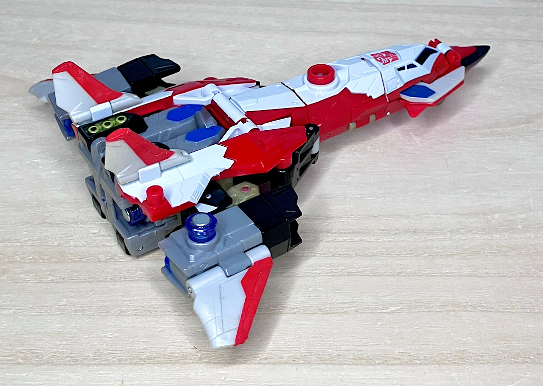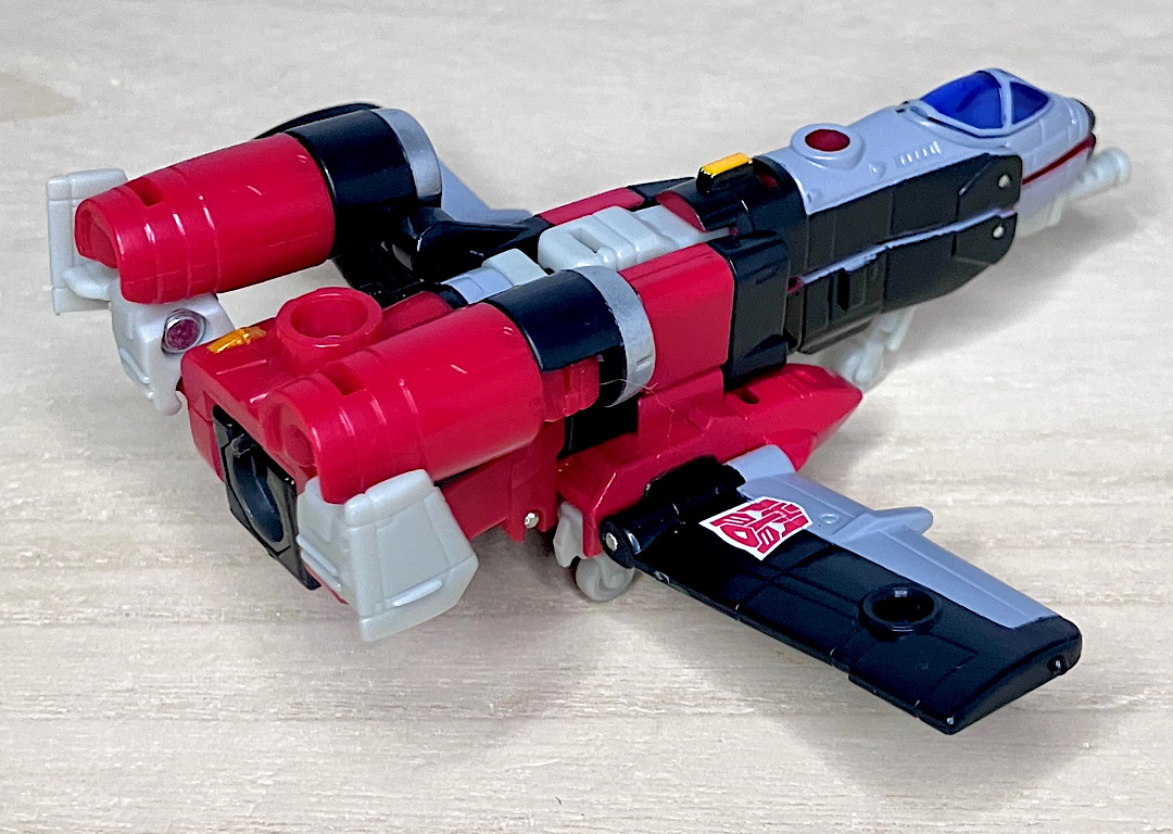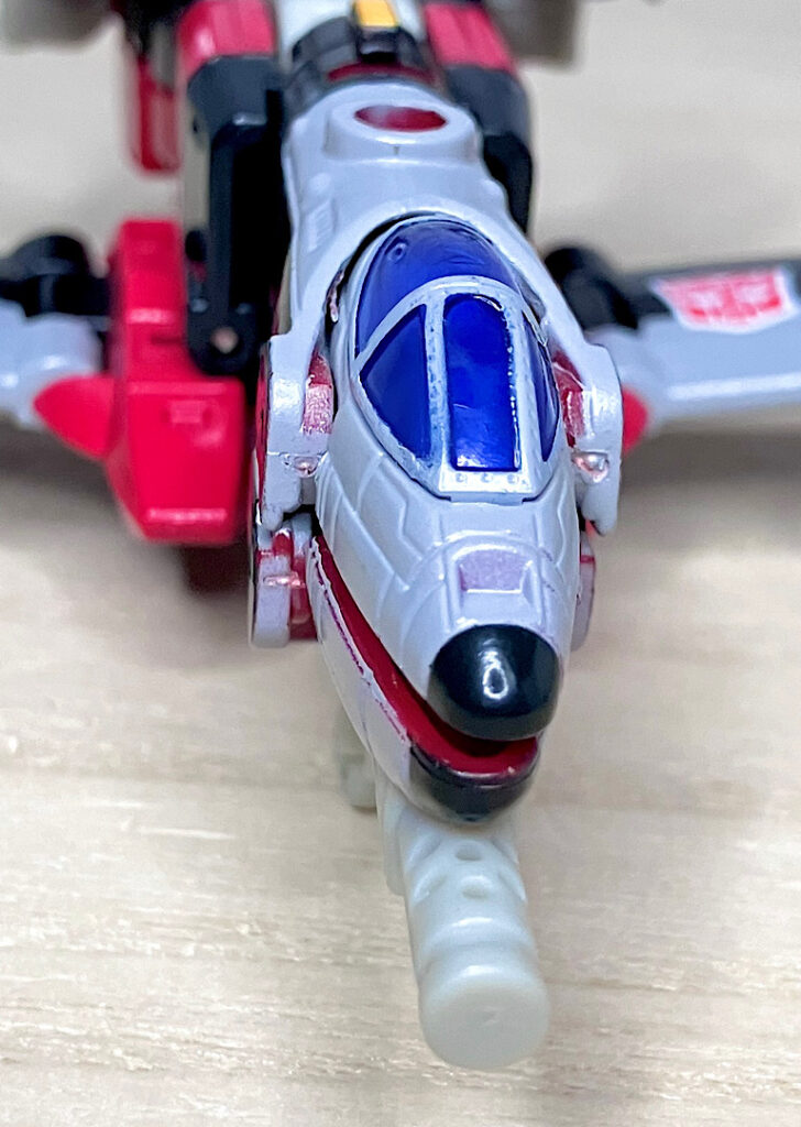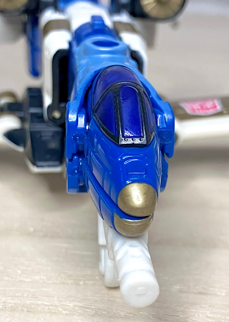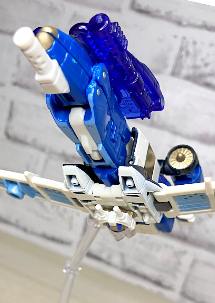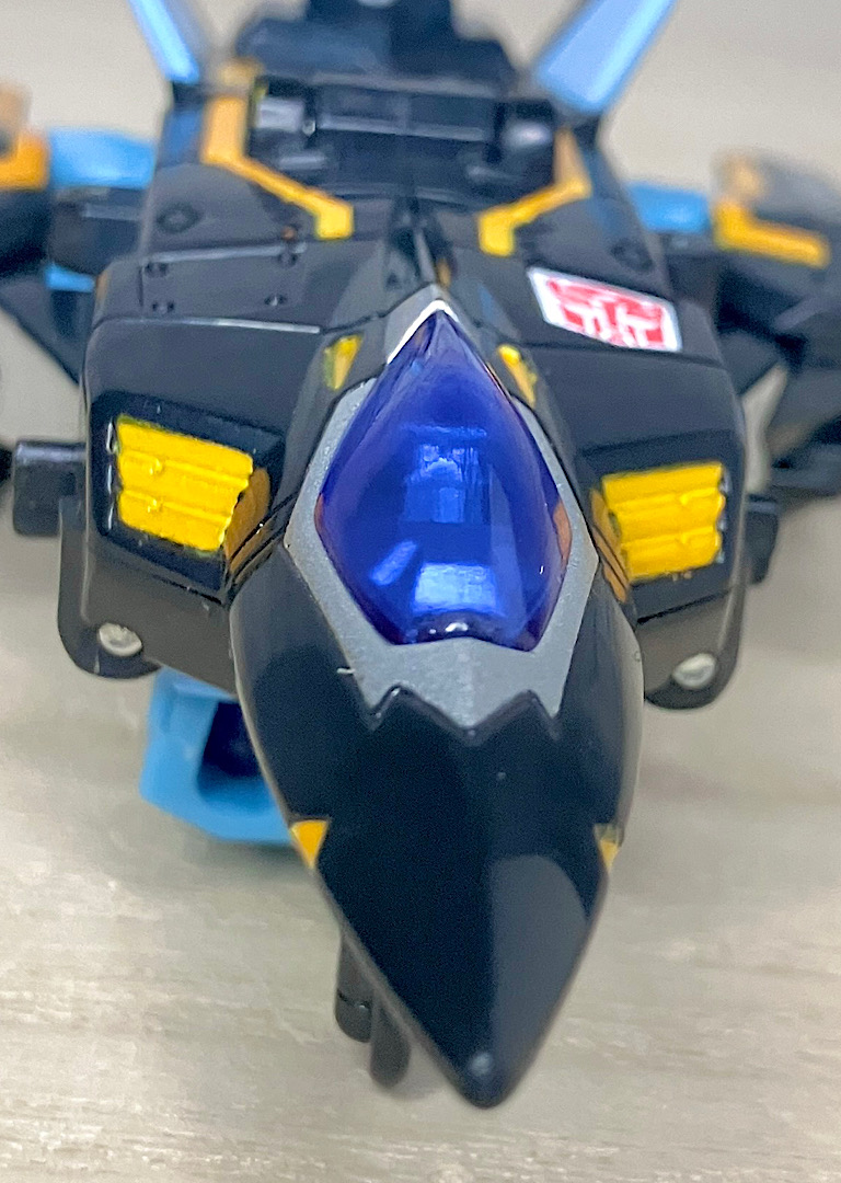 【ビークルモード】SR-71ブラックバードベースのジェット機に変形。G1シルバーボルト/コンコルドの(2004年頃の)現代版置き換えとしても納得感がありますし、ヒロイックでゴテゴテしたラインがいかにも三部作時代という感じ。