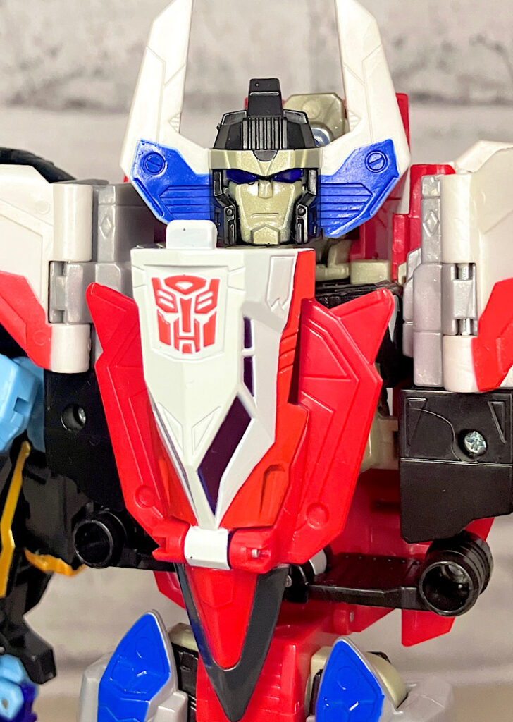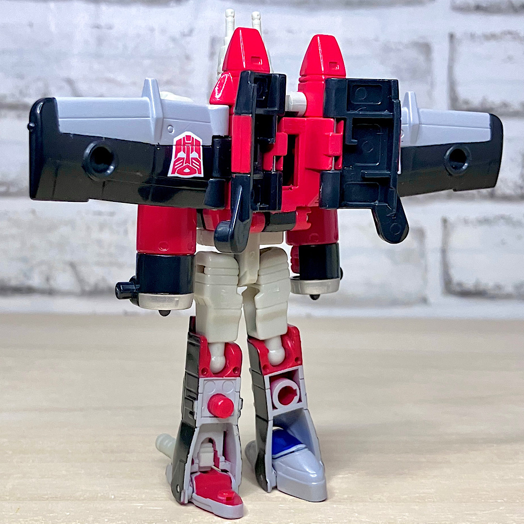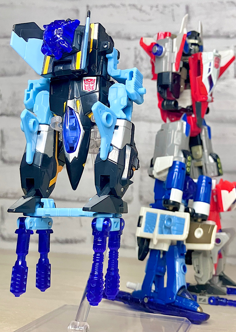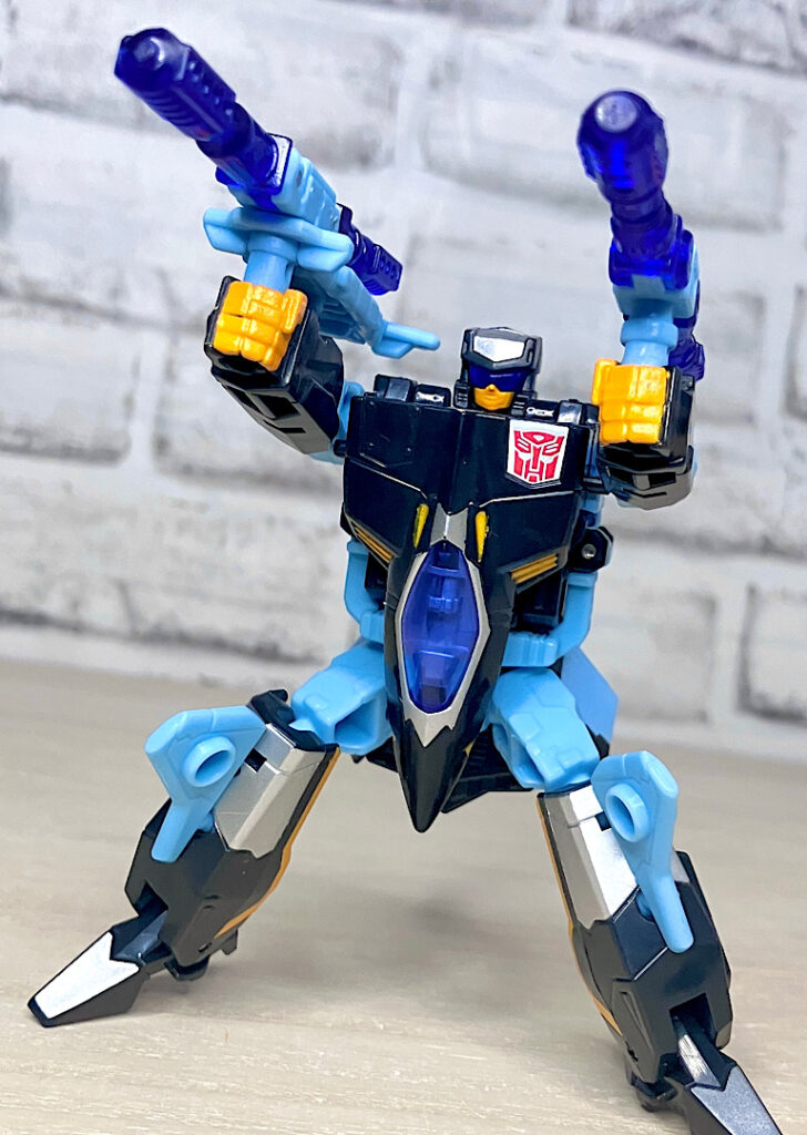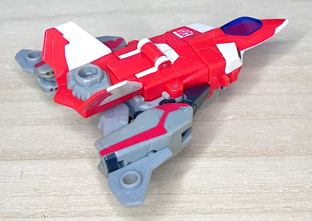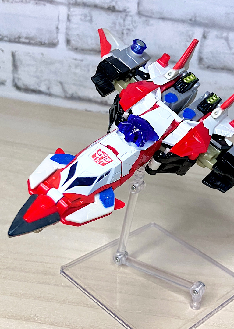 【ビークルモード】SR-71ブラックバードベースのジェット機に変形。G1シルバーボルト/コンコルドの(2004年頃の)現代版置き換えとしても納得感がありますし、ヒロイックでゴテゴテしたラインがいかにも三部作時代という感じ。