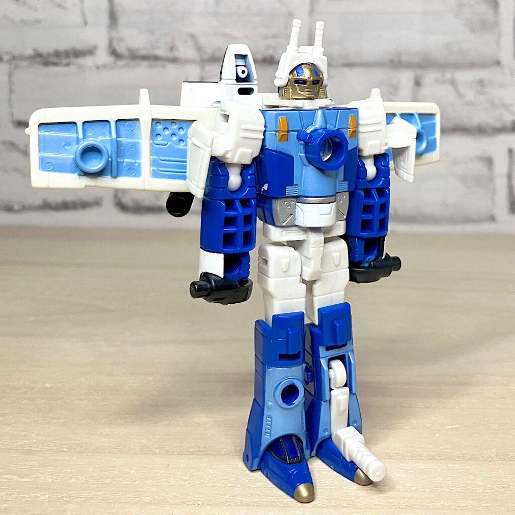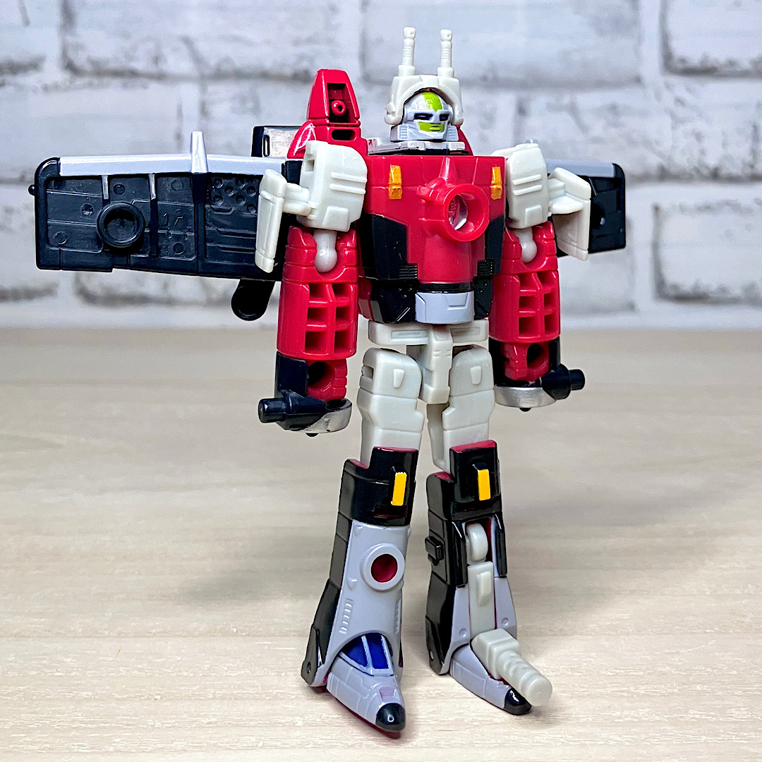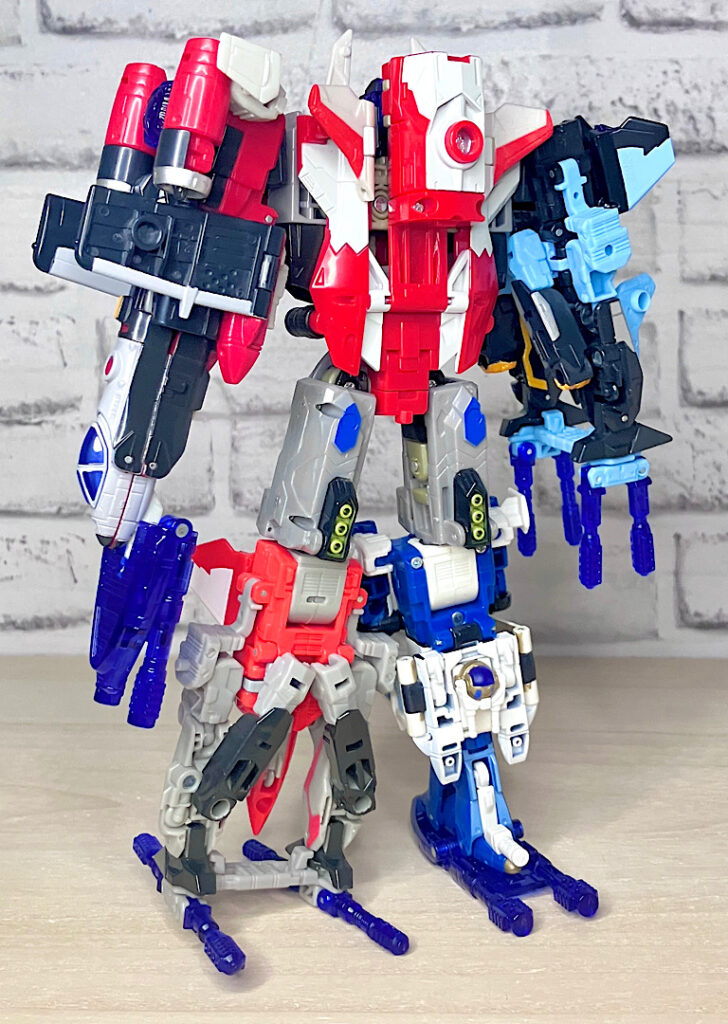 コアとなるアフターバーナーを中心にした5体チームですが、手足組はなんとリカラーペア×2で4体という省エネ設計。まあこのころの合体戦士は冒険だったでしょうから、こんな形でも実現したこと自体に意味があるでしょうね。