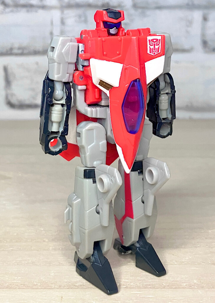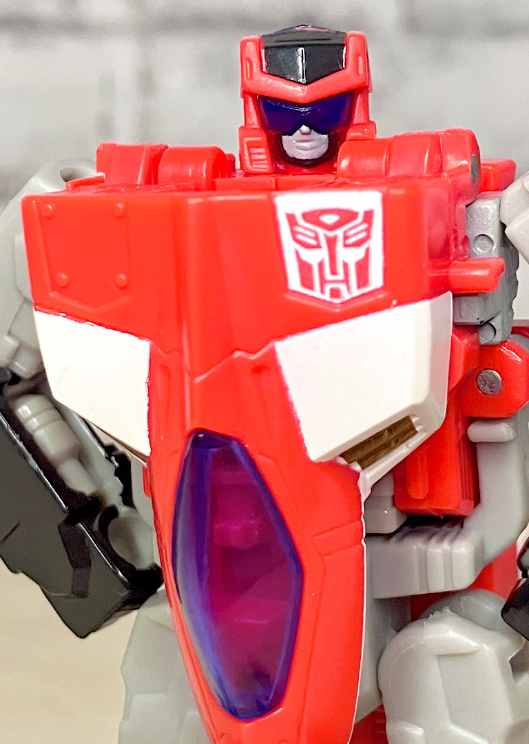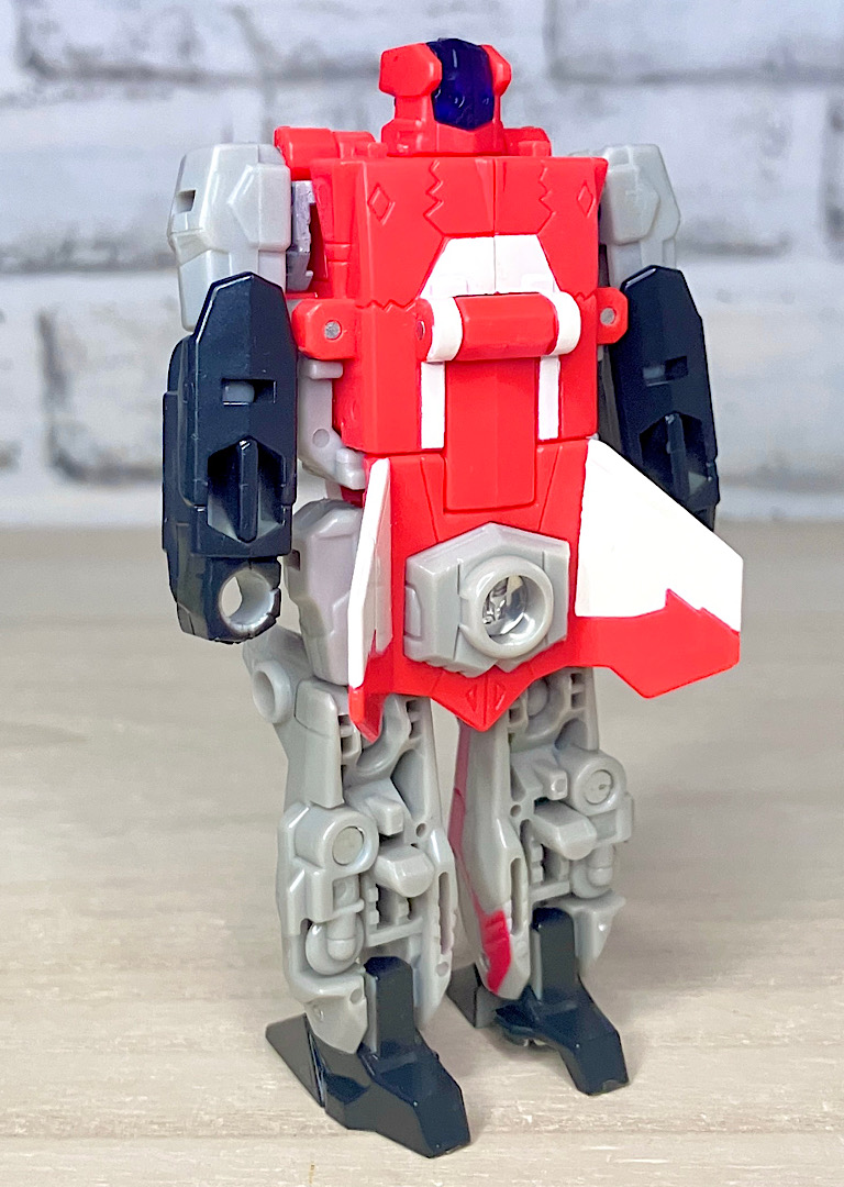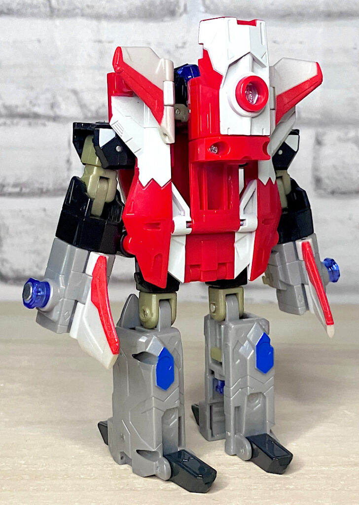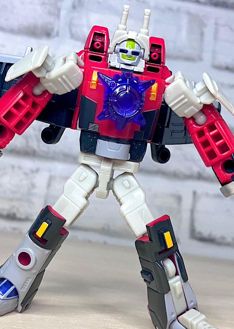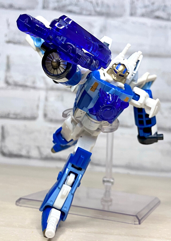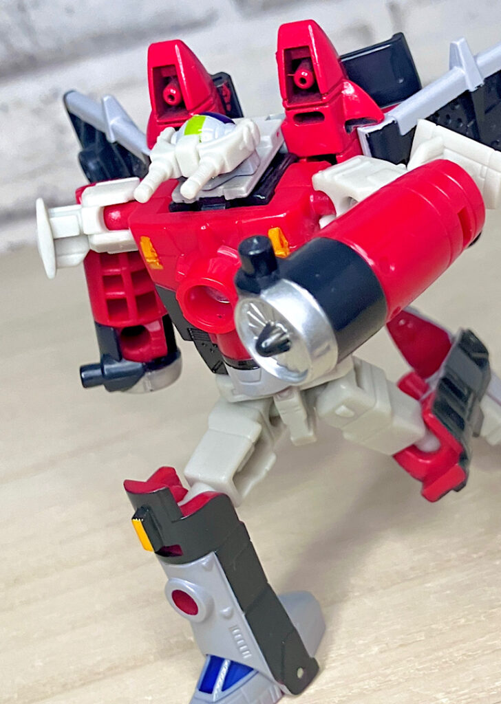 【ロボットモード】チームのコアとなるリーダー。本来なら「シルバーボルト」がいいんでしょうが、前作で別キャラに使われてしまっていたので、アフターバーナーになったと思われます。航空キャラながらマッシブで力強いスタイルが特徴です。