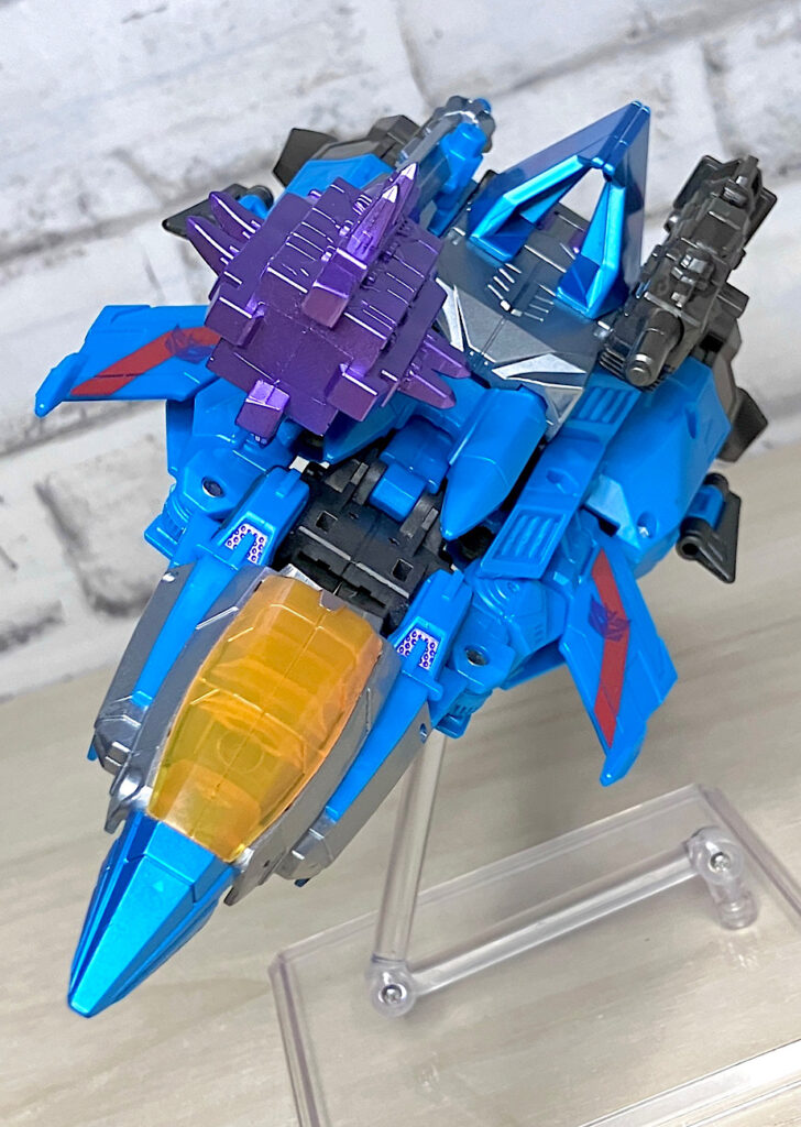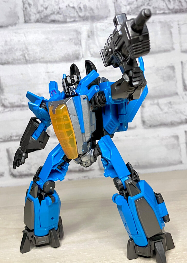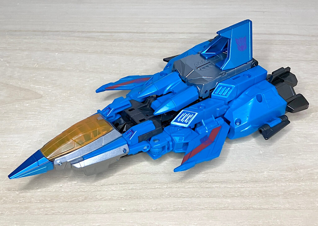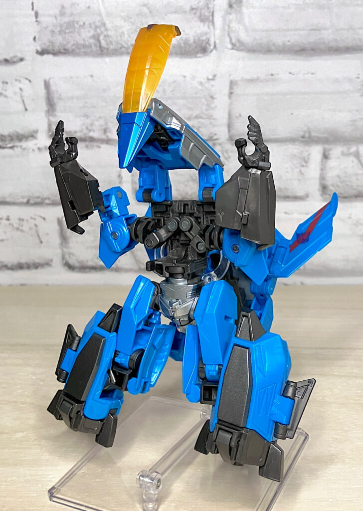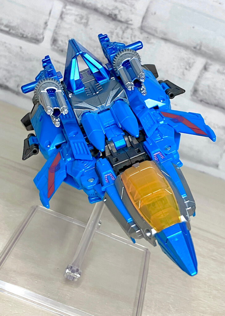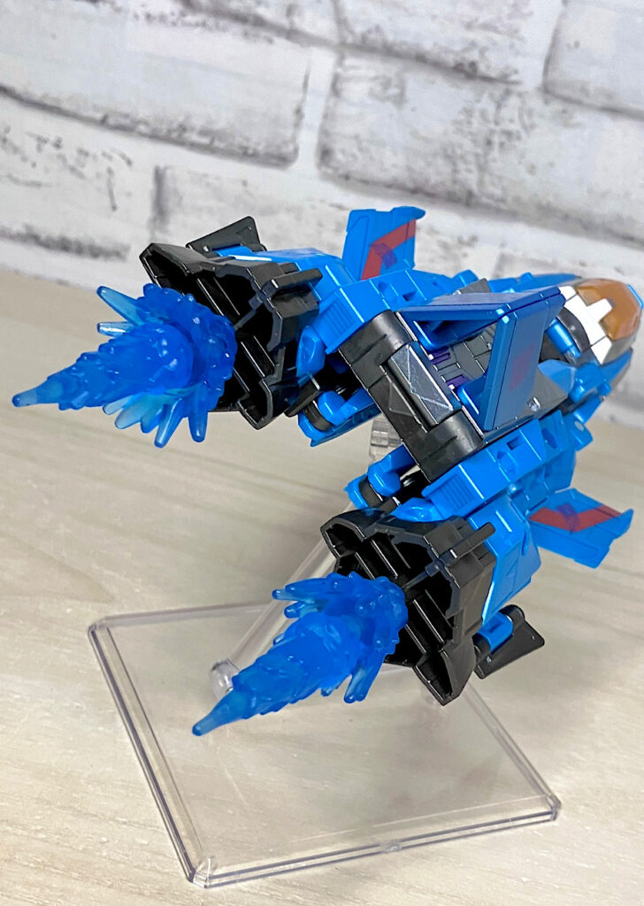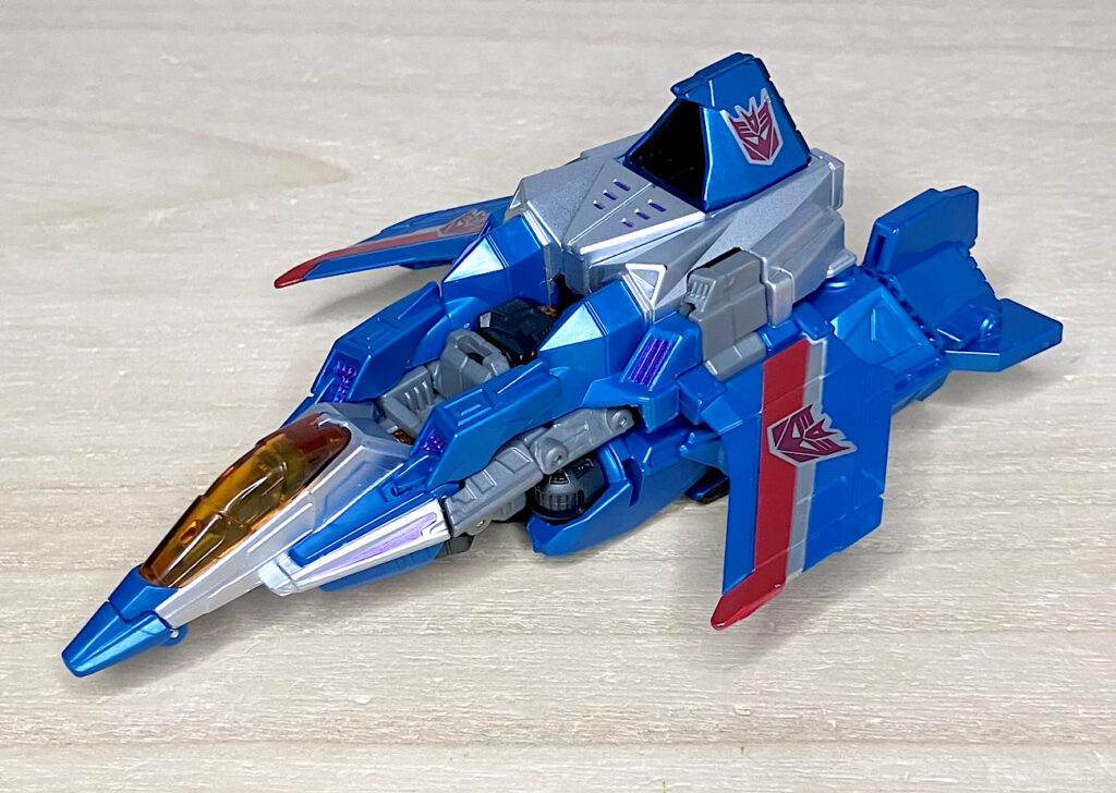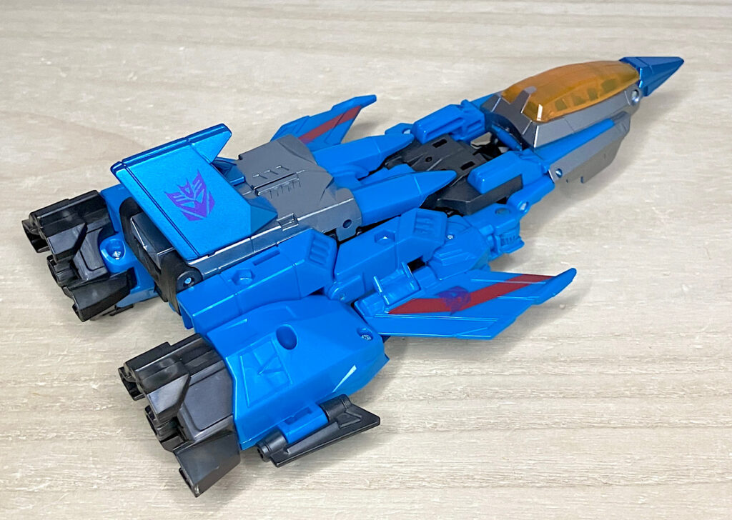 【変形】可もなく不可もなくといった印象。垂直尾翼を回転させてビークル時は三角に、ロボ時は外開きにできるのは、旧ジェネレーション版からの進化ポイント。