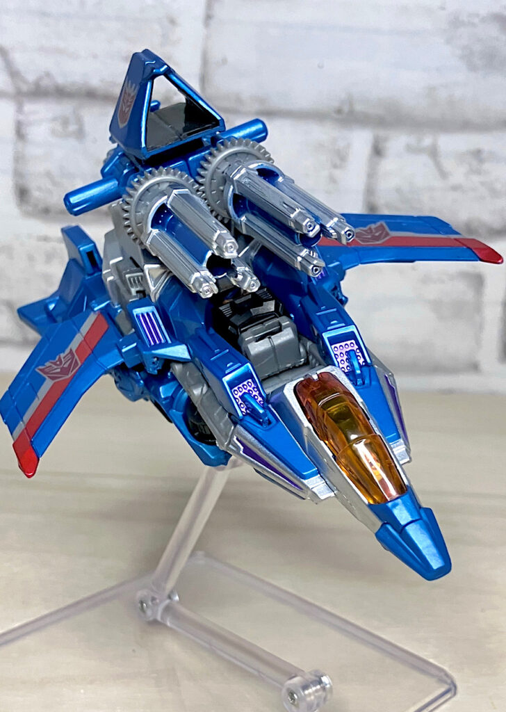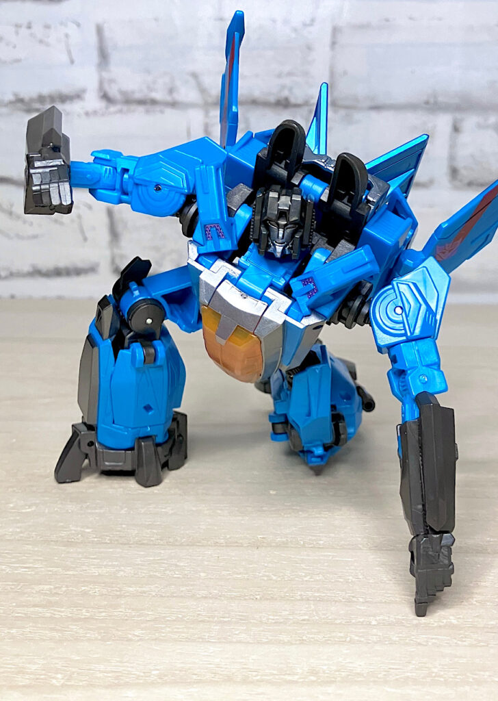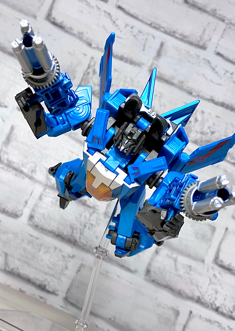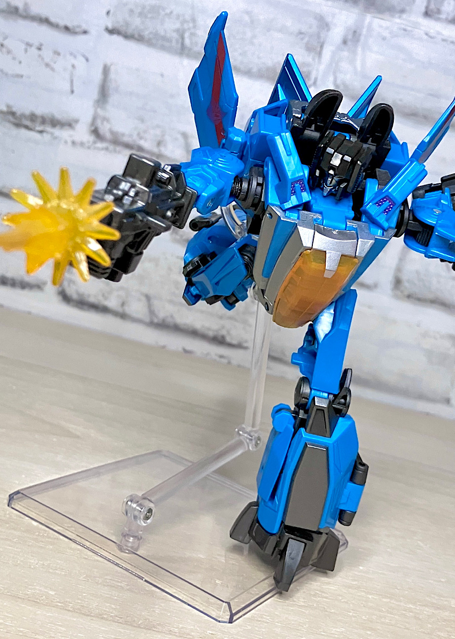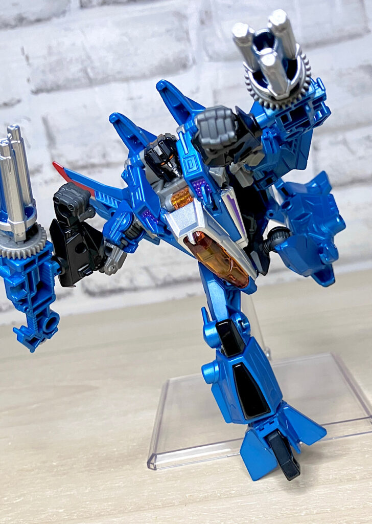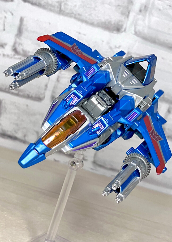 【変形】可もなく不可もなくといった印象。垂直尾翼を回転させてビークル時は三角に、ロボ時は外開きにできるのは、旧ジェネレーション版からの進化ポイント。
