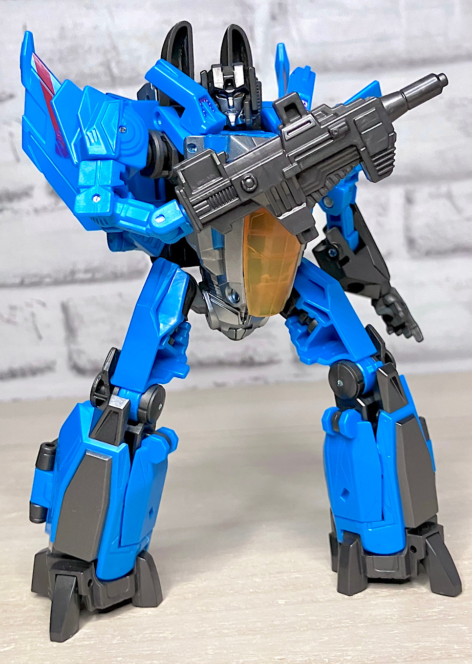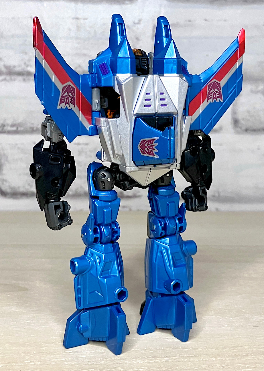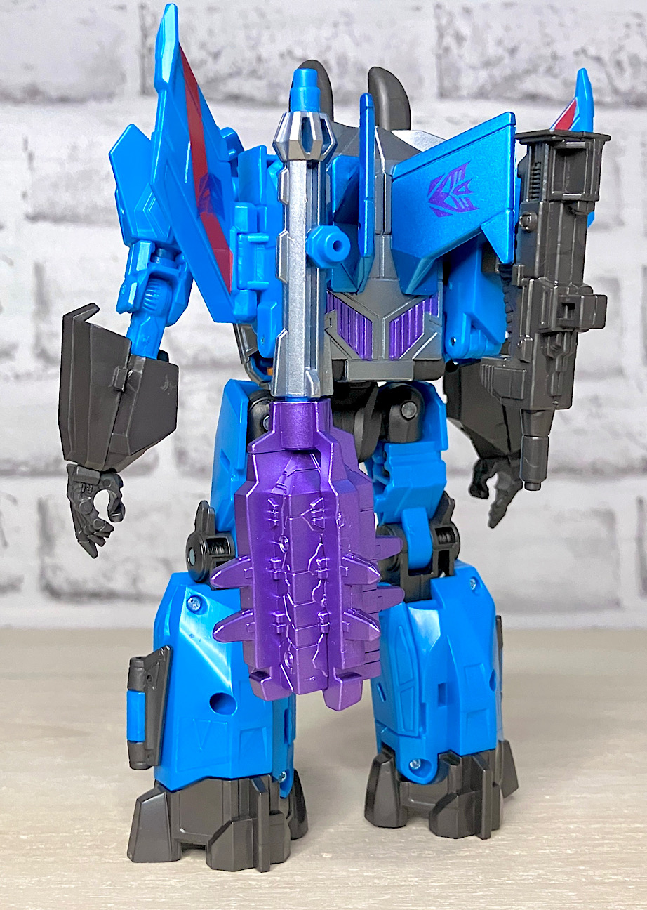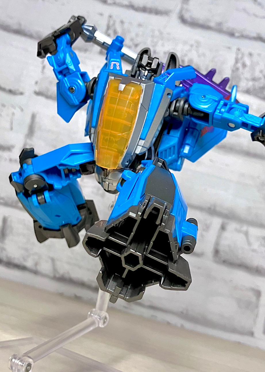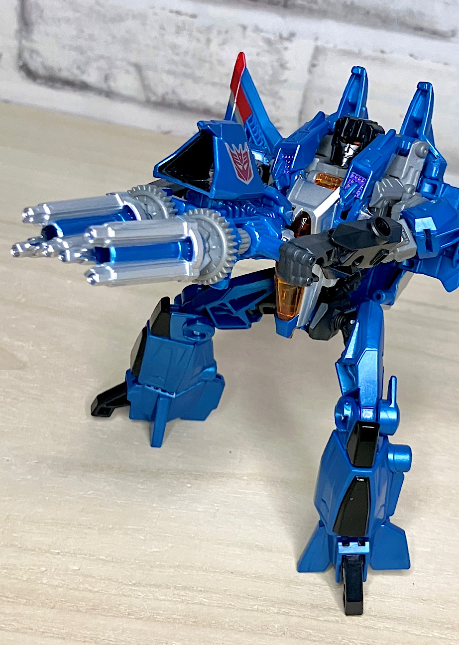 【変形】可もなく不可もなくといった印象。垂直尾翼を回転させてビークル時は三角に、ロボ時は外開きにできるのは、旧ジェネレーション版からの進化ポイント。