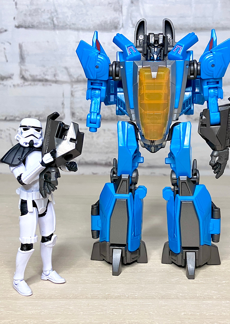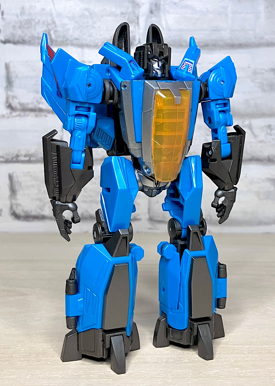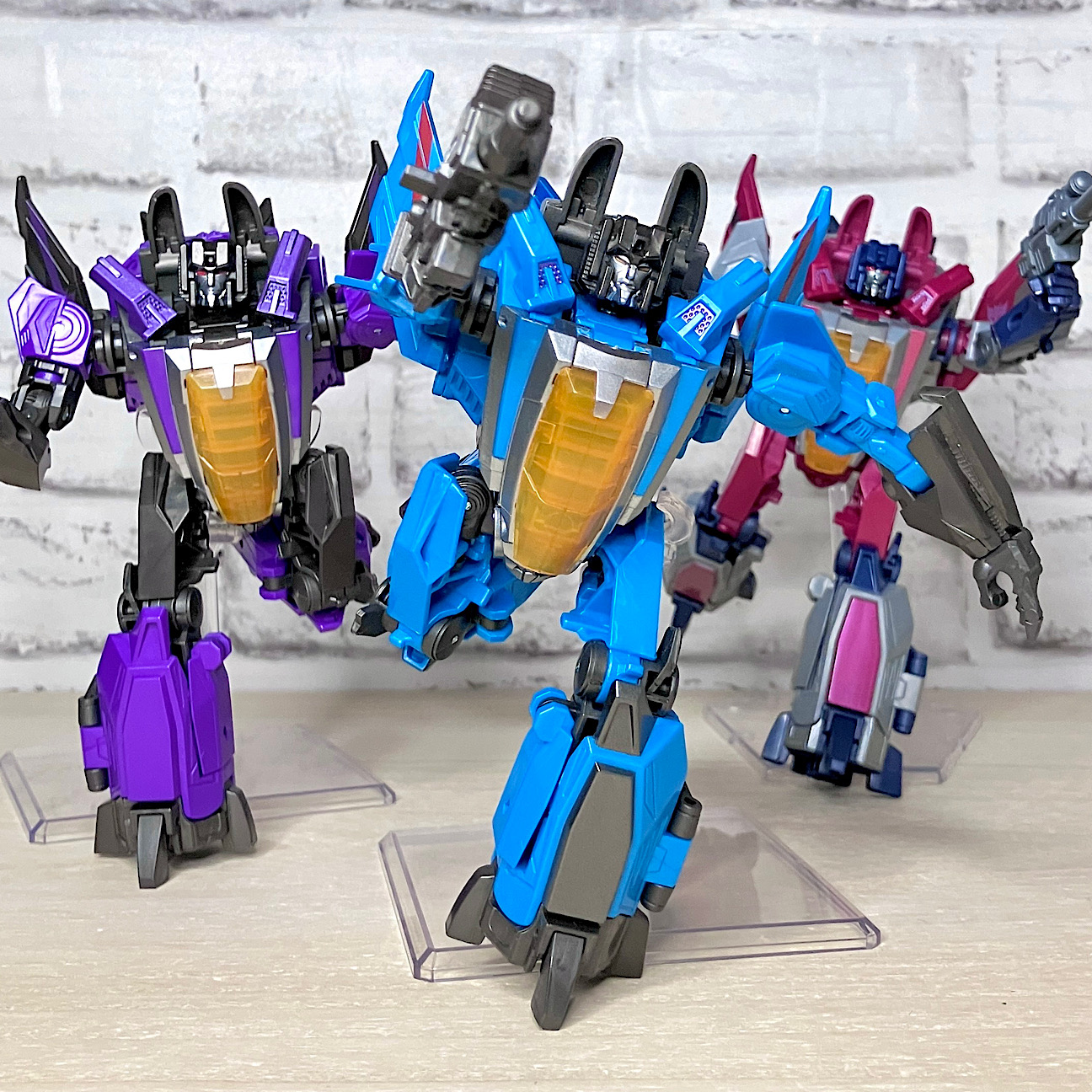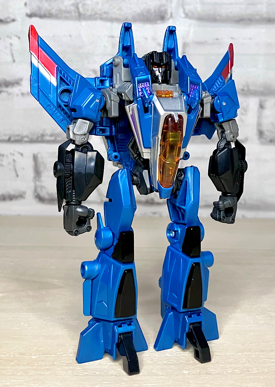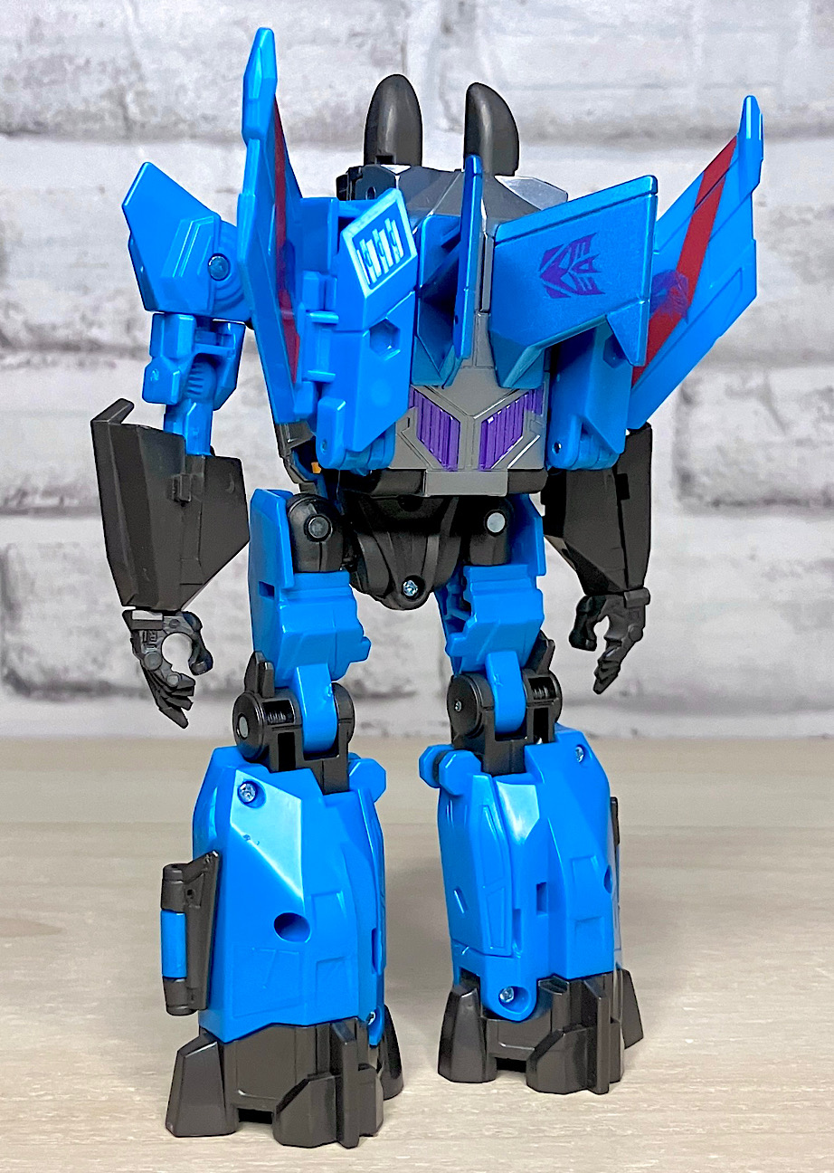 【変形】可もなく不可もなくといった印象。垂直尾翼を回転させてビークル時は三角に、ロボ時は外開きにできるのは、旧ジェネレーション版からの進化ポイント。