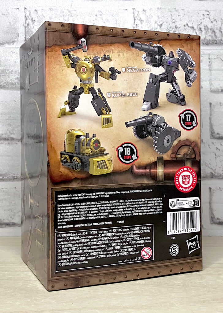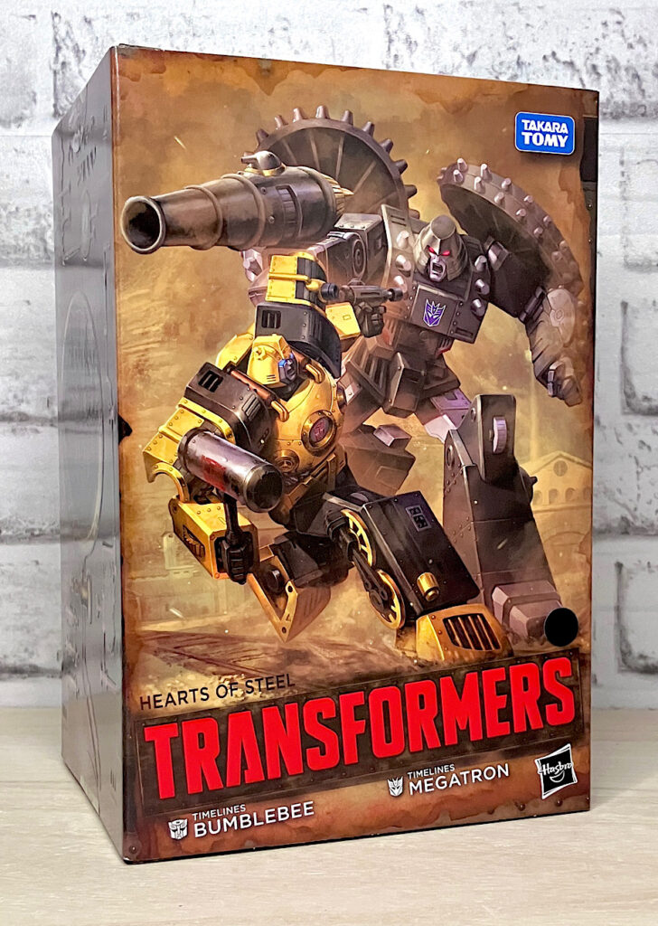 【パッケージ】TIMELINESは2025年から始まったハズブロパルス限定シリーズ。オプティマス・バンブルビー・メガトロン・スタースクリームの4体が、別の時代・別の場所に出現したらというマルチバース展開をテーマにしているようです。アメコミではよくあるコンセプトで、第1弾はIDWコミックを元ネタにしたスチームパンク世界「ハートオブスティール」。