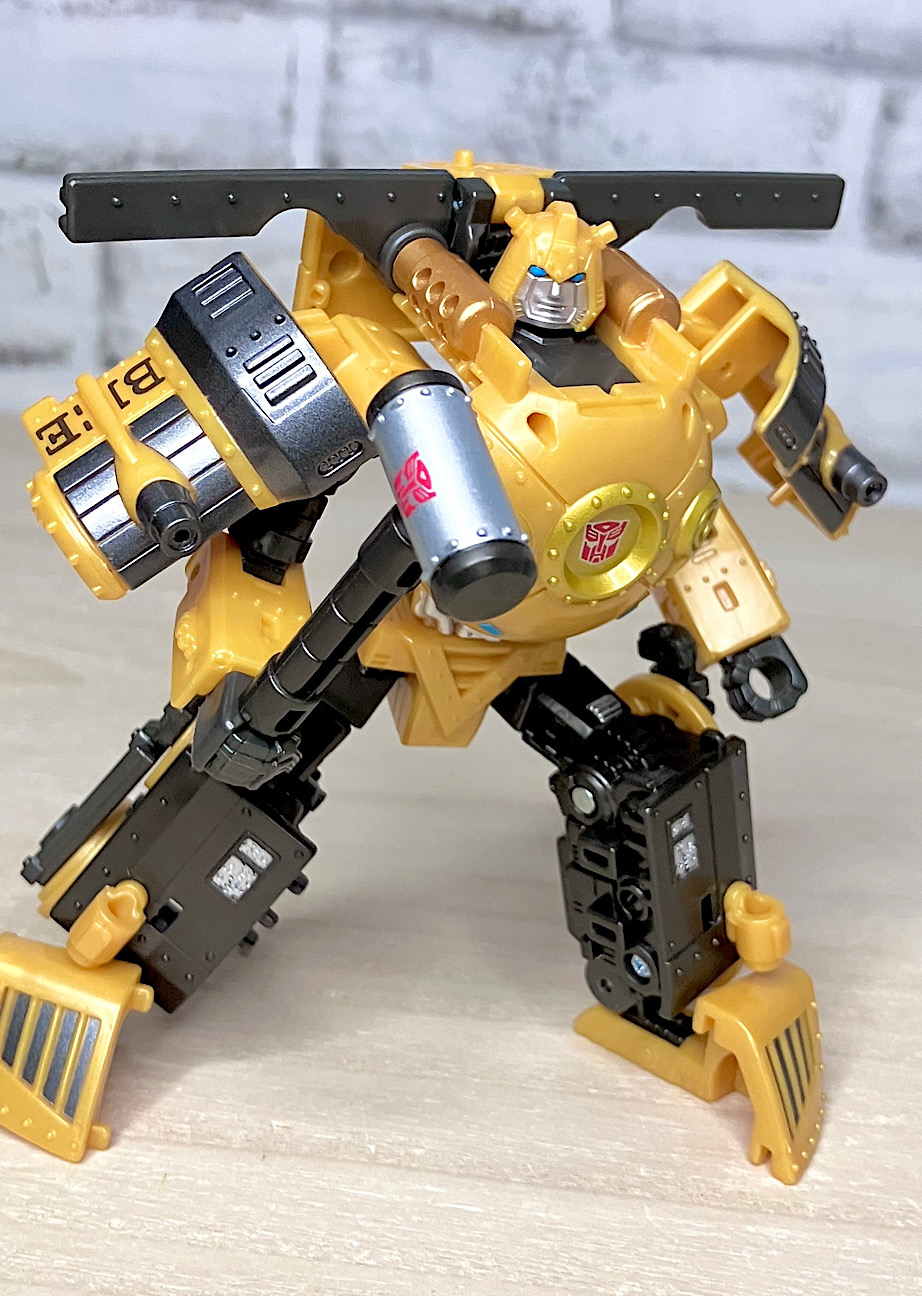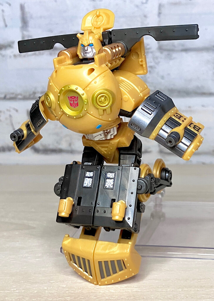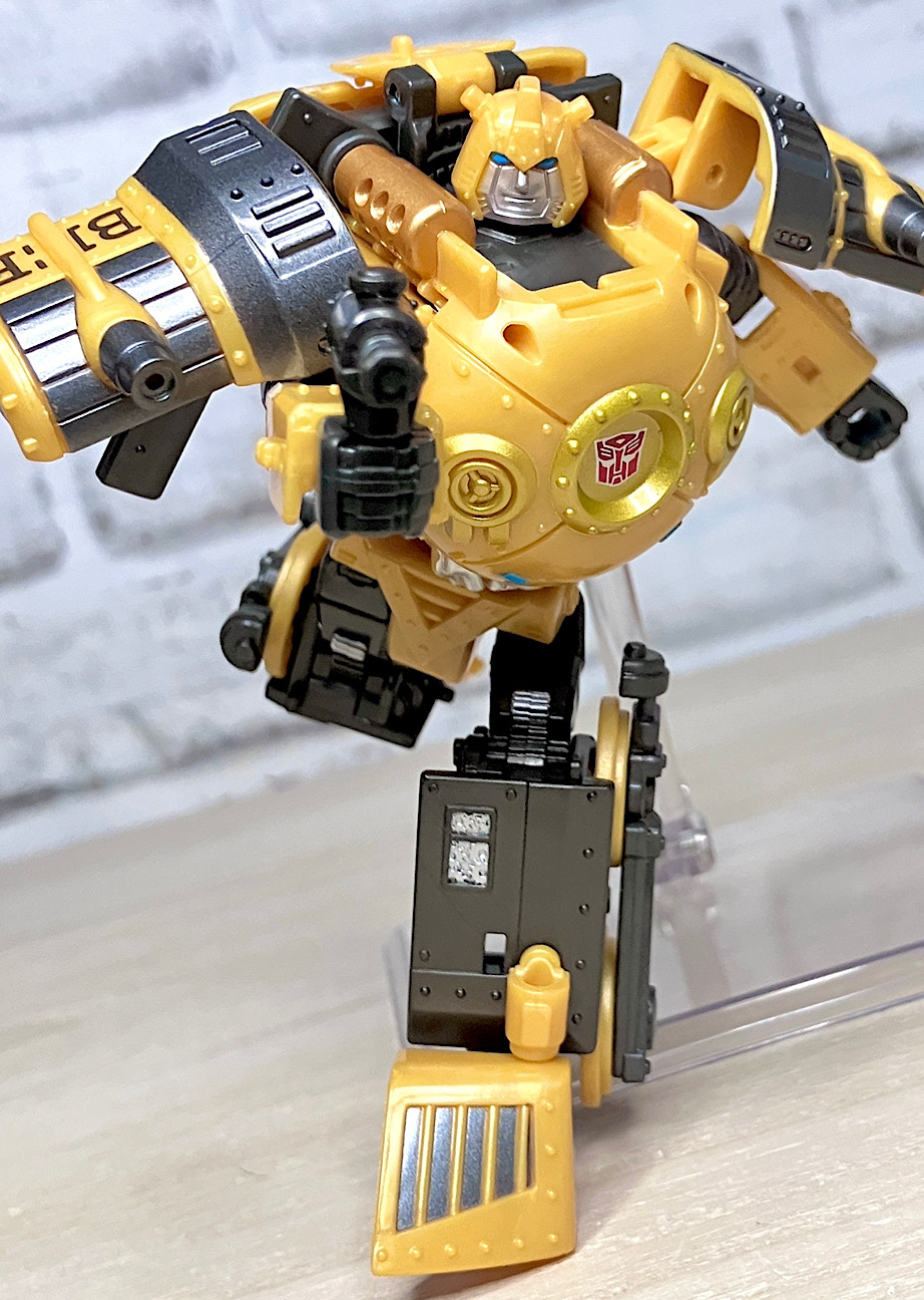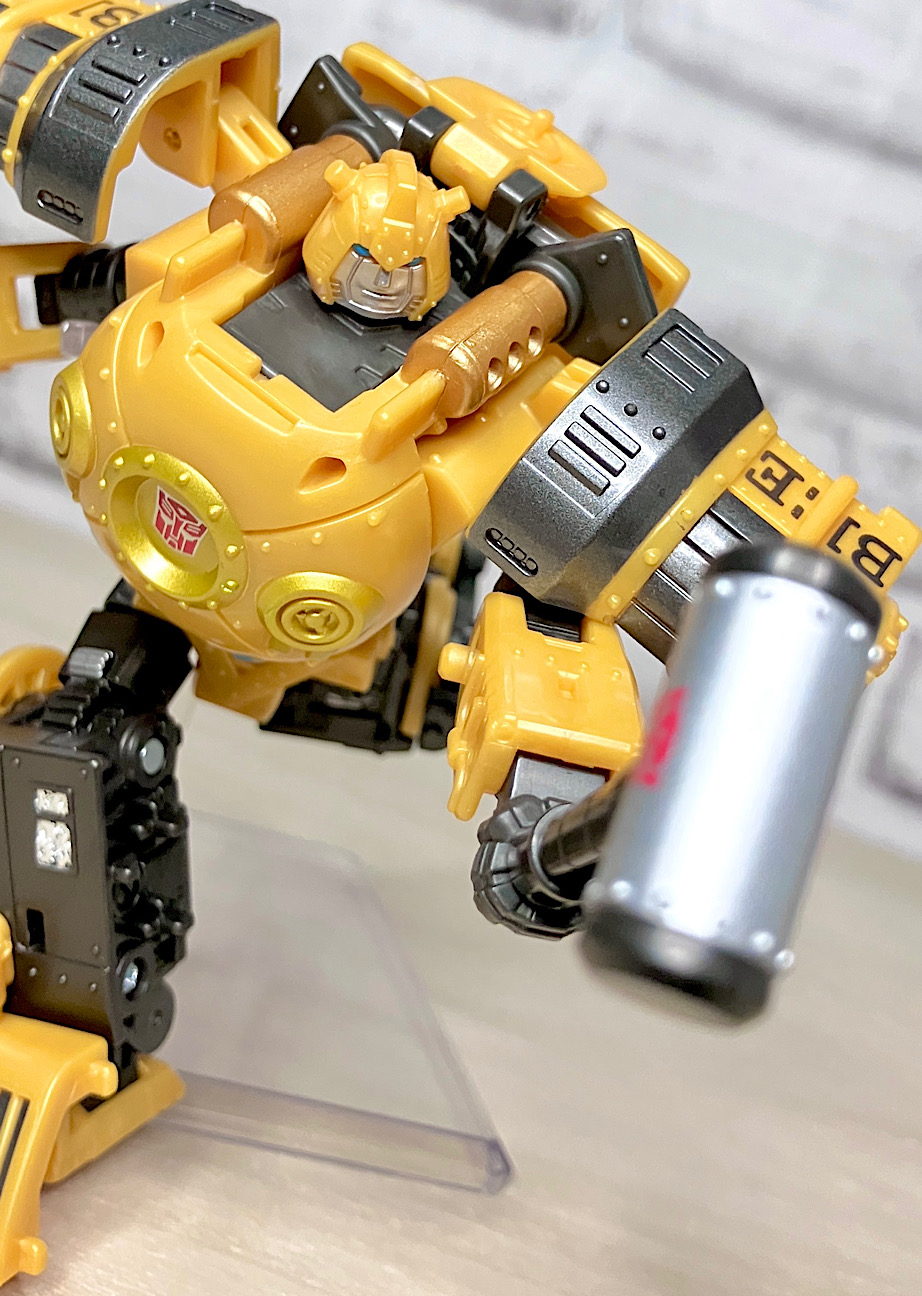 また、背面のビークルパーツは広げてウイングっぽくトランスプレイができるのですが、なんとなく懐かしのヘケヘケ版バンブルビーを連想させませんか?