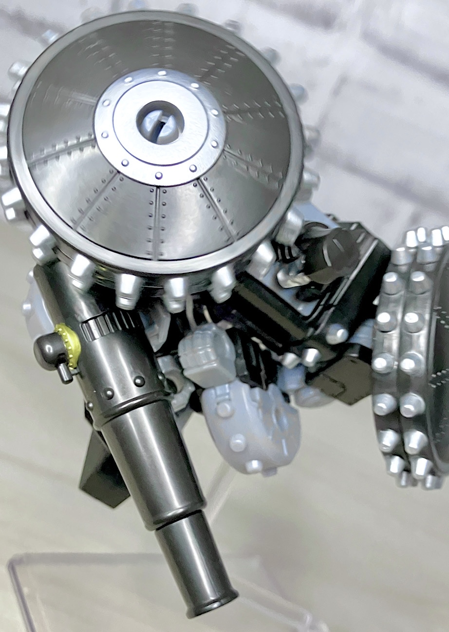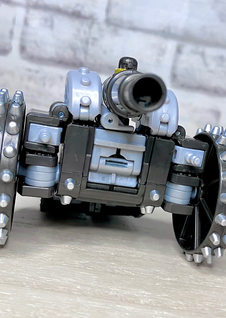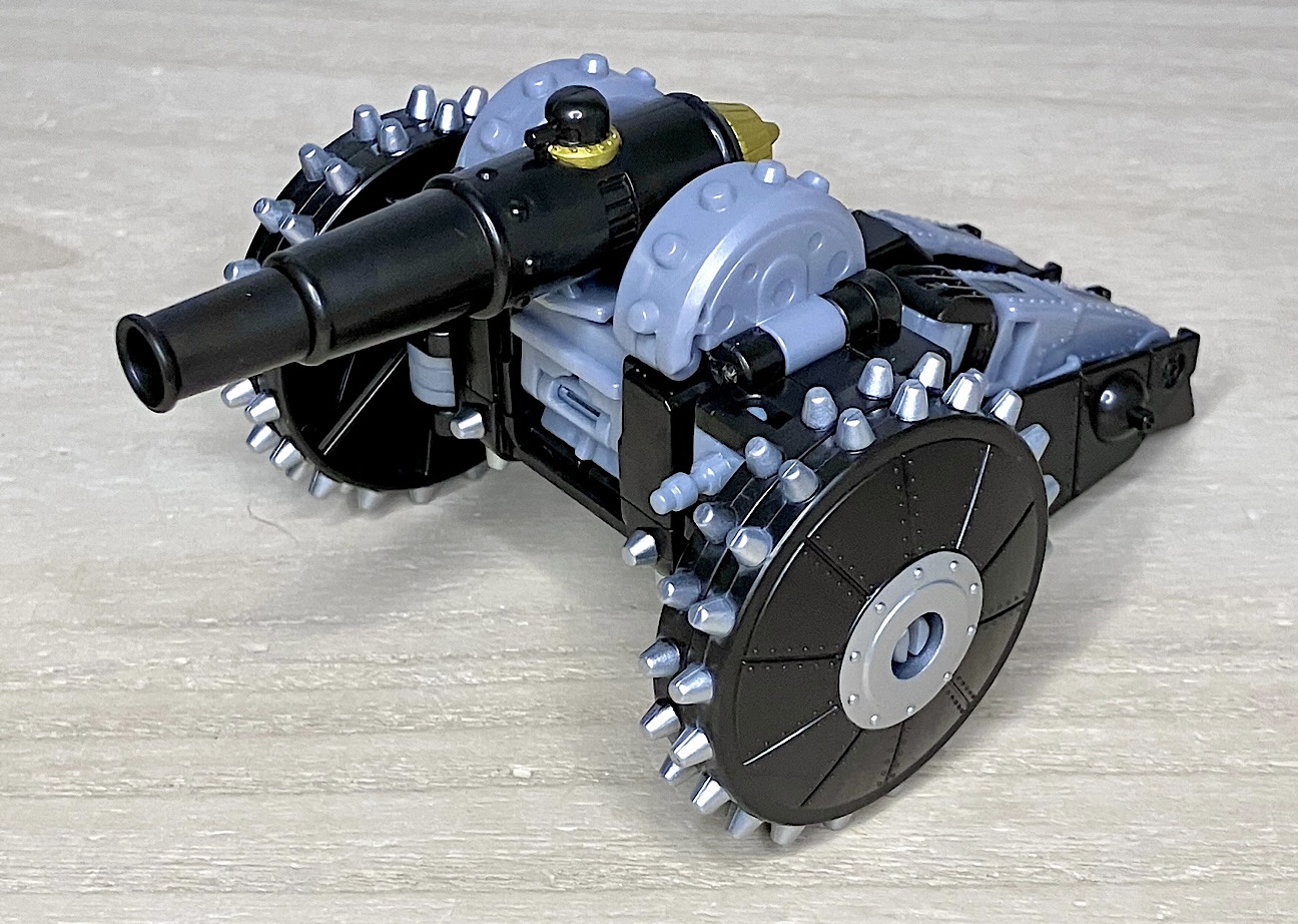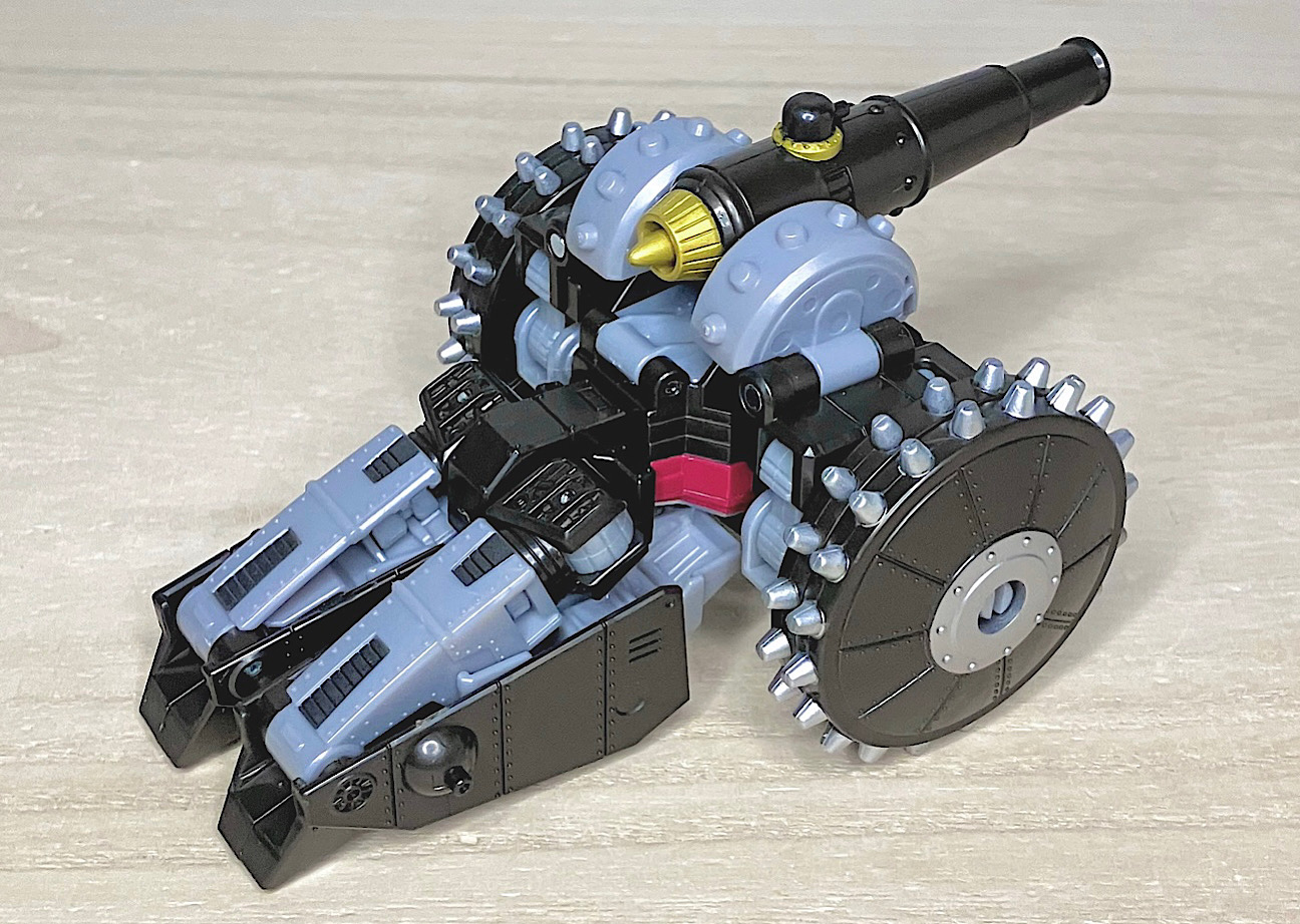 【ビークルモード】砲車に変形。産業革命時代のメガトロンモチーフとして納得のアイデア賞。スパイク車輪など凶悪さが高いのもポイントですね。