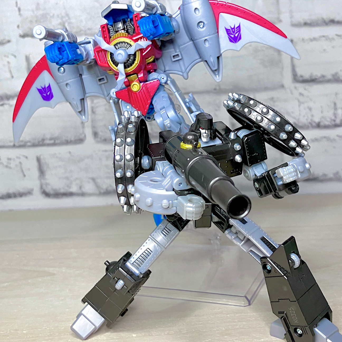 同シリーズのスタスクと。サイズこそメガトロンの方が大きいですが、スタスクもパーツ数多めでコスト的には負けていません。