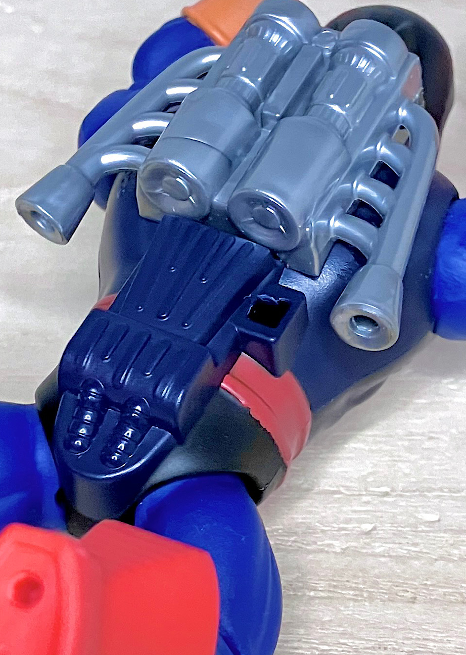 【フロント&リア】ホルダック配下のエビルホード軍らしいメカニック系スタイル。ヘルメットにマスク、お腹のホイール、背中のジェットパックとわかりやすい記号が散りばめられています。ていうか日本人向けに説明するなら「バイクマン」ですねw