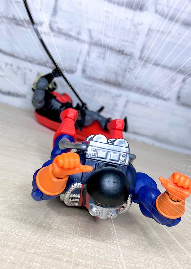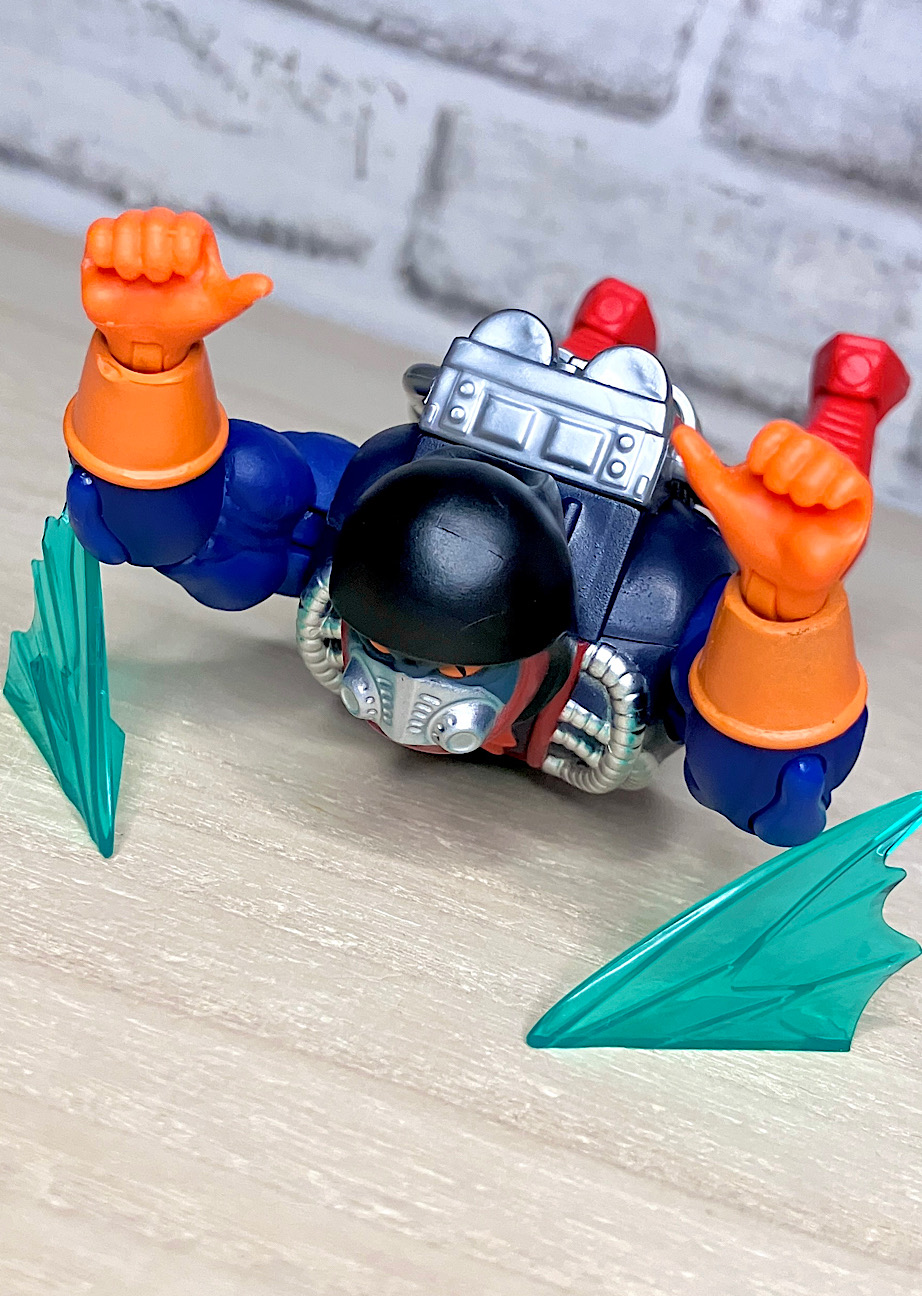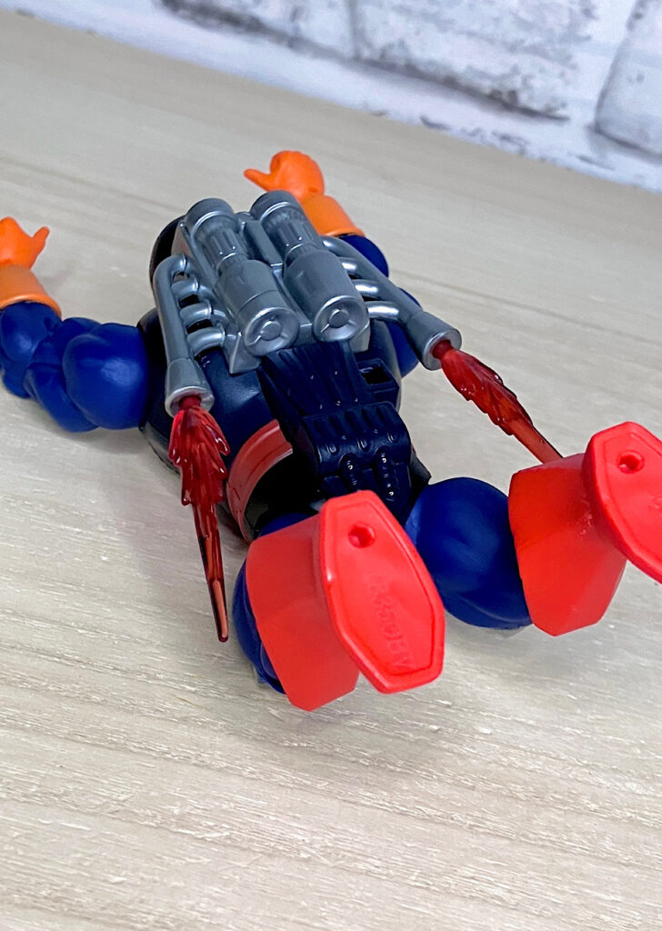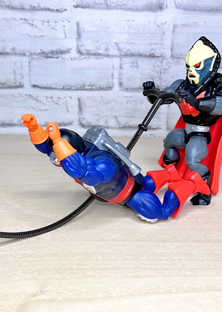 そう、お腹のホイールがリップコードギミックで勢いよく回転し、走り出すのです!これはMOTUらしい最高なバカバカしさで楽しすぎる!