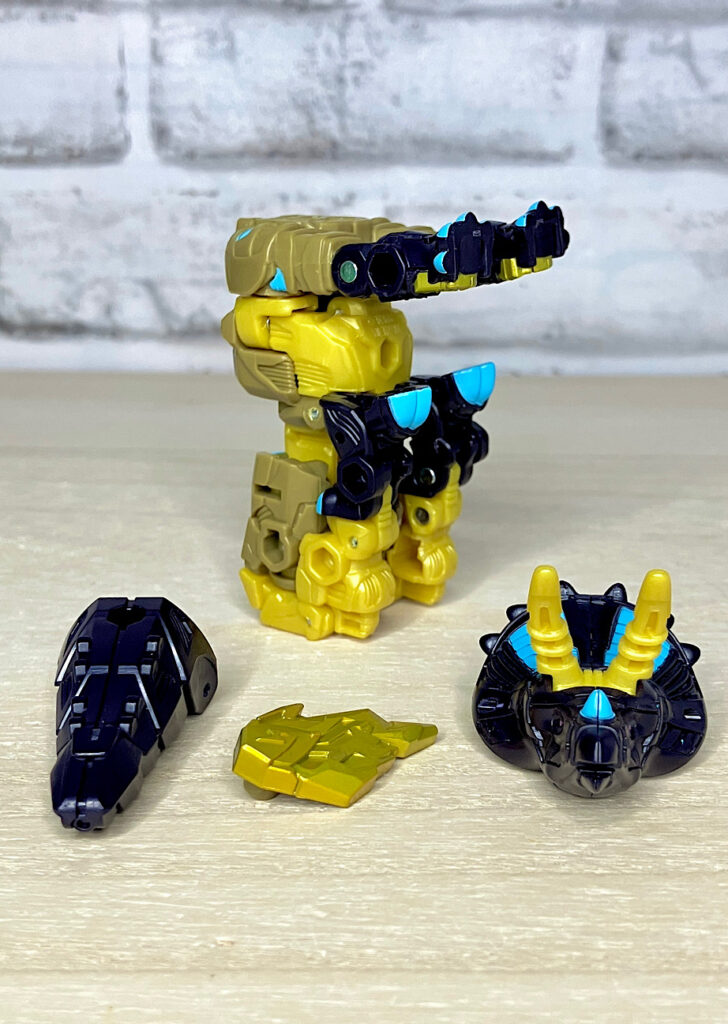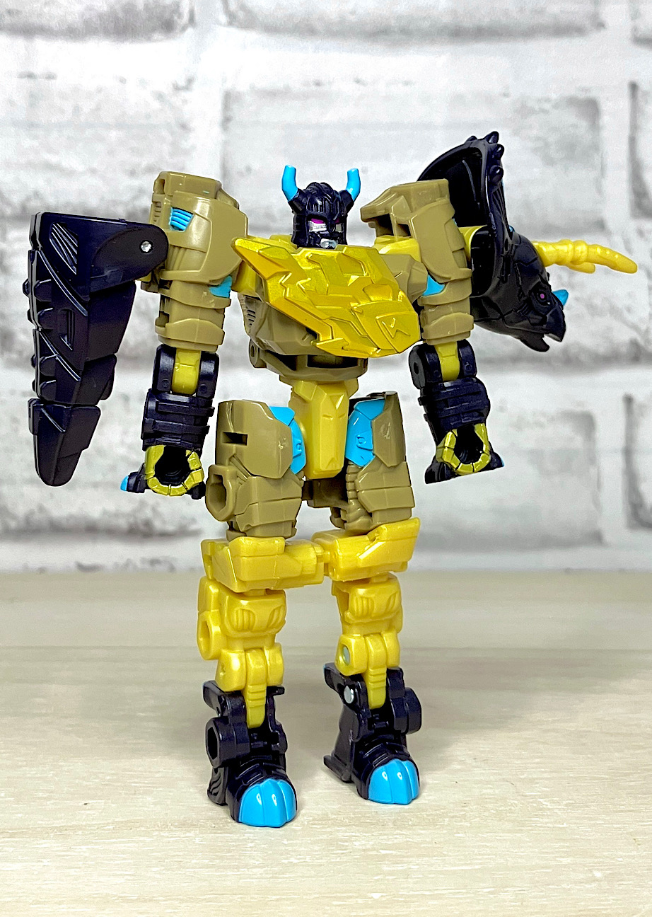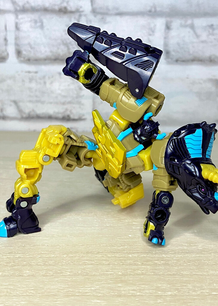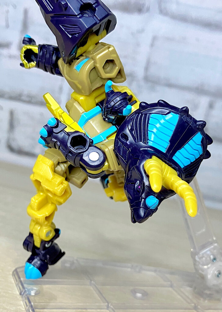 【ロボットモード】トリケラトプスの頭とシッポ、エナジーを取り付けてロボットモード完成。似た素体のエナジービーストの中でもややどっしりしたスタイルになっています。