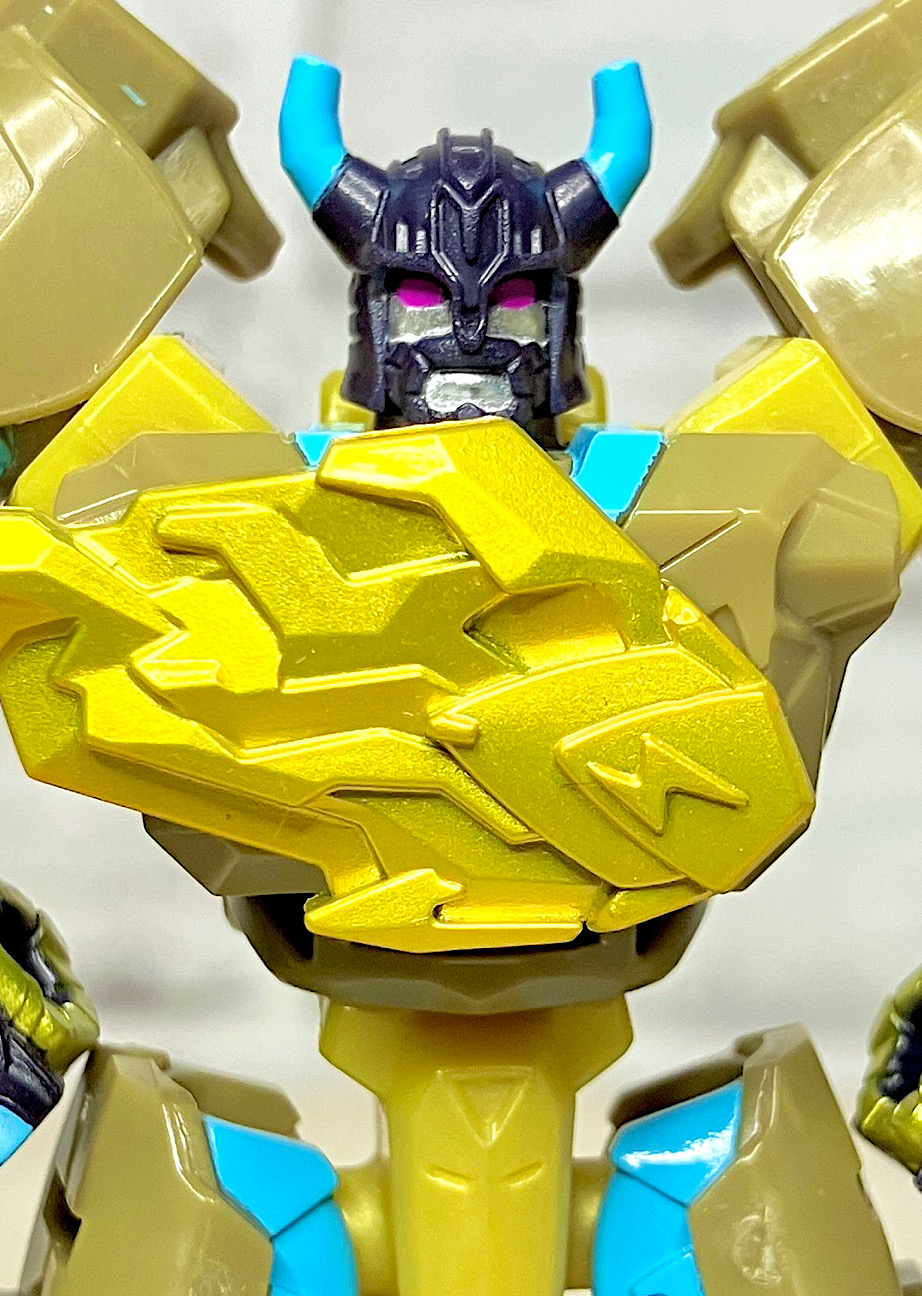【アップ】頭部はまるでヴァイキングのようにツノ付きヘルメット&ヒゲ顔。長いTFの歴史の中でもかなり個性的な顔だと思います。頭部の色分けが細かくなり、より造形がわかりやすくなりました。