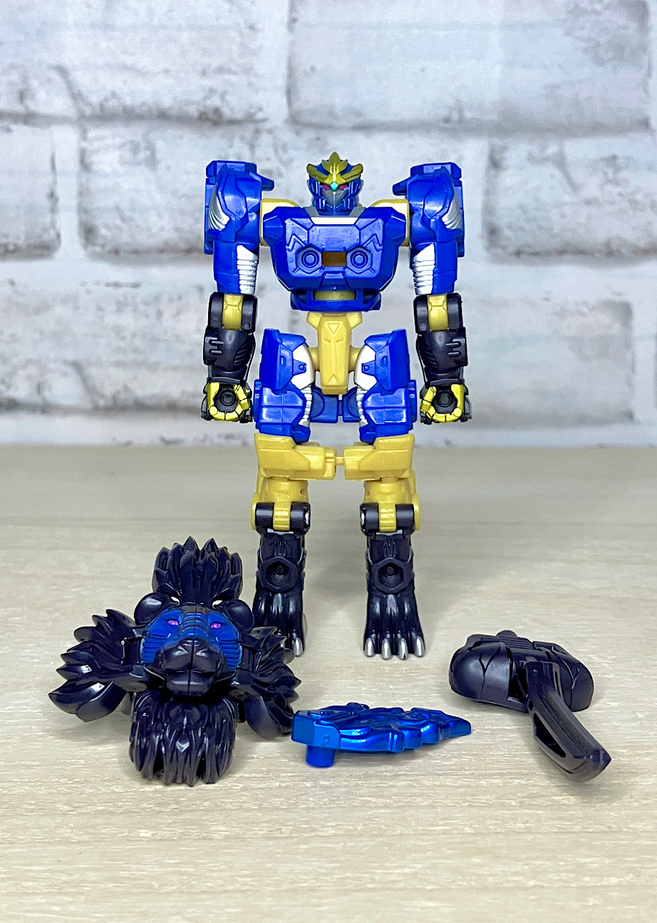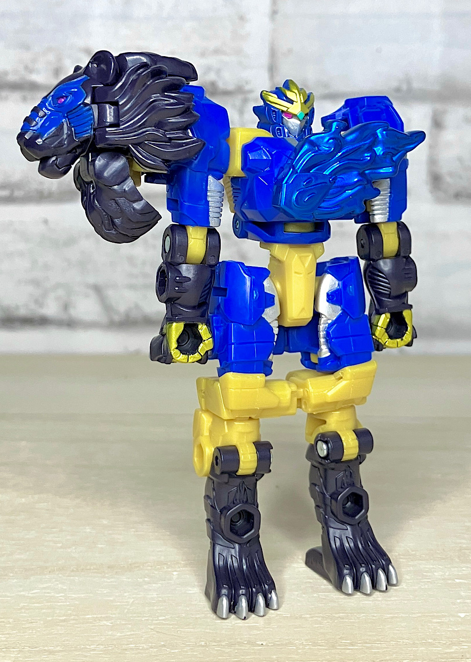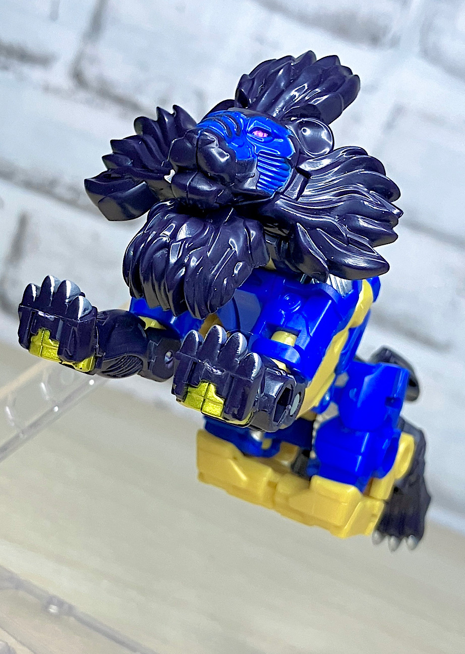 【ロボットモード】ライオン頭とエナジーを取り付けてロボットモード完成。カッコ悪くなるはずがないライオンモチーフ!ライオコンボイを彷彿とさせる肩ライオンにより完全に主人公的な雰囲気を漂わせております。