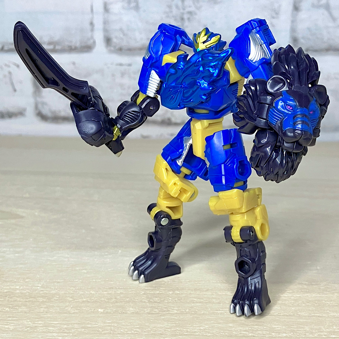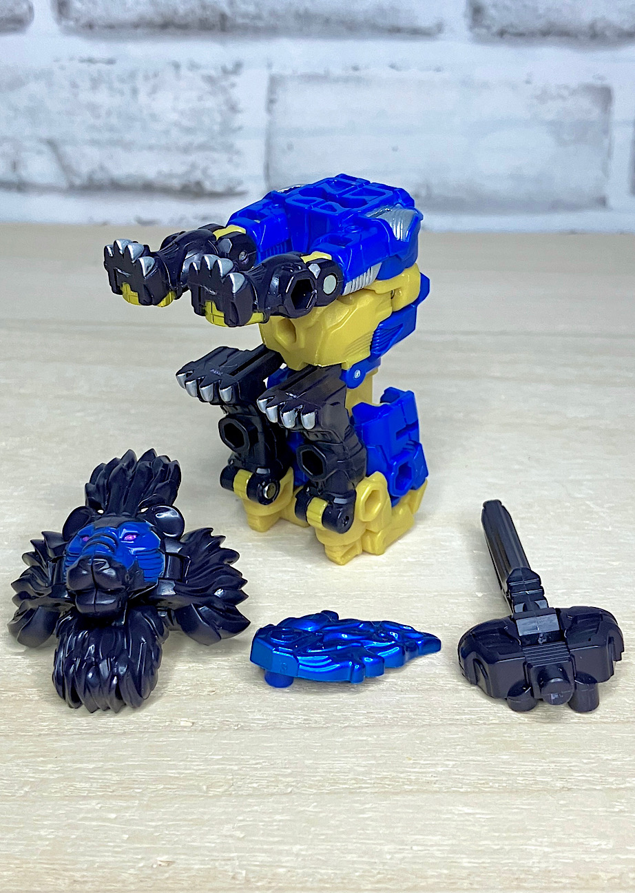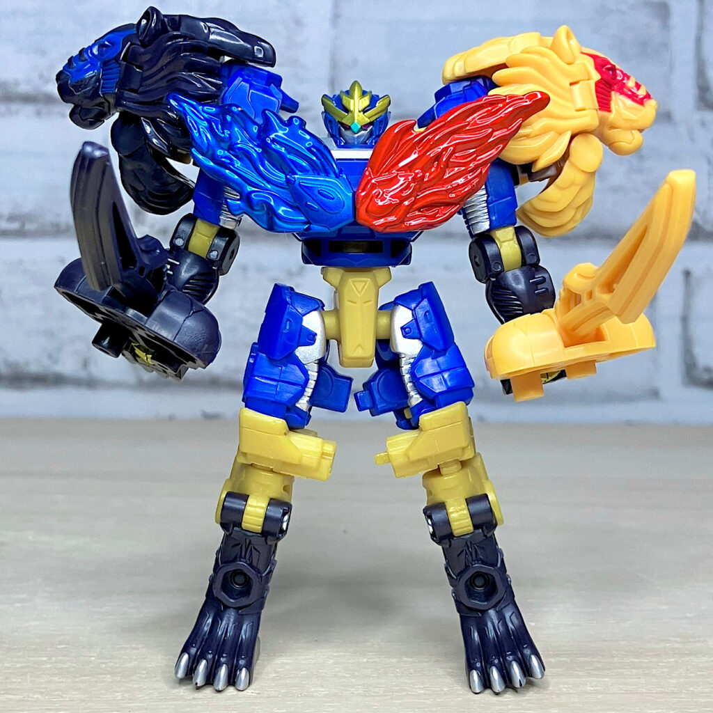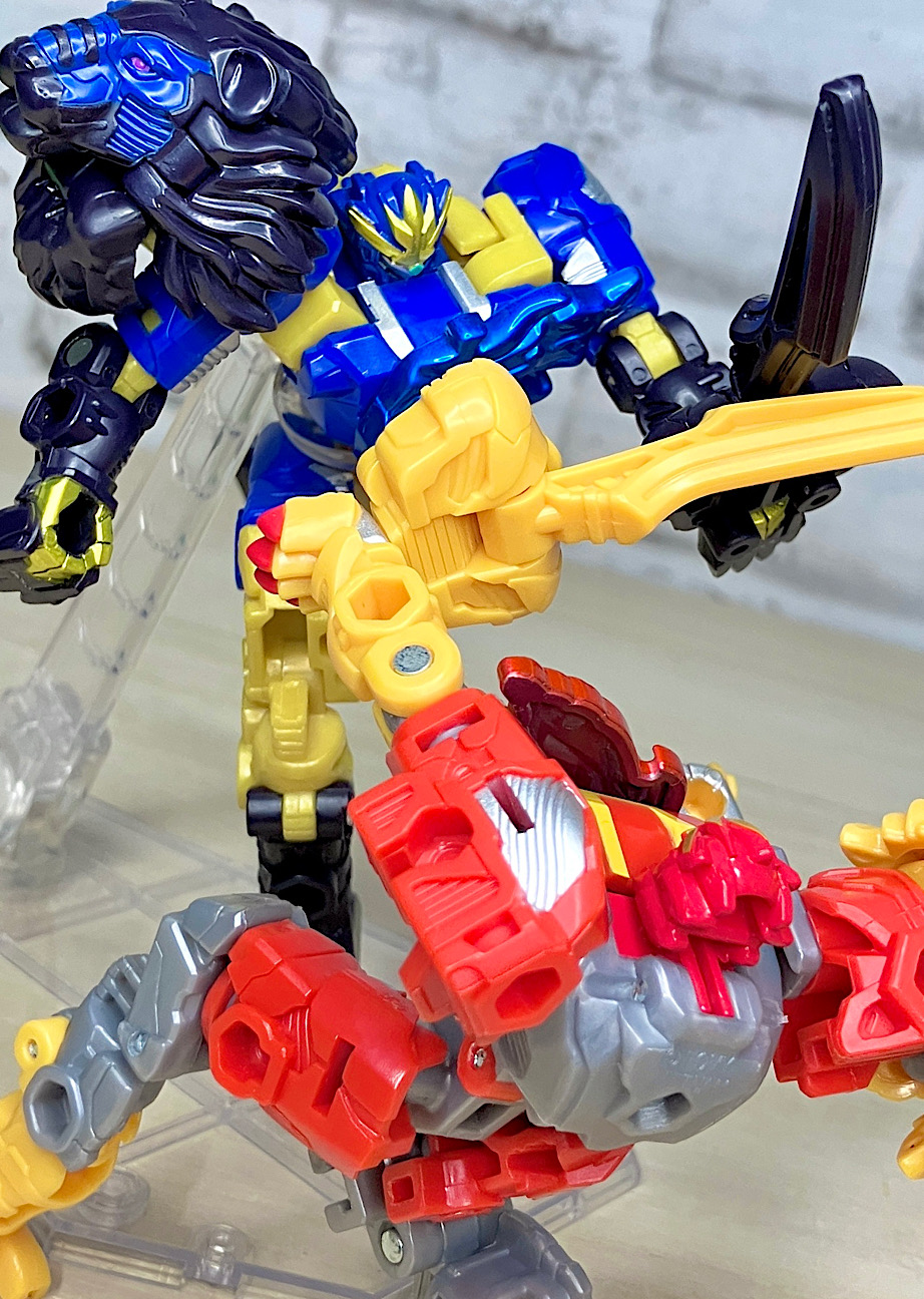 【ロボットモード】ライオン頭とエナジーを取り付けてロボットモード完成。カッコ悪くなるはずがないライオンモチーフ!ライオコンボイを彷彿とさせる肩ライオンにより完全に主人公的な雰囲気を漂わせております。