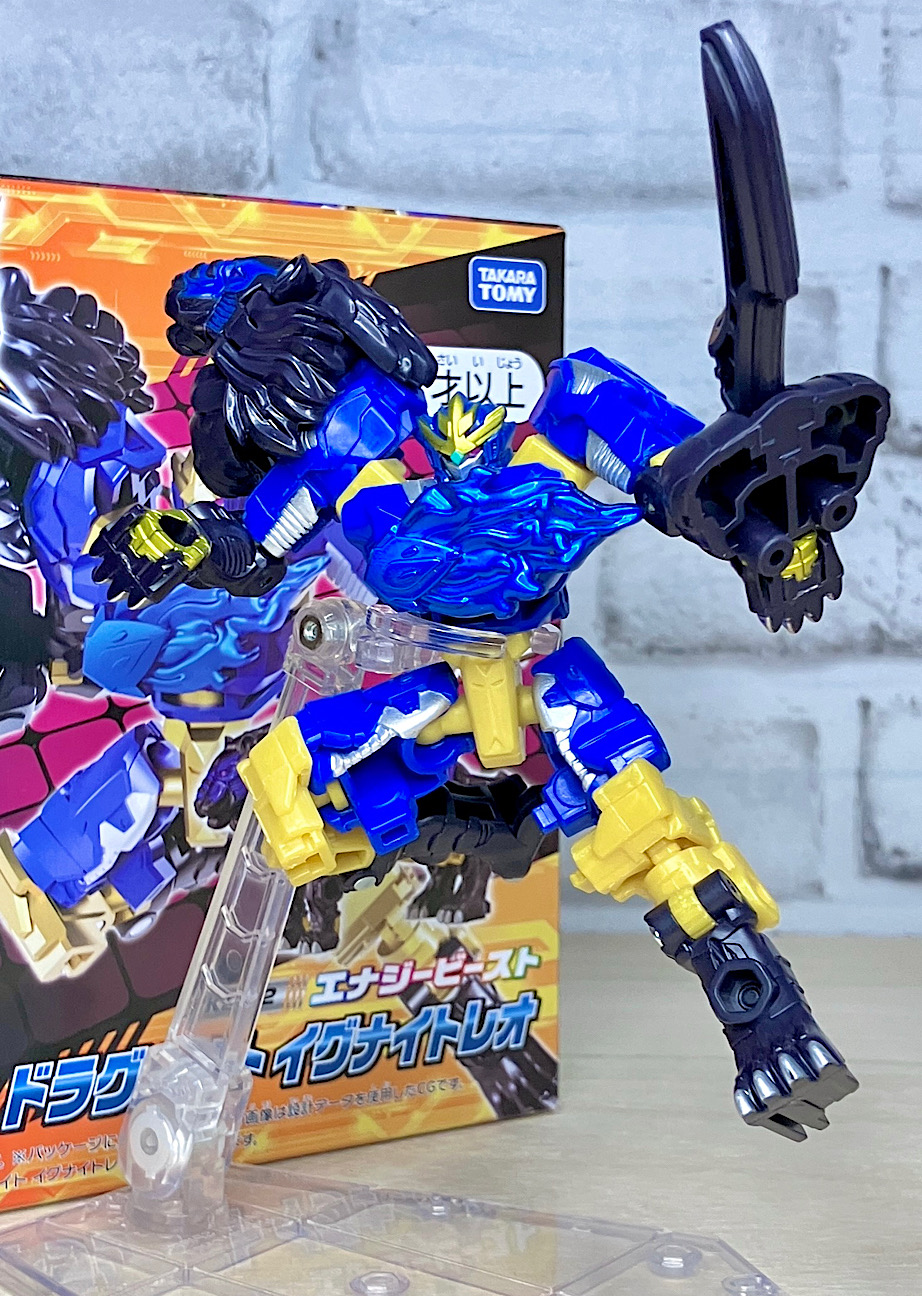 素体&アクセサリ。単純にイグナイトレオのリカラーで、構造的にエナジービーストは全てほぼ同じです。なおドラグナイトシリーズは、エナジーそれぞれのカラーにドラグナイトの黒が入り、2トーンぽくなっているのが特徴です。
