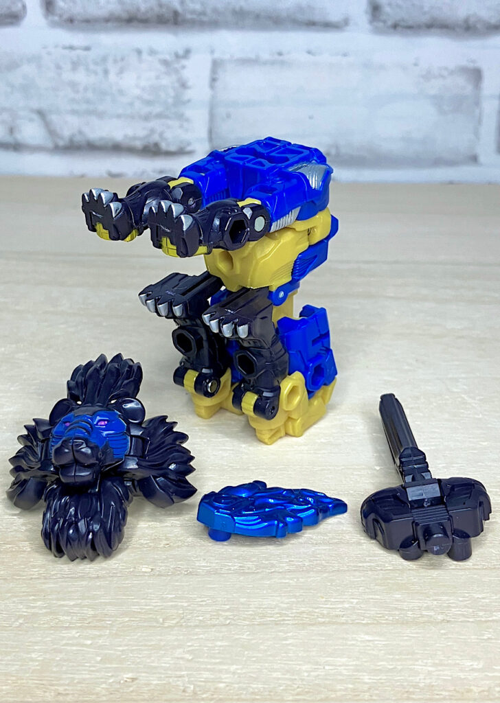 ライオン頭部は胸に付けるのもよく似合います。このようにワイルドキングはブロック玩具的な遊び方ができるわけです。