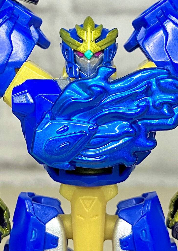 【アップ】タテガミモチーフと思われるヒロイックな頭部。金塗装の面積が増え、さらにカッコよくなりました。まるで勇者ロボみたいです。