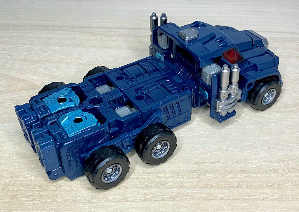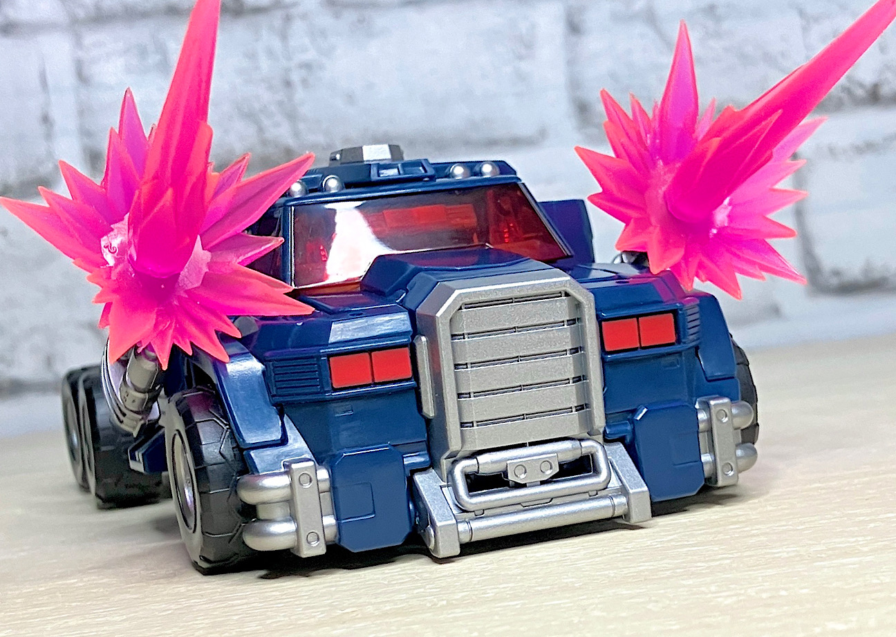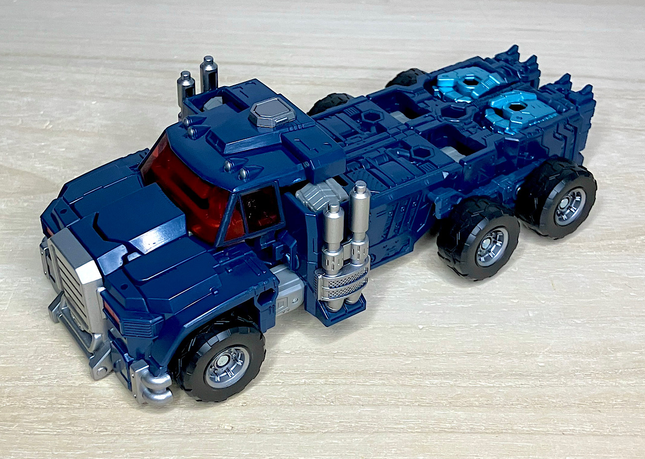 【ビークルモード】トラックキャブに変形。ビークルモードは純粋にアルマダオプティマスプライムのリカラーです。ズッシリとしたボトムヘビーのスタイリングが、慣れてくると最高にカッコいい!