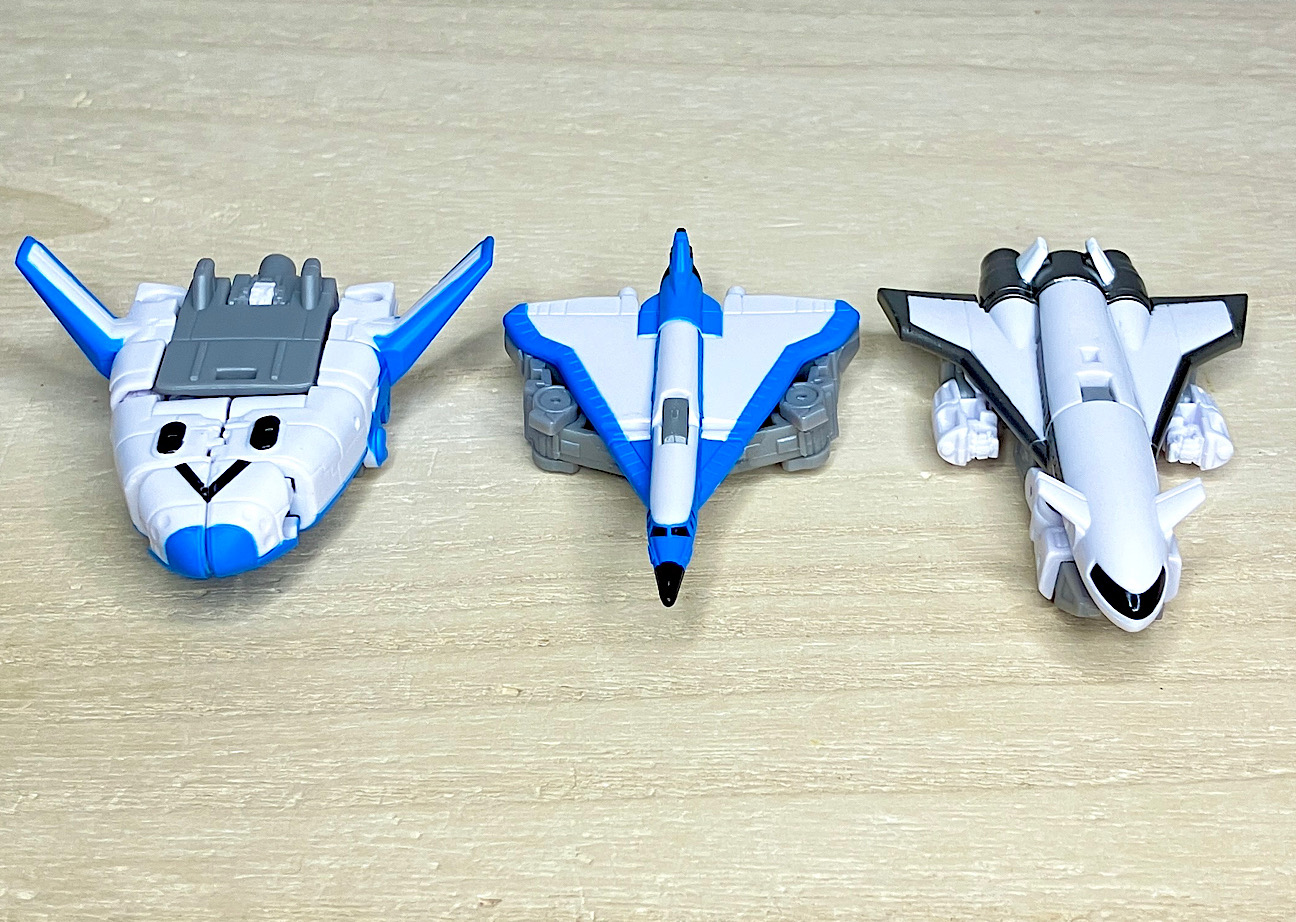 エアディフェンスミニコンチーム、集結!!カラーリングなど統一感がありつつもちゃんと個性を感じられるのがさすがTFです。