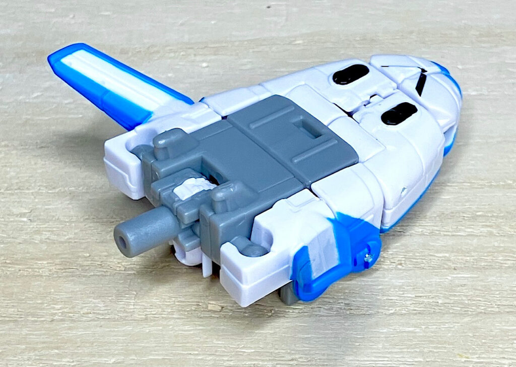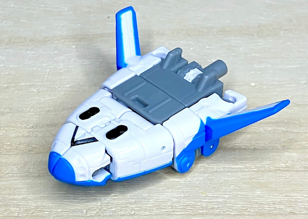 【ソナー(SONAR)】和名シャトラー。スターシャトルに変形。リーダーのランウェイに恩義を感じ、何でも言うことを聞くんだとか。ちょっとずんぐりしたスタイルがキュートで、さらにビークルモードがスマイルに見えるのもご愛敬。