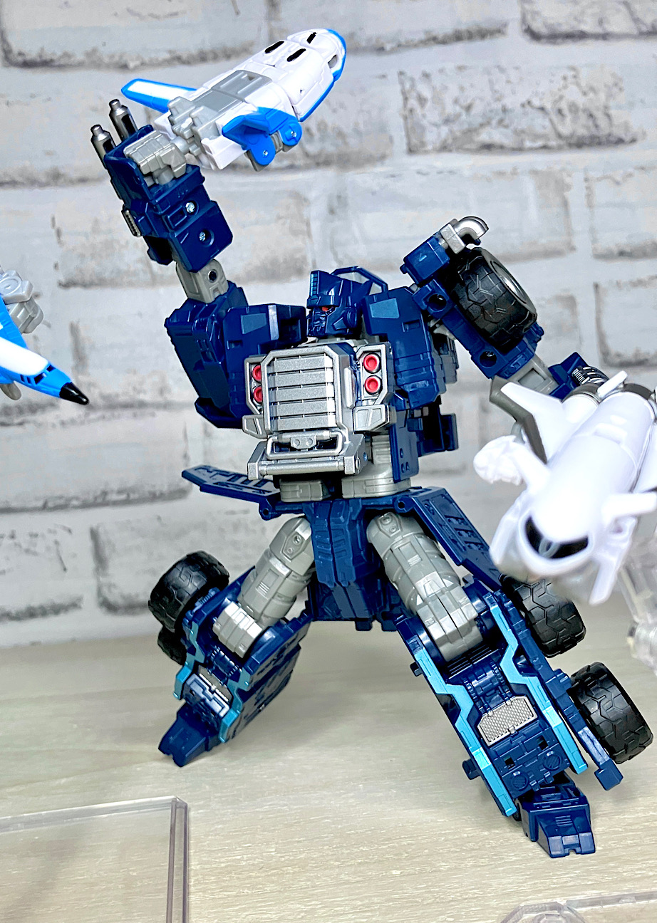 グォォォォン!!ミニコンといえど3機が合体するとそれなりの大きさとなり、アルマダネメシスプライムが持っても大ぶりなくらい。これはすばらしい。