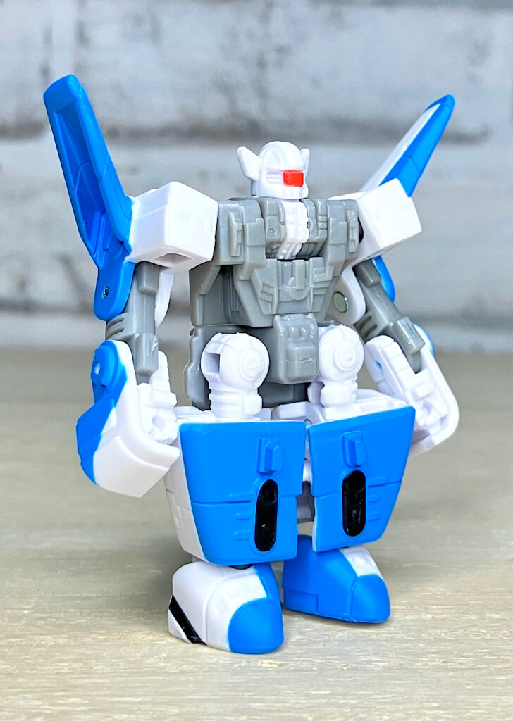 【ランウェイ(RUNWAY)】チーム一のおしゃべりで頭脳派のランウェイは、和名ジェッター。ソニッククルーザーに変形します。首こそ回らないものの、ヒジ・ヒザがあってこのサイズでは破格の可動部を誇ります。