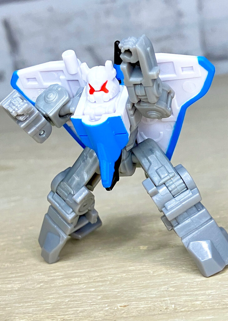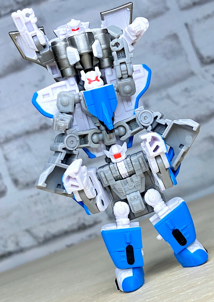 【ジェットストーム(JETSTORM)】和名マッハ。コンコルドに変形。ディセプティコンへの怒りを内に秘め、冷静を装っているんだとか。やはりよく動く良リメイクです。胸のパネルの変形が繊細で壊れやすいみたいなので、説明書をよく読んで正しい方向へスライドさせるように注意しましょう。