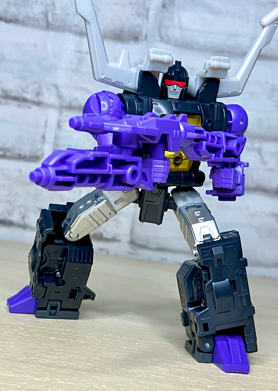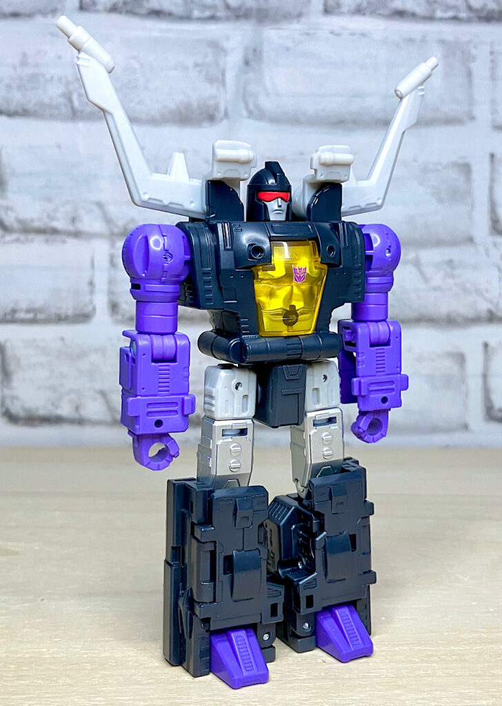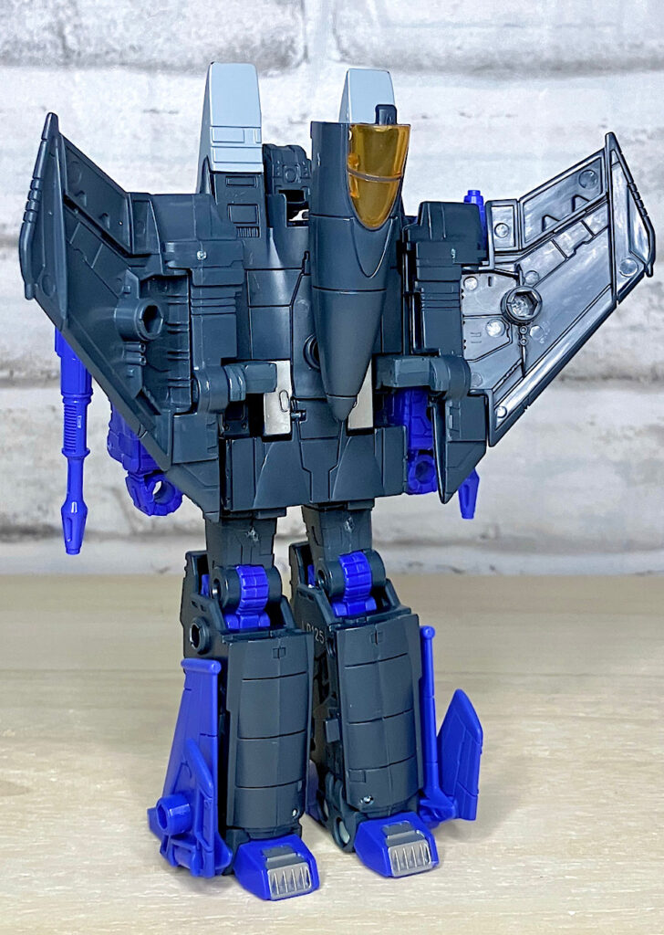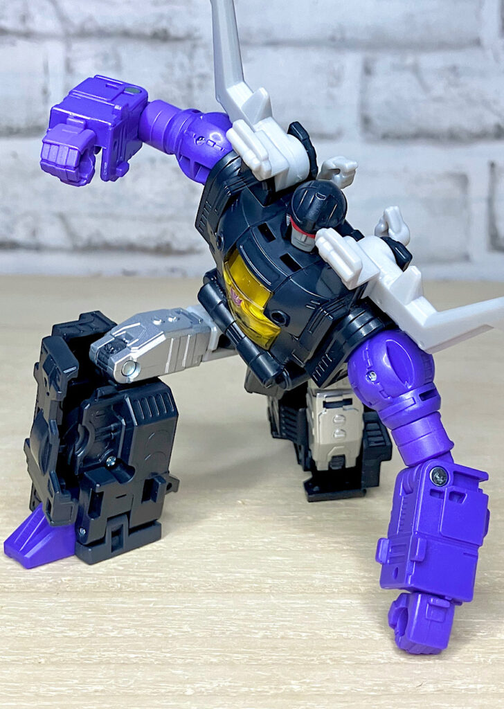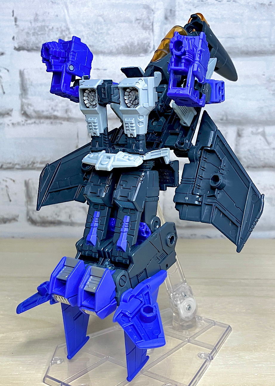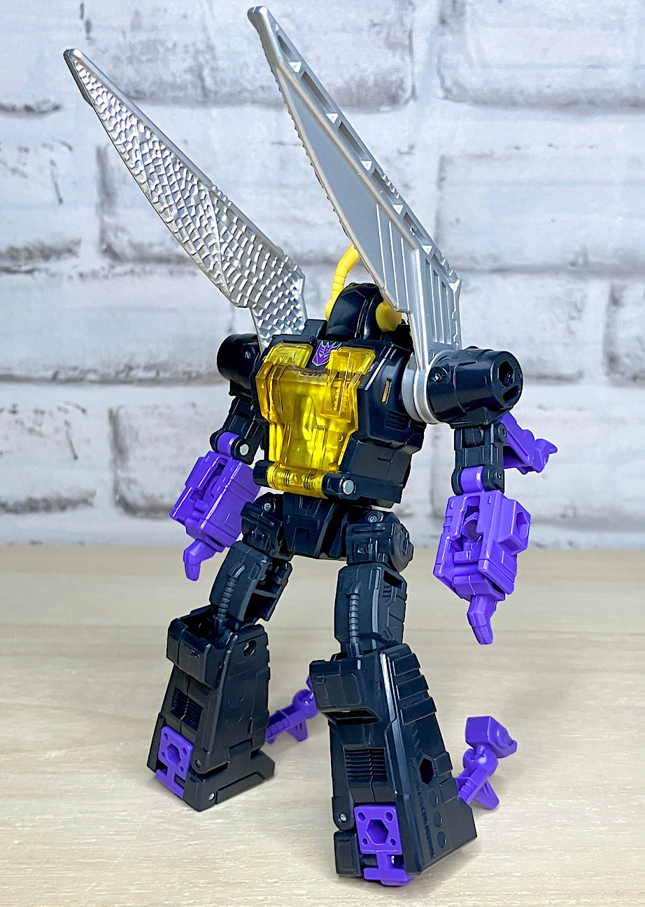 【ロボットモード】G1ビンテージトイに忠実にリメイクされたレガシー版のリカラー。アニメの雰囲気に合わせて羽が銀塗装になりました。もうどこからどう見ても紛うことなきキックバックな、素晴らしいスタイリングです。