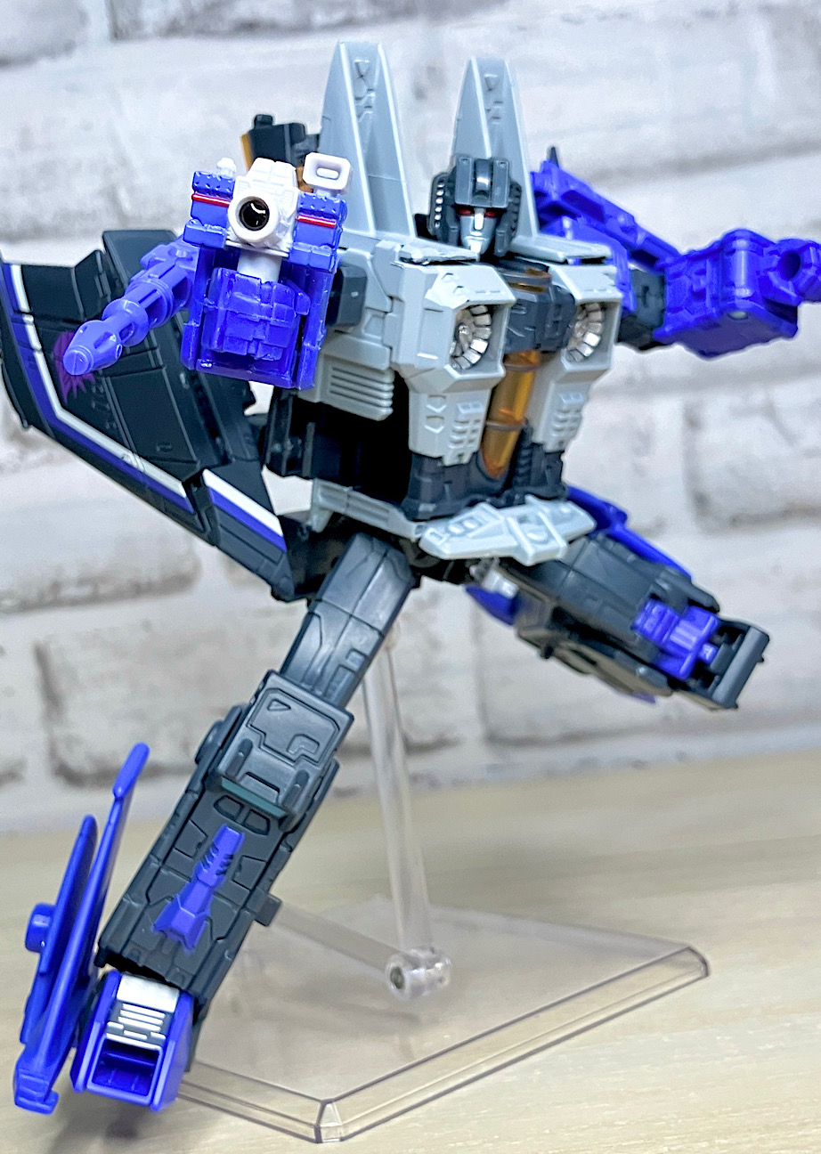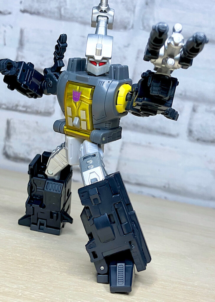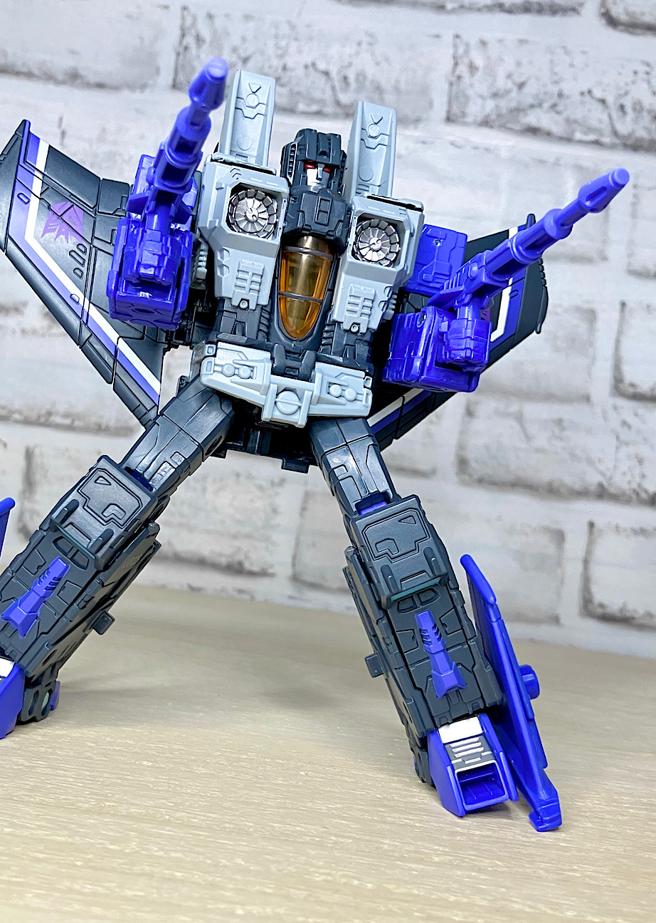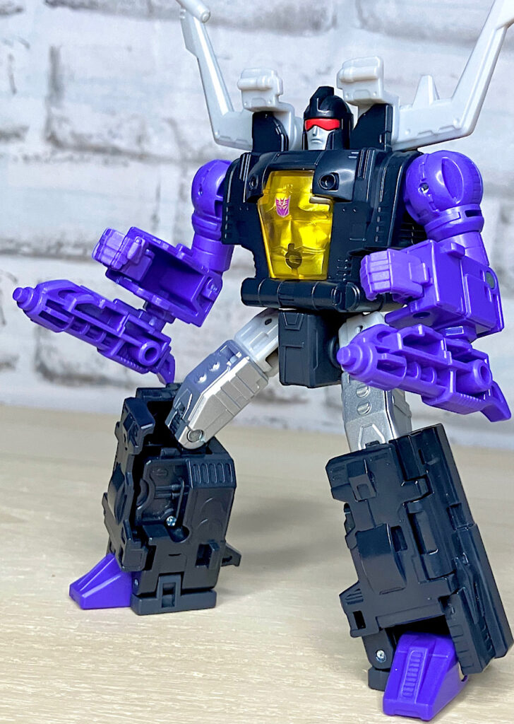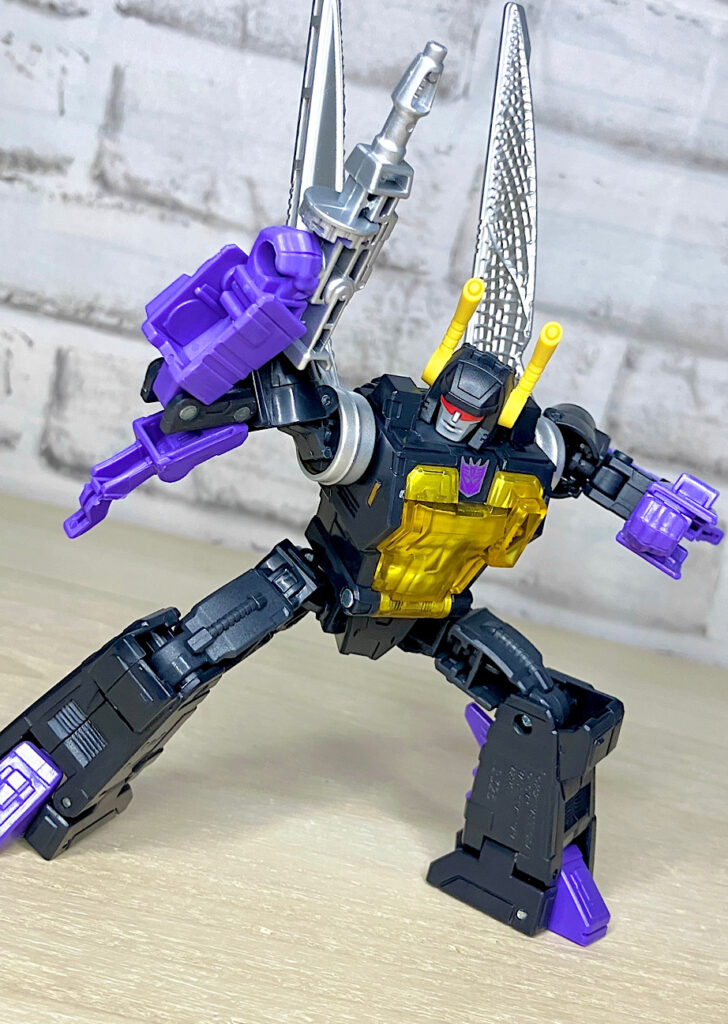【ロボットモード】G1ビンテージトイに忠実にリメイクされたレガシー版のリカラー。アニメの雰囲気に合わせて羽が銀塗装になりました。もうどこからどう見ても紛うことなきキックバックな、素晴らしいスタイリングです。