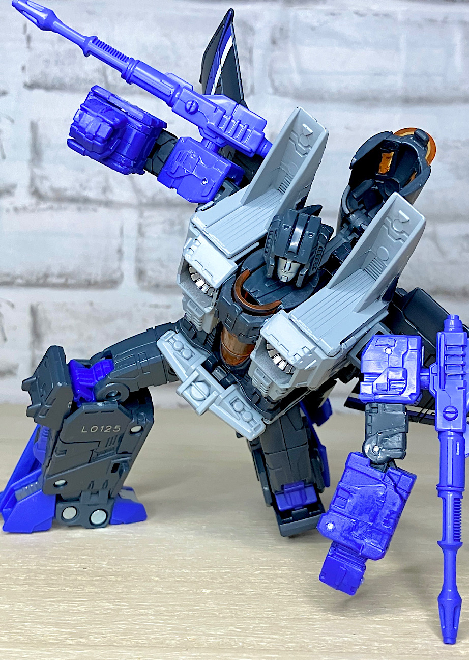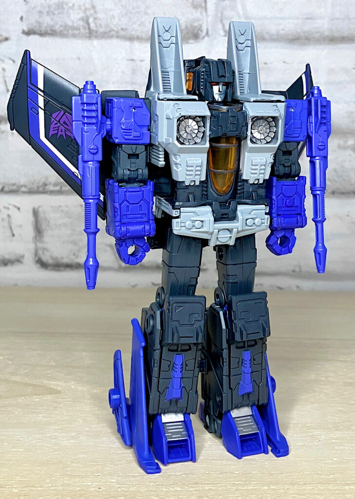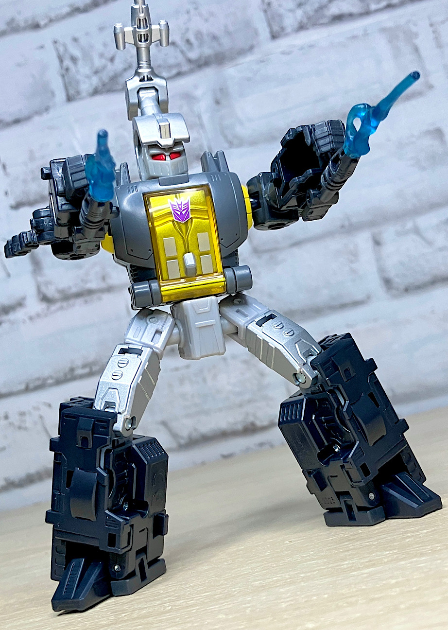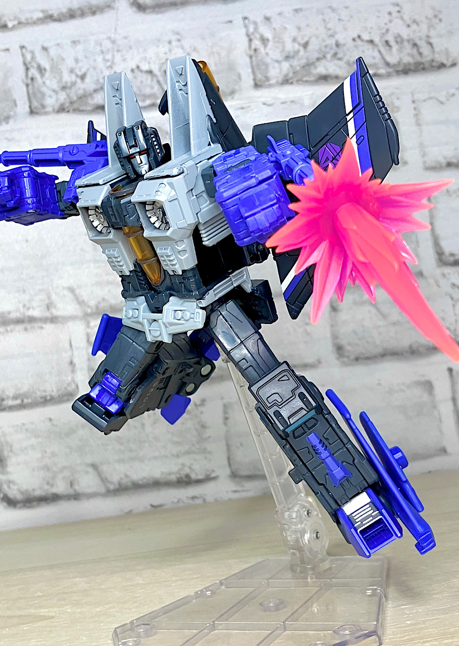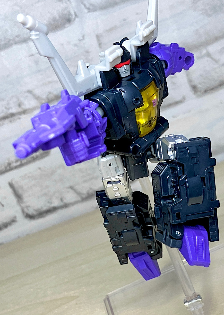 【ロボットモード】G1ビンテージトイに忠実にリメイクされたレガシー版のリカラー。アニメの雰囲気に合わせて羽が銀塗装になりました。もうどこからどう見ても紛うことなきキックバックな、素晴らしいスタイリングです。