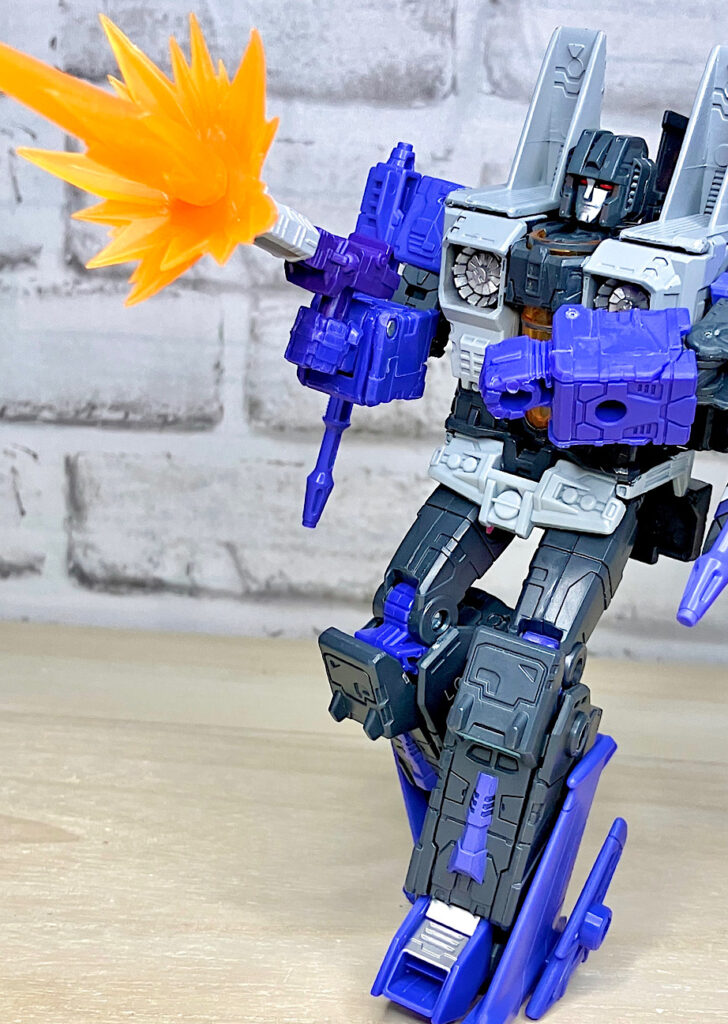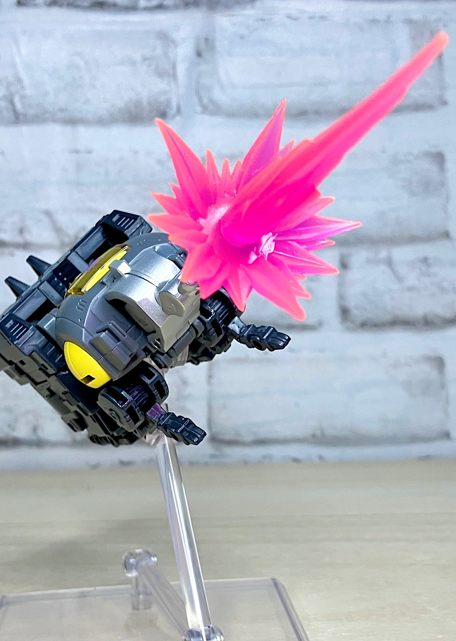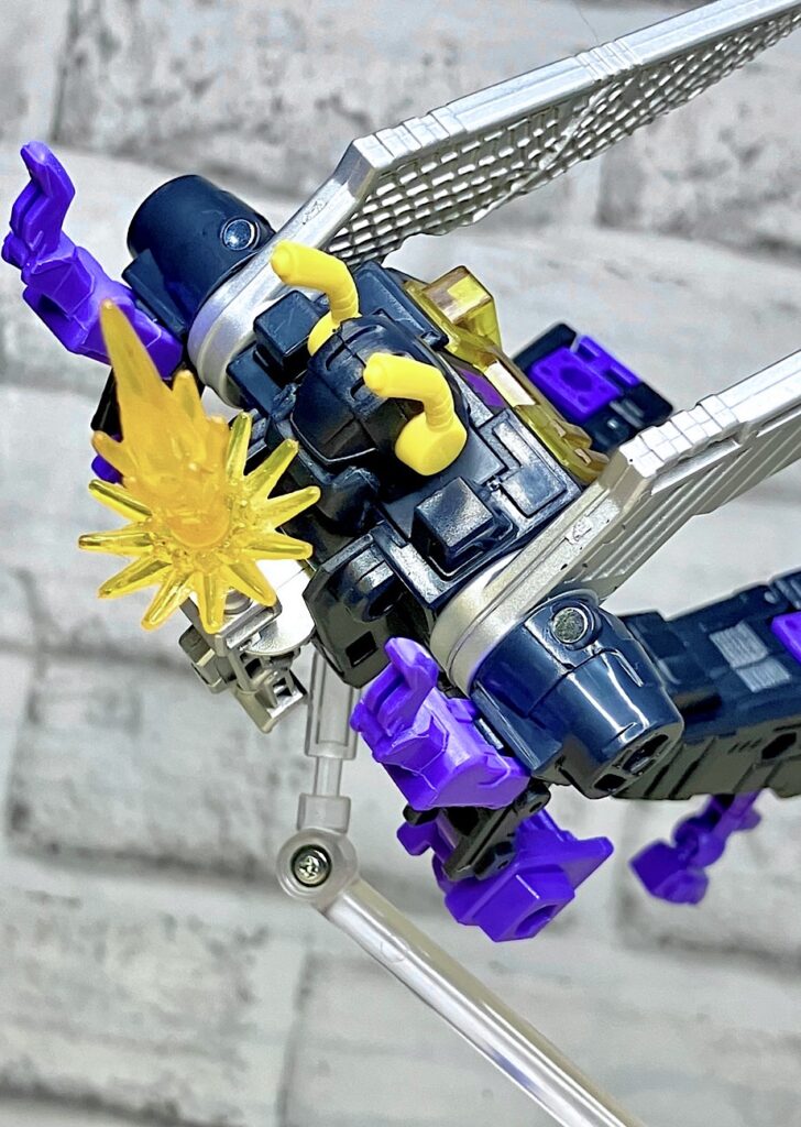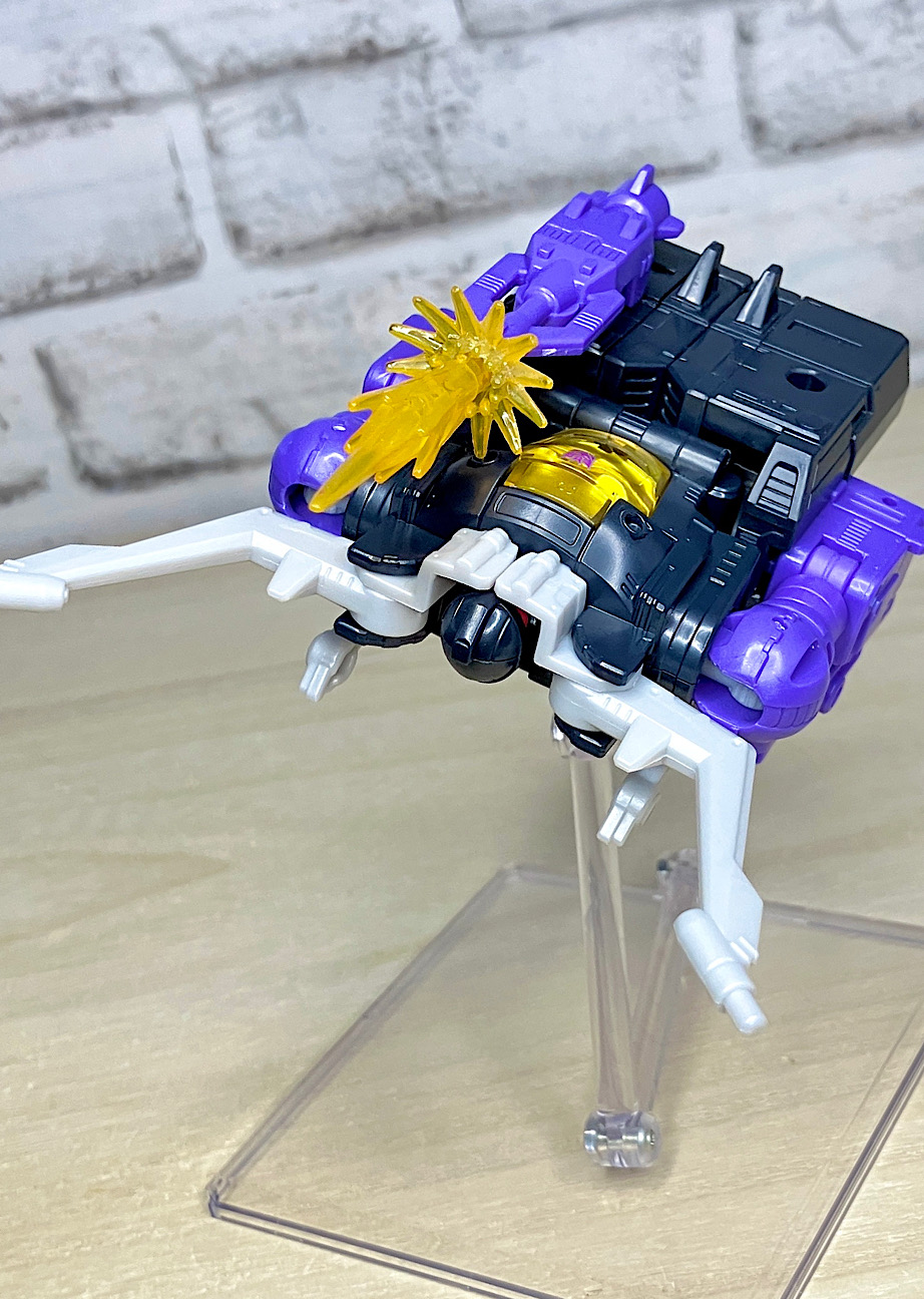 オルトモードメガトロンとショックウェーブは手に持たせて劇中再現。特にメガトロン銃はOPで毎回スカイワープが撃ってたのでよく似合います。別売りのエフェクトに対応しています。