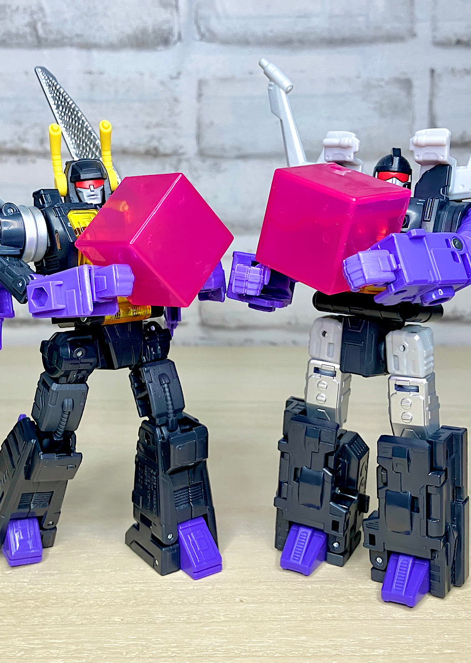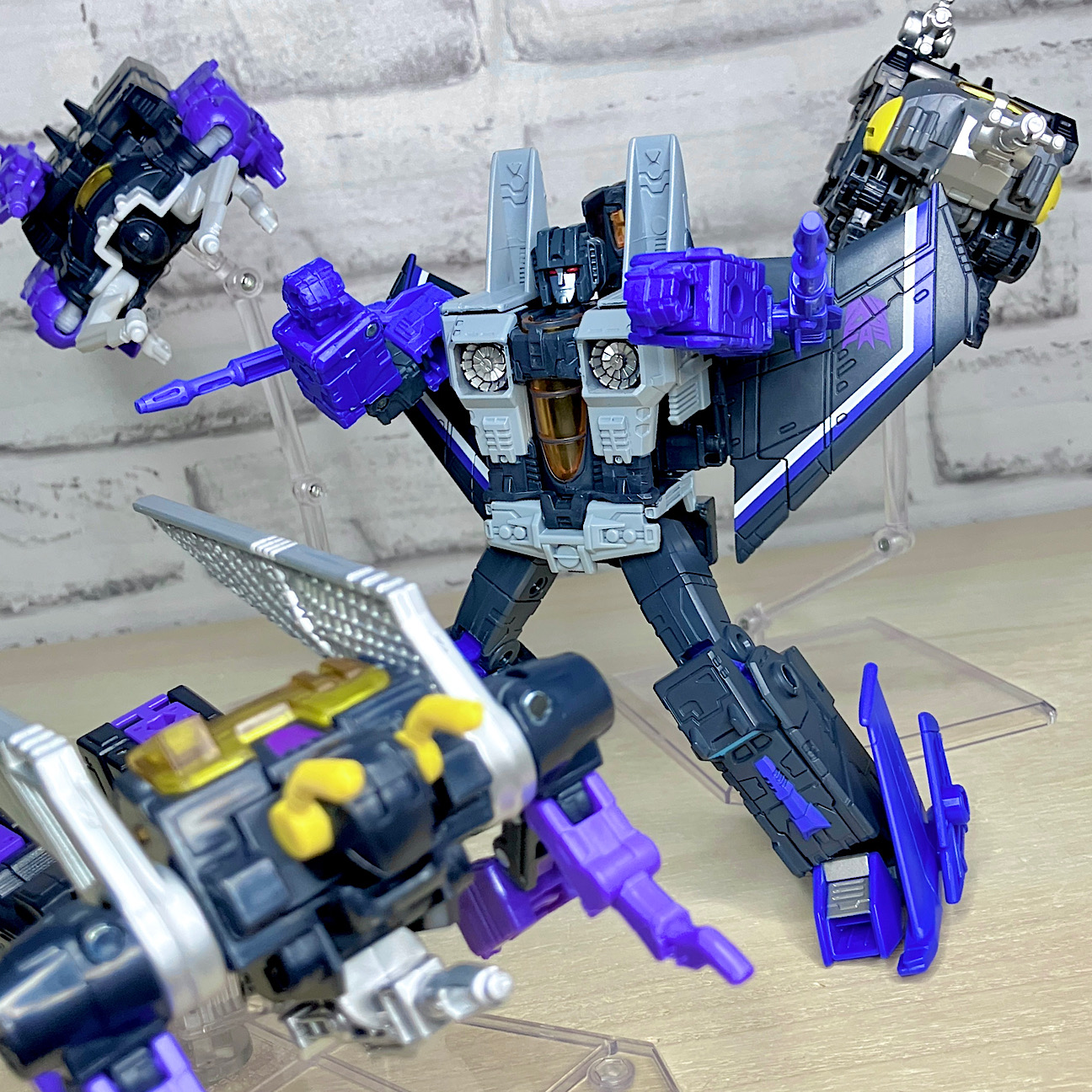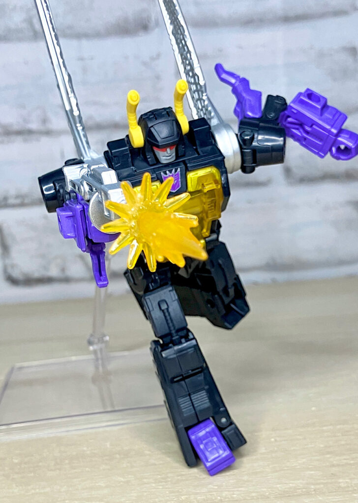 オルトモードメガトロンとショックウェーブは手に持たせて劇中再現。特にメガトロン銃はOPで毎回スカイワープが撃ってたのでよく似合います。別売りのエフェクトに対応しています。