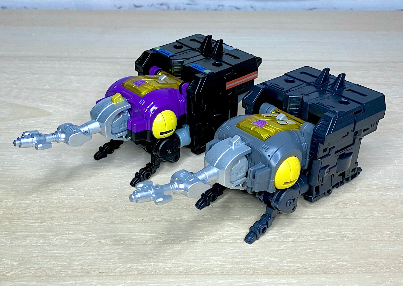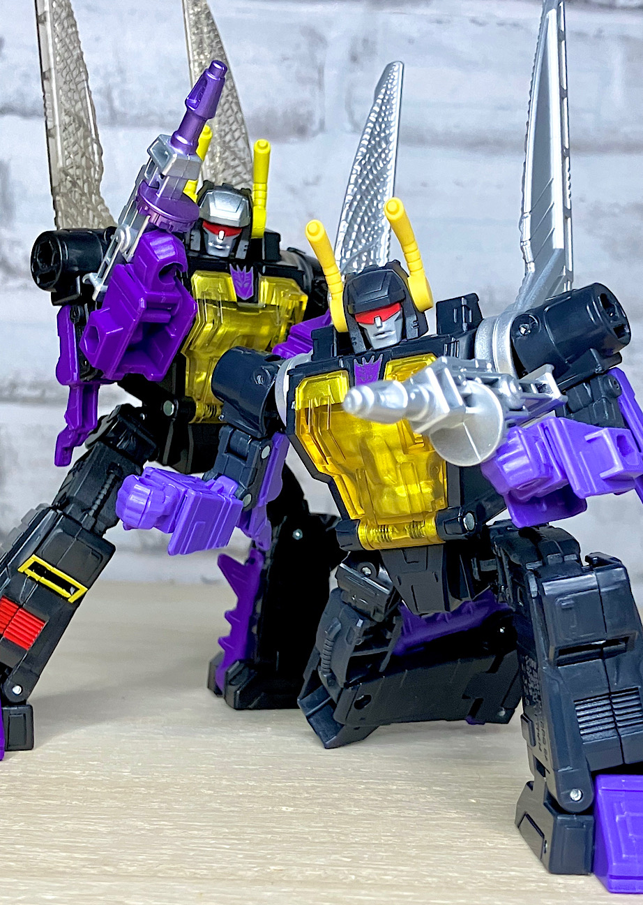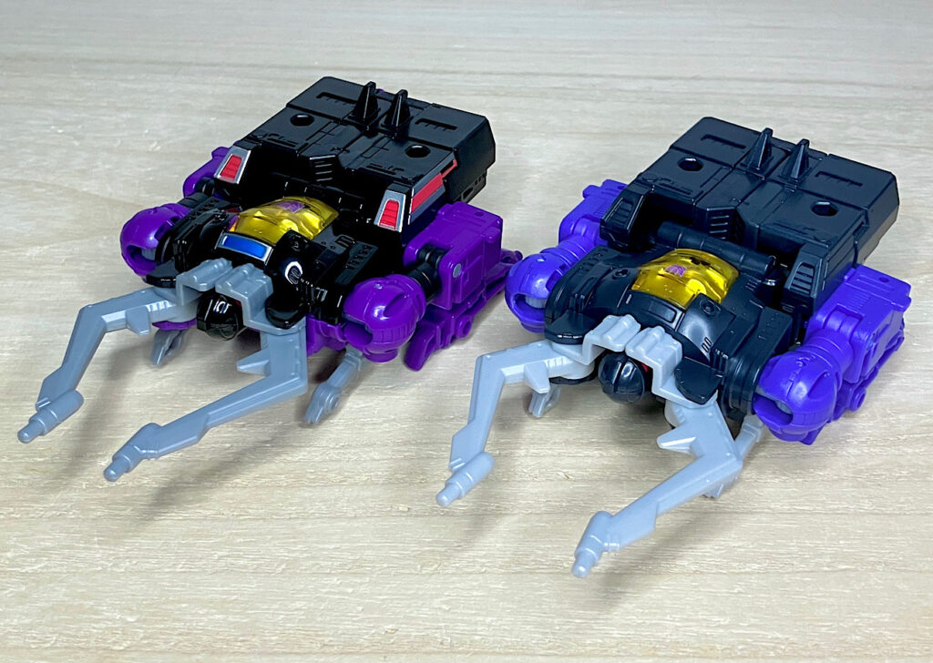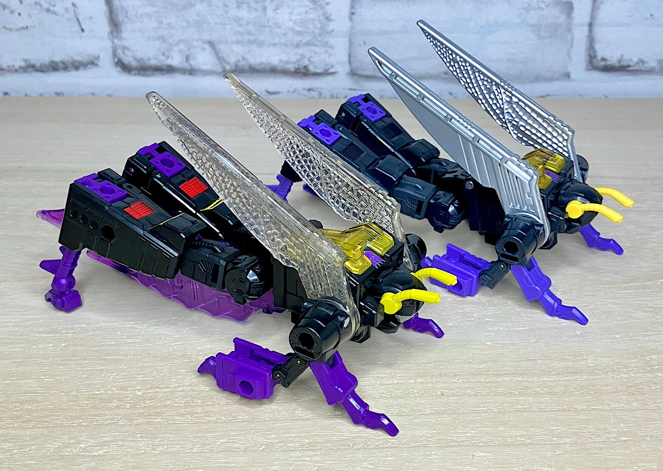 レガシー版と比較。羽がクリアから塗装に、紫色が青系になったのが大きいですね。これはどちらもお好みでという感じ。