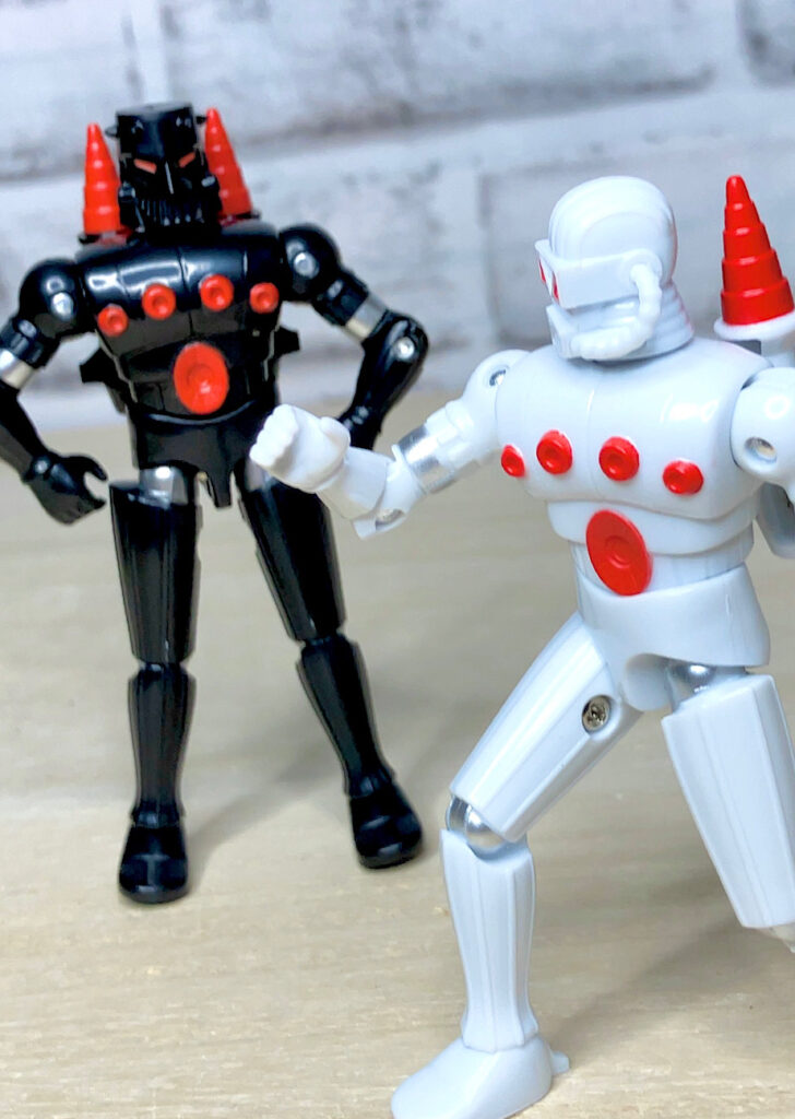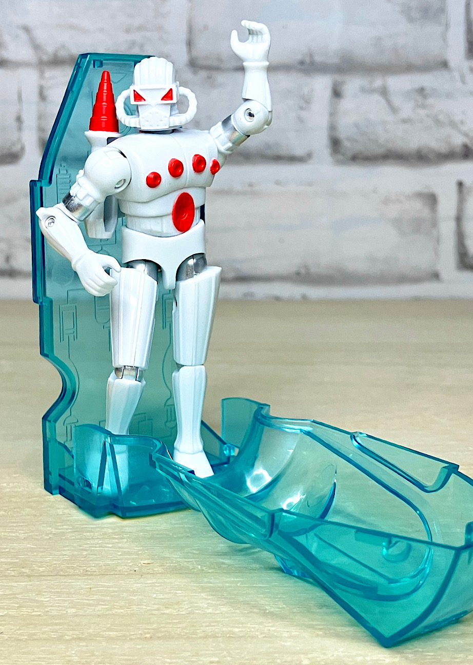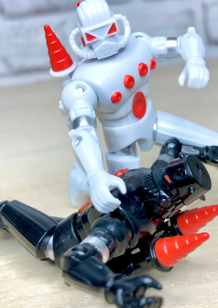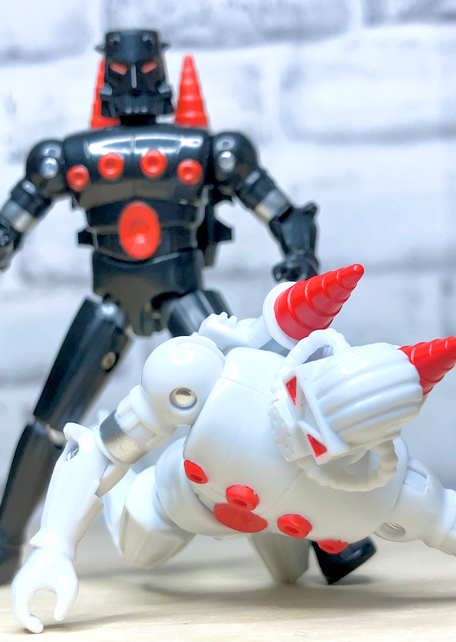 そしてそもそもフォースコマンダー及びバロンカーザは、ミクロマンの海外展開に合わせて一緒に輸出された「鋼鉄ジーグ」(75年のロボットアニメ)の流用アイテムだったりします。マグネットを使った、ブロック要素を持つ多関節フィギュアとしてマイクロノーツのフラグシップアイテムに選ばれたんですね。同じ商品の流用で両軍のリーダーを作っちゃうなんてずいぶんと大胆な商売をしたもんですw