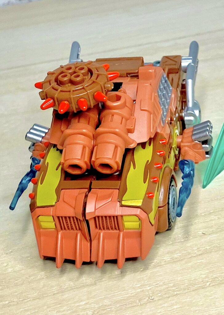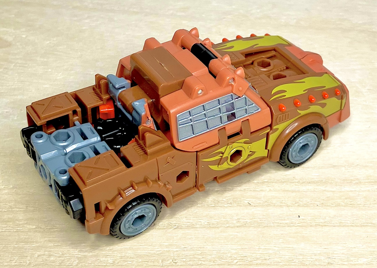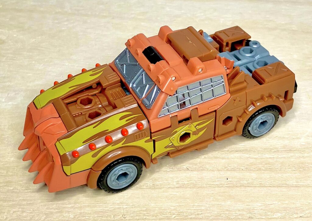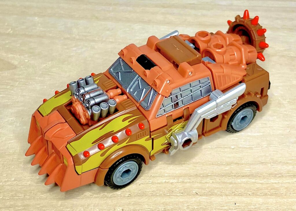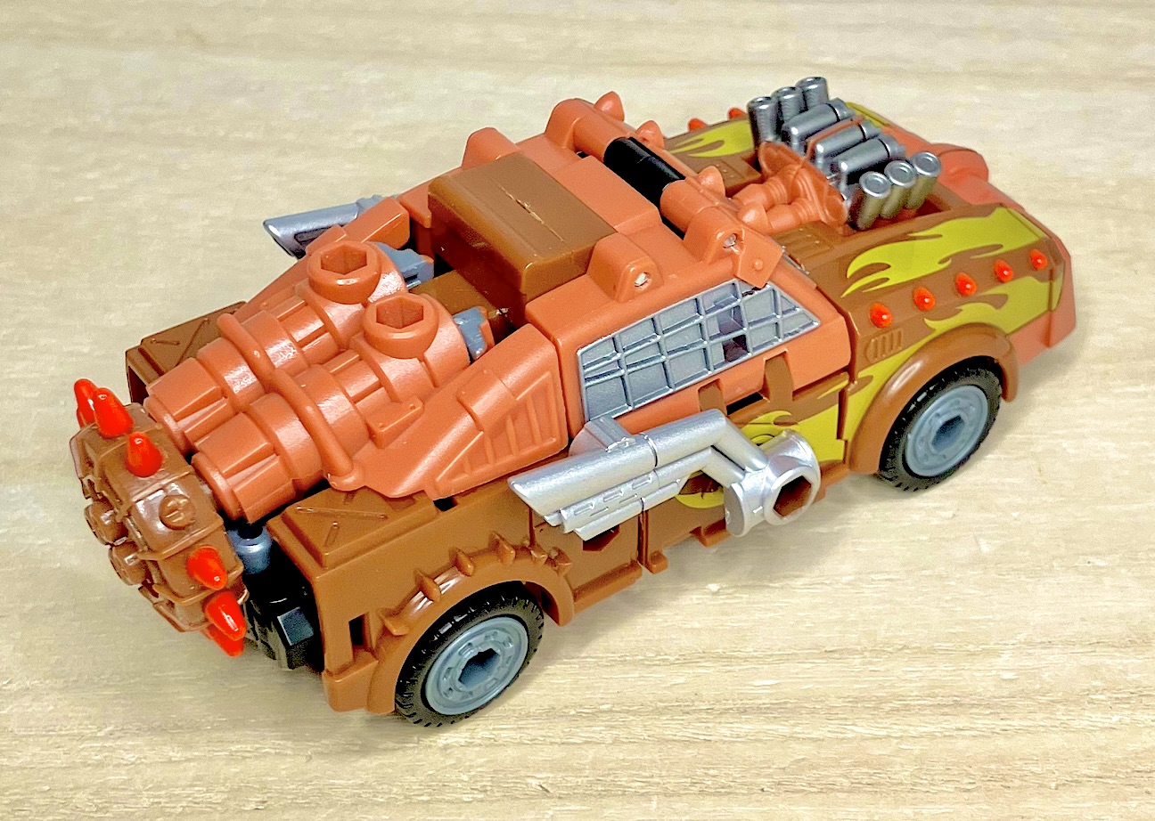 【ビークルモード】世紀末系マッスルカーに変形。これは何もパーツを付けない素体状態で、ピックアップトラック風ですが…