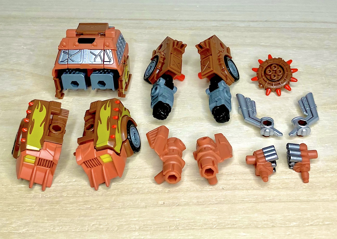さてジャンキオンたちはバラバラ組み替えなブロック玩具の要素を持ったウェポナイザーの系譜。ボディも含めここまで分割が可能です。