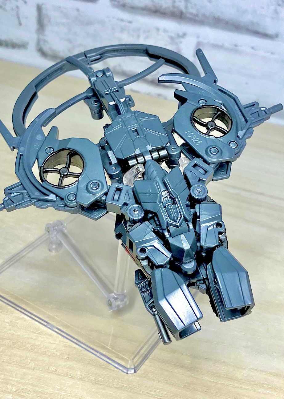 左右の小さなローター部はウイング風に横に広げますが、こうして後ろにまとめて高速風にしてもカッコいい。