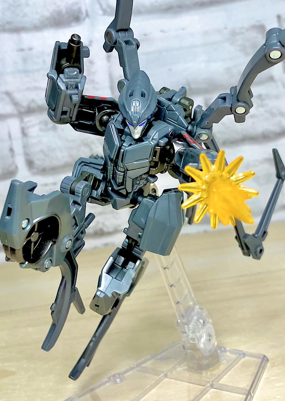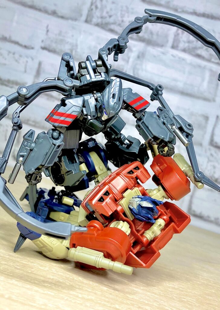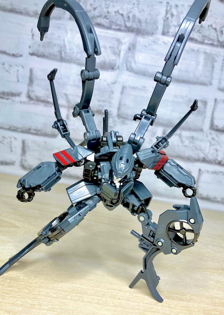主翼の前脚(と言っていいのかわかりませんがw)がちょっと苦しいですが、もともとのビークルモードの形状がどことなくクモっぽいデザインなのもあって雰囲気は出ますよ