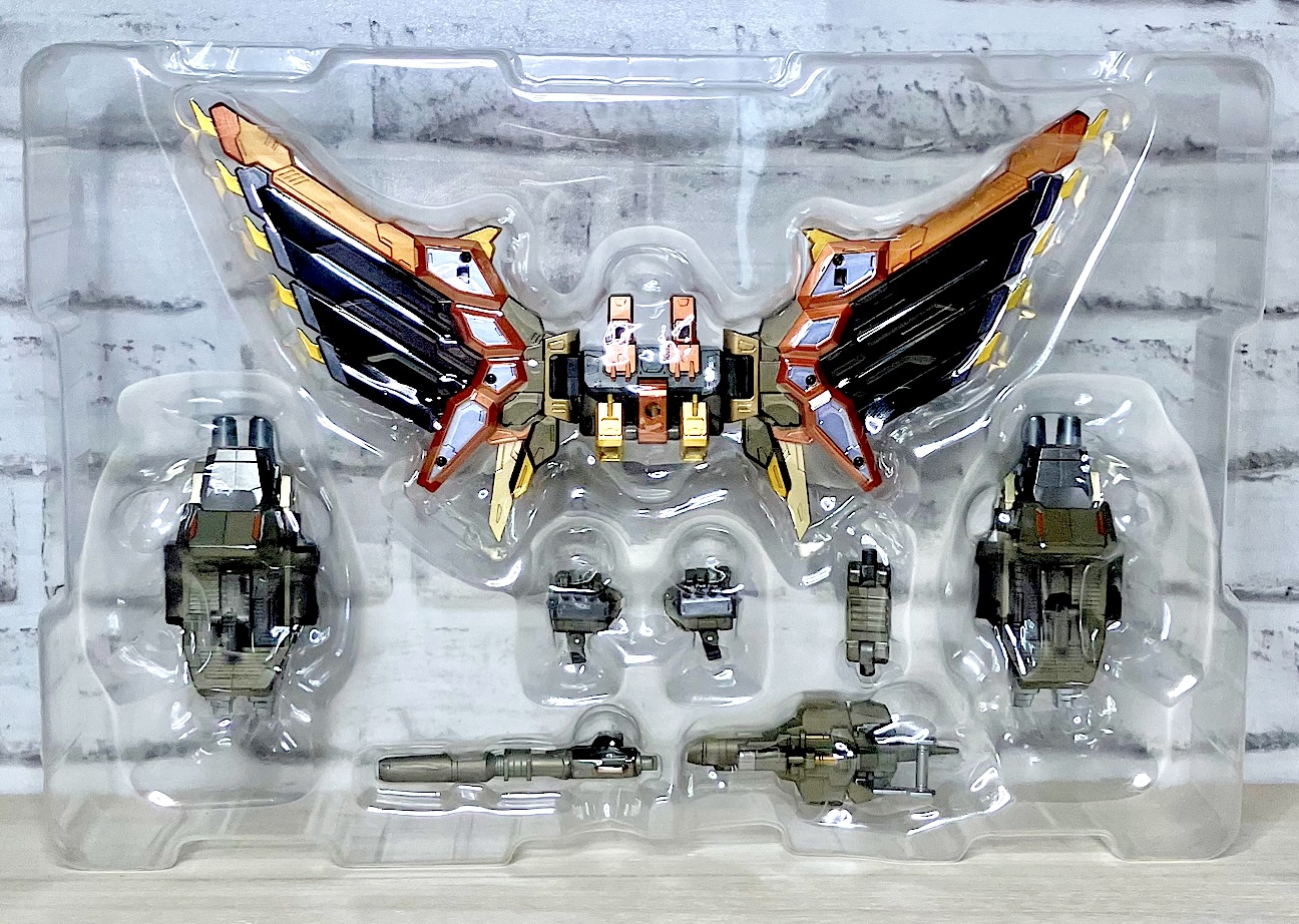 そして合体用パーツを装備させたフル装備状態がこちら。合体用手と剣を背中に付けるのですが、ゾイドのブレードライガーみたいでめちゃくちゃカッコいいです!