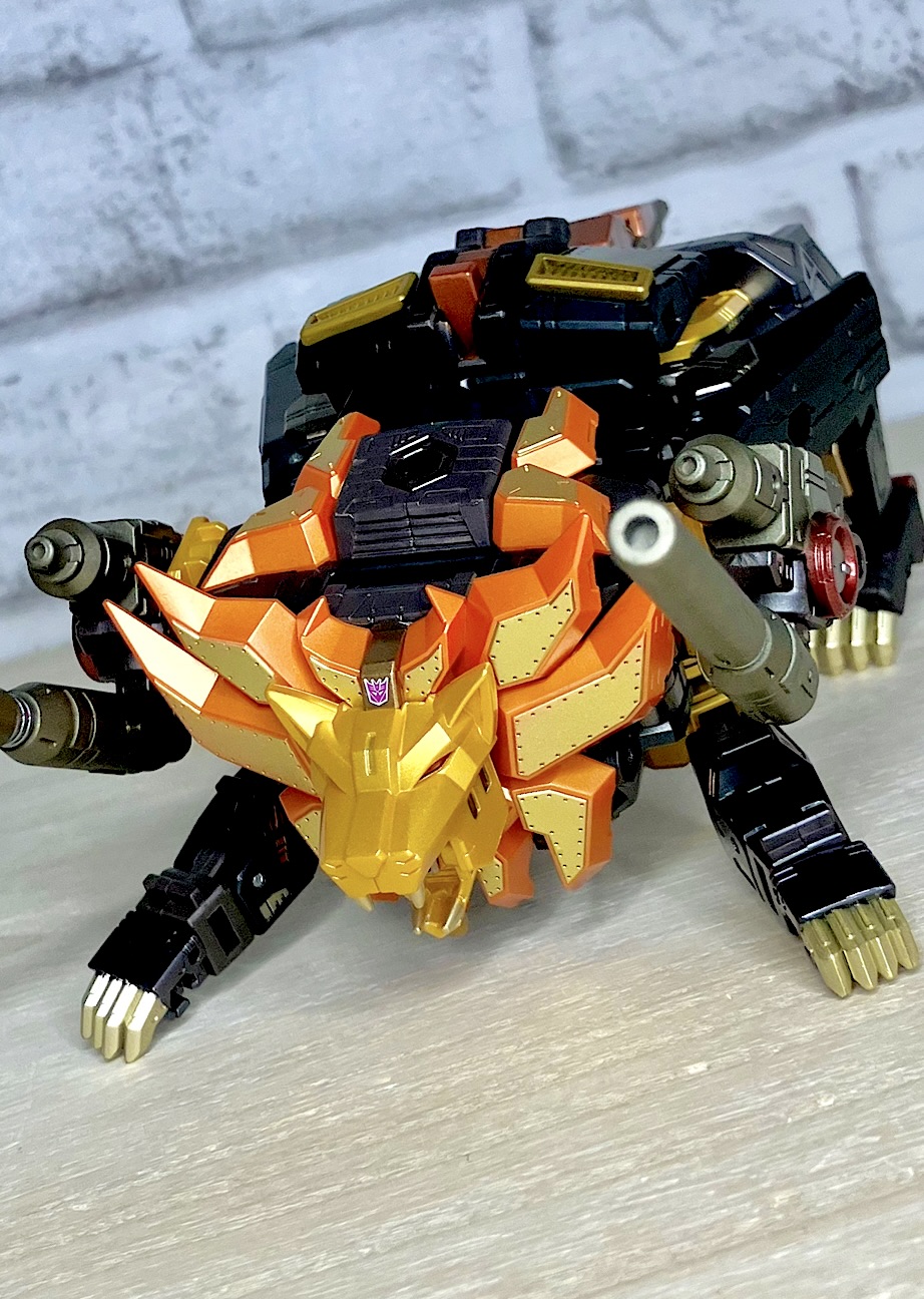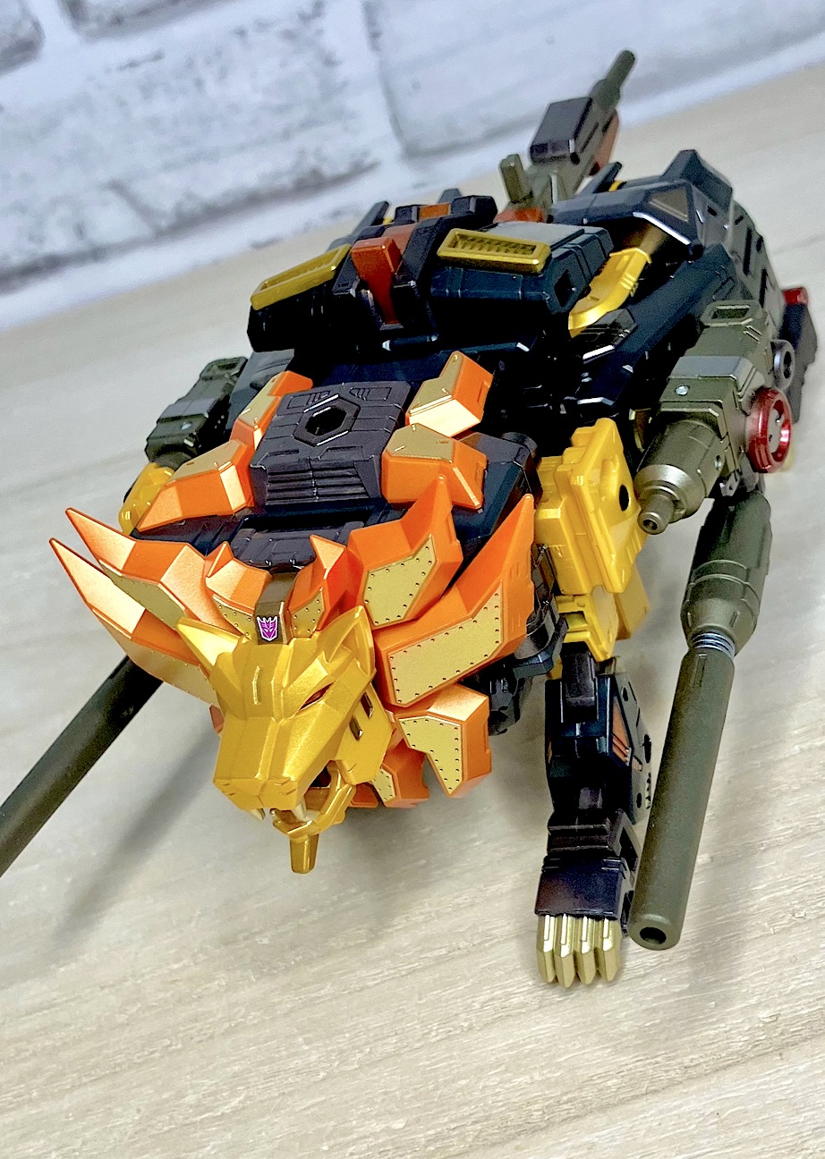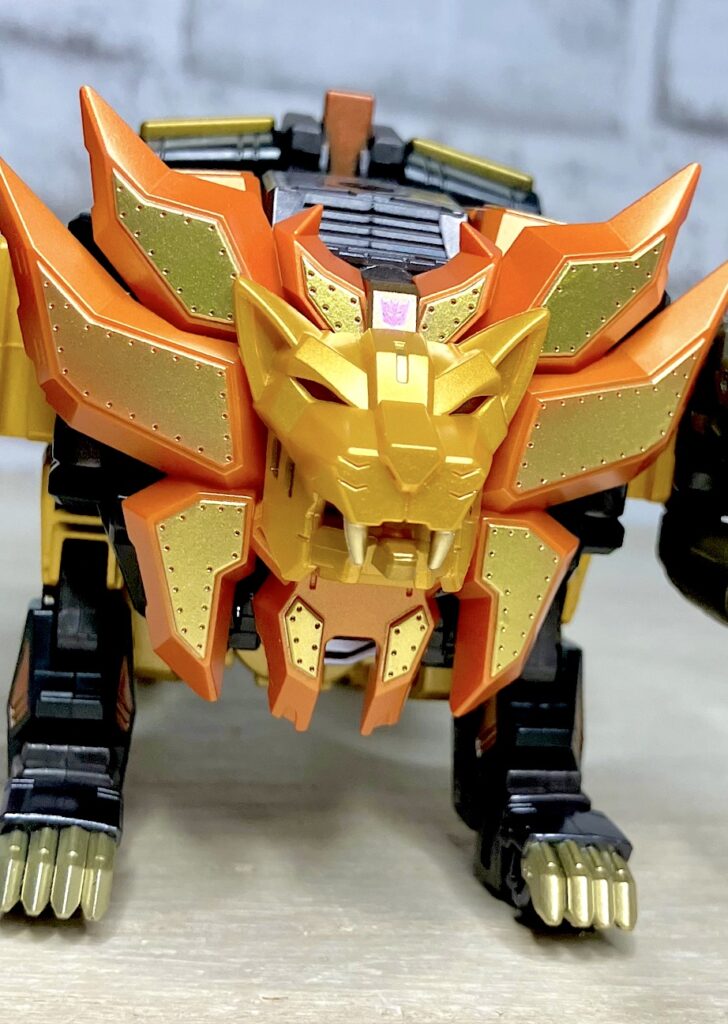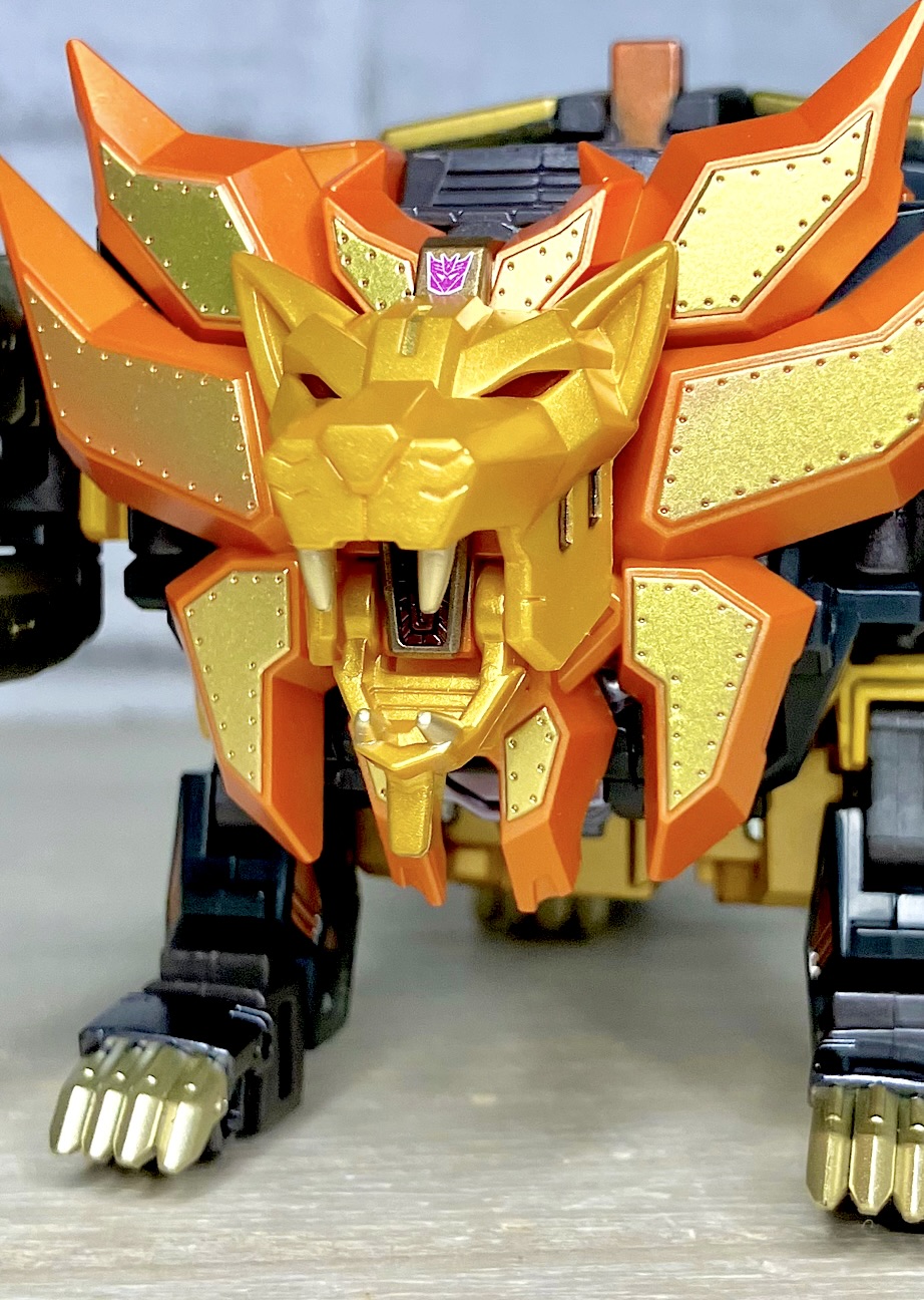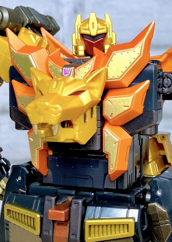 【アップ】胸ライオンというTF随一のヒロイックデザインで、なおかつ暖色系なのにディセプティコンというTFならではのひねくれ具合が面白いレーザークロー。頭部はとっても小顔で、エッジを効かせたアレンジは男子のロマンですね。