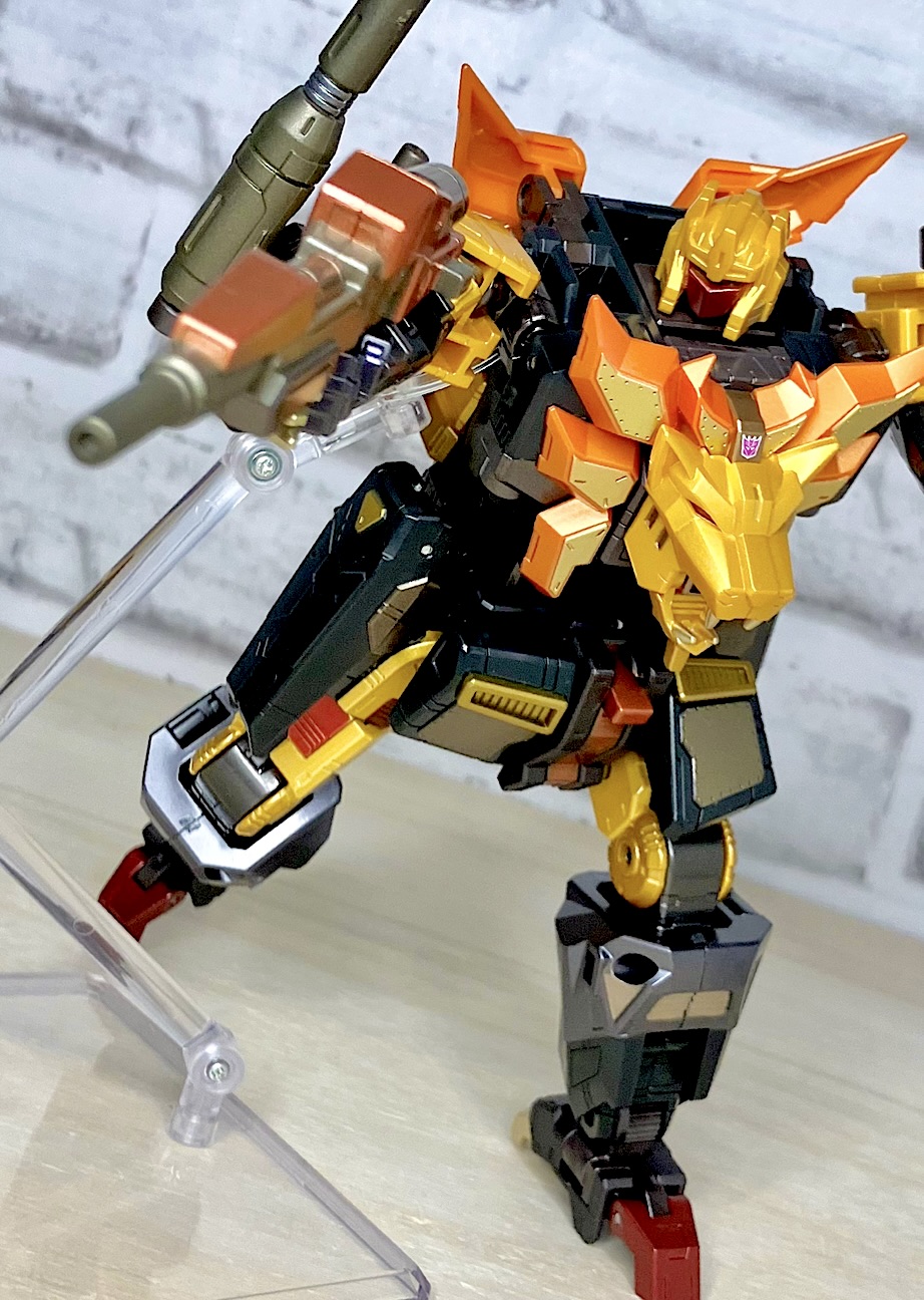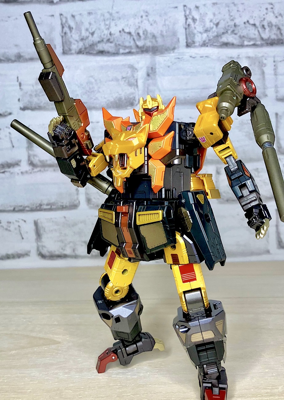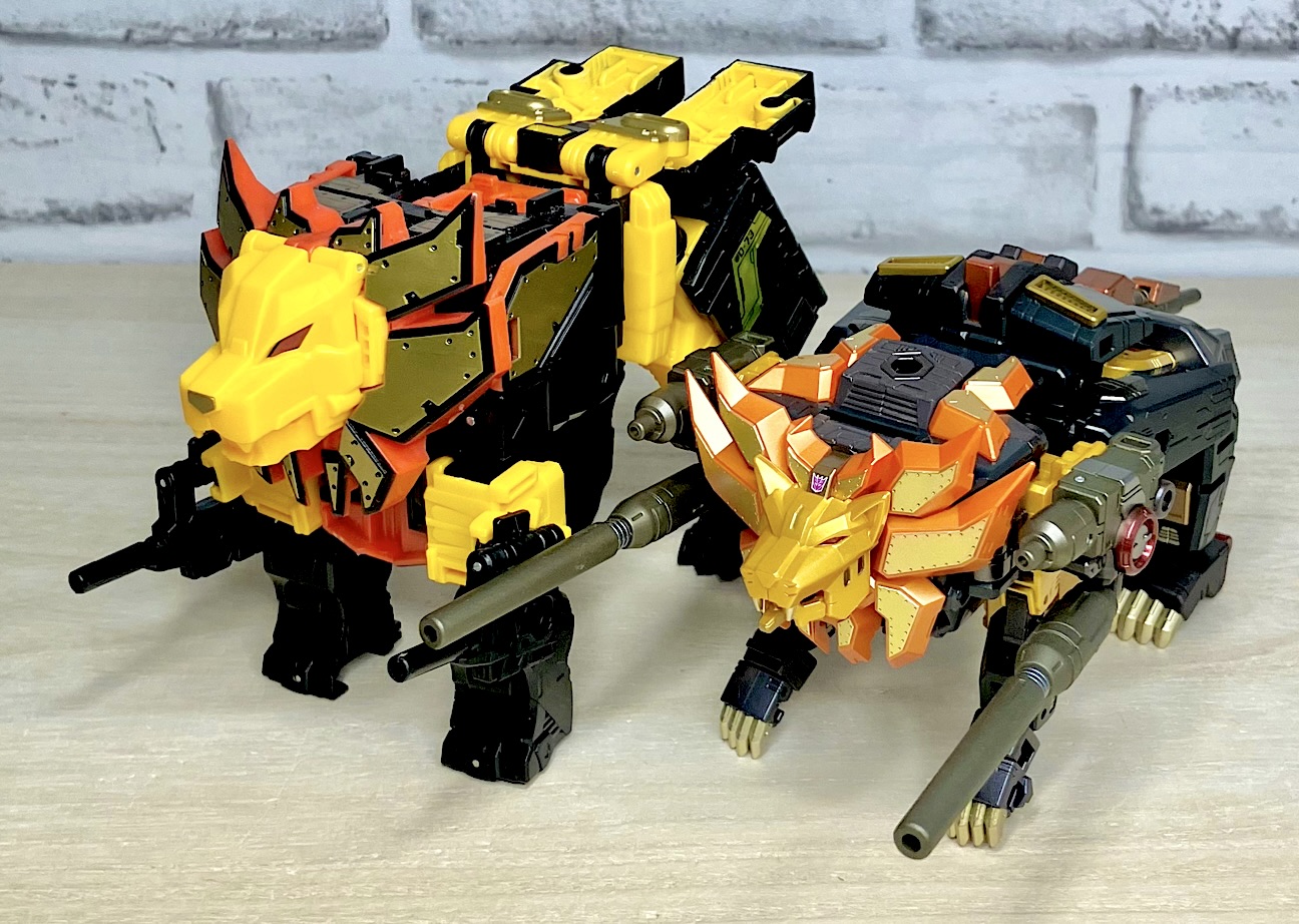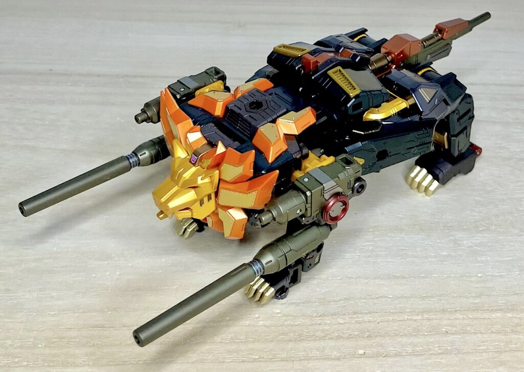 【アップ】胸ライオンというTF随一のヒロイックデザインで、なおかつ暖色系なのにディセプティコンというTFならではのひねくれ具合が面白いレーザークロー。頭部はとっても小顔で、エッジを効かせたアレンジは男子のロマンですね。